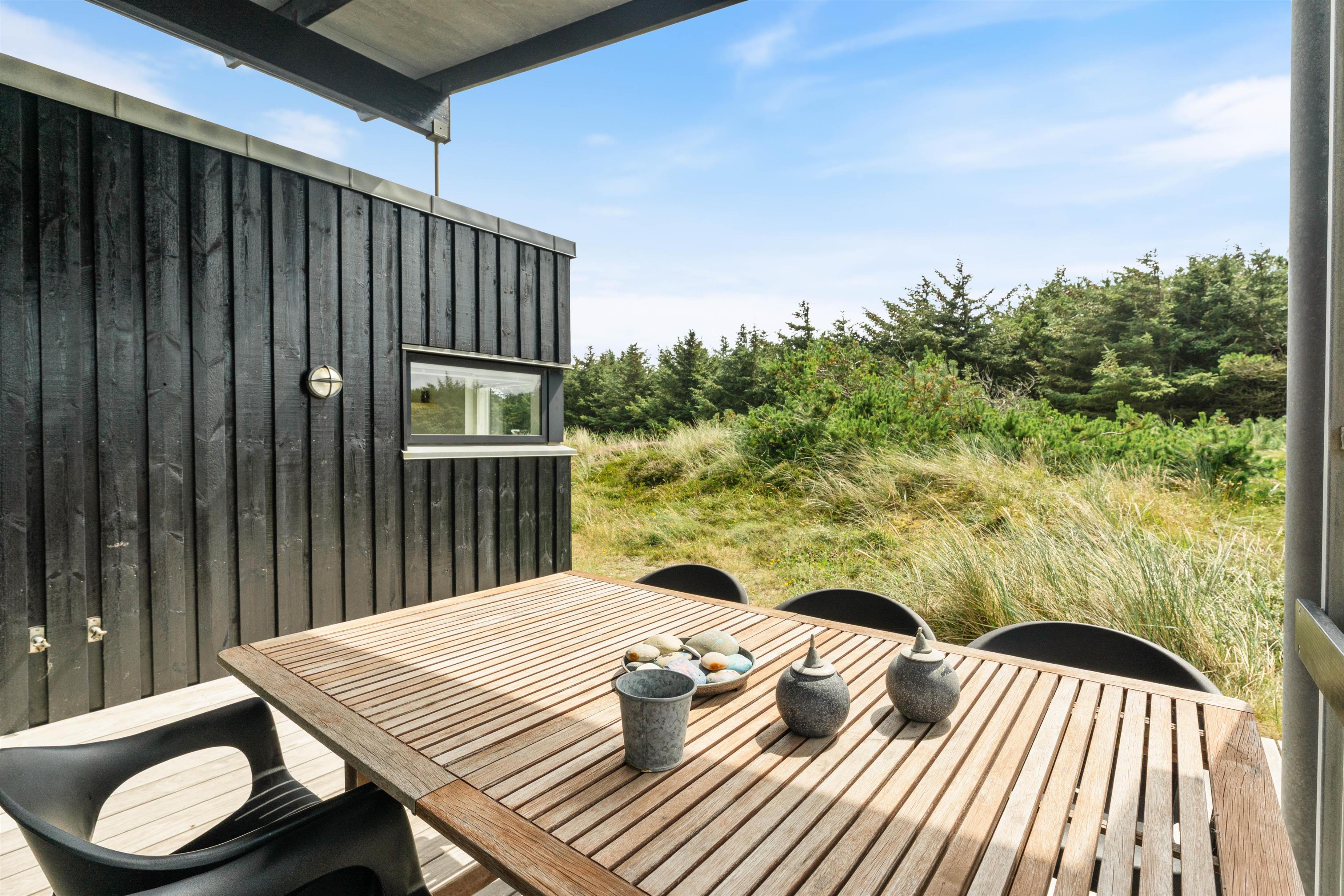 Uanset vejr og vind så kan I altid finde læ ved dette fantastiske sommerhus. Sommerhuset på Nordsøvej 452 har hele fire terrasser, hvoraf to er delvist afskærmet og overdækket. Hele forterrassen er lukket med stakit.