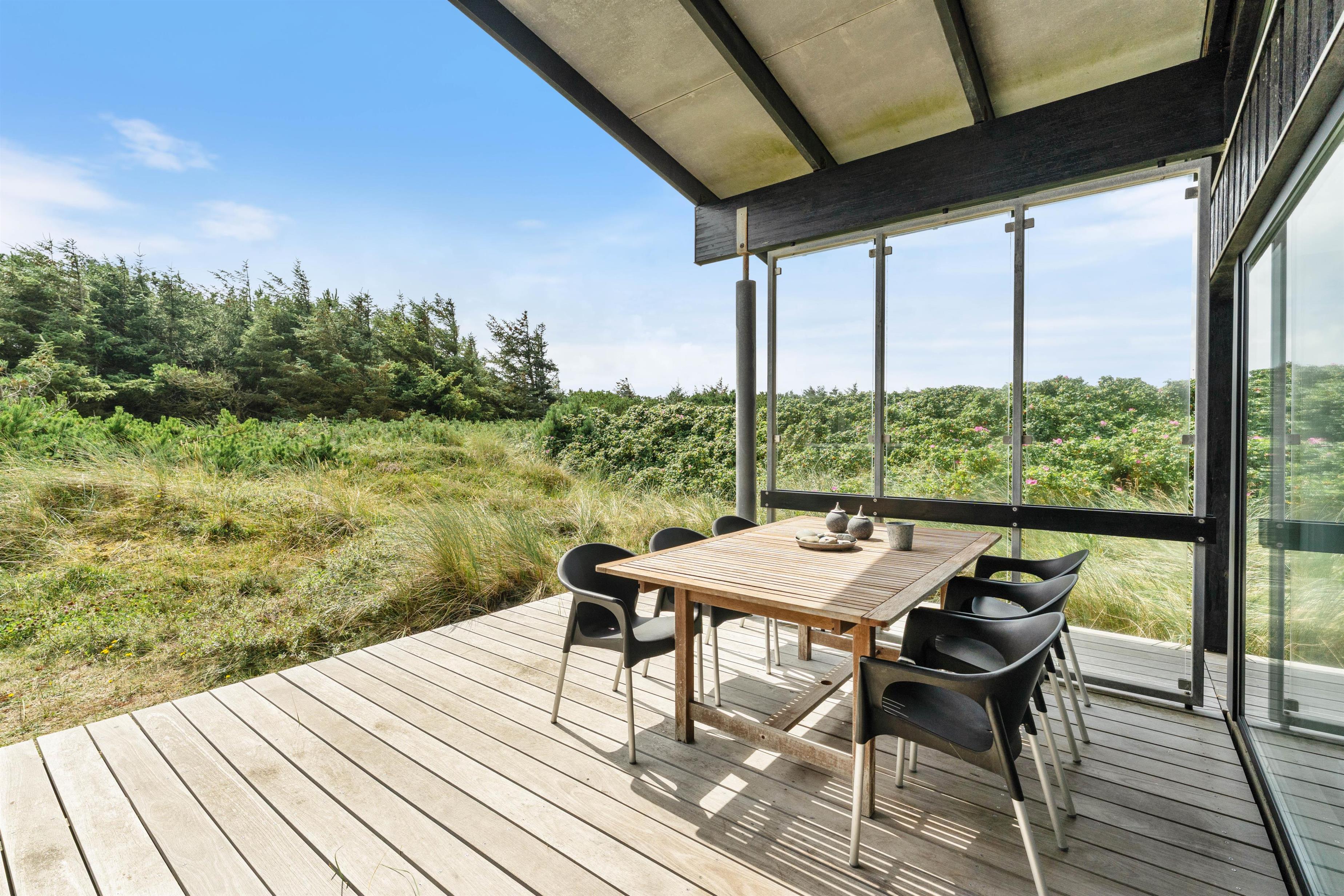 Unikt, arkitekttegnet sommerhus med skøn beliggenhed få minutters gang fra stranden og kun en kort spadseretur fra Søndervig centrum. Huset er yderst smagfuldt indrettet og omgivet af skønne terrasser. Her er al tænkelig komfort til den kræsne og kvalitetsbevidste lejer.