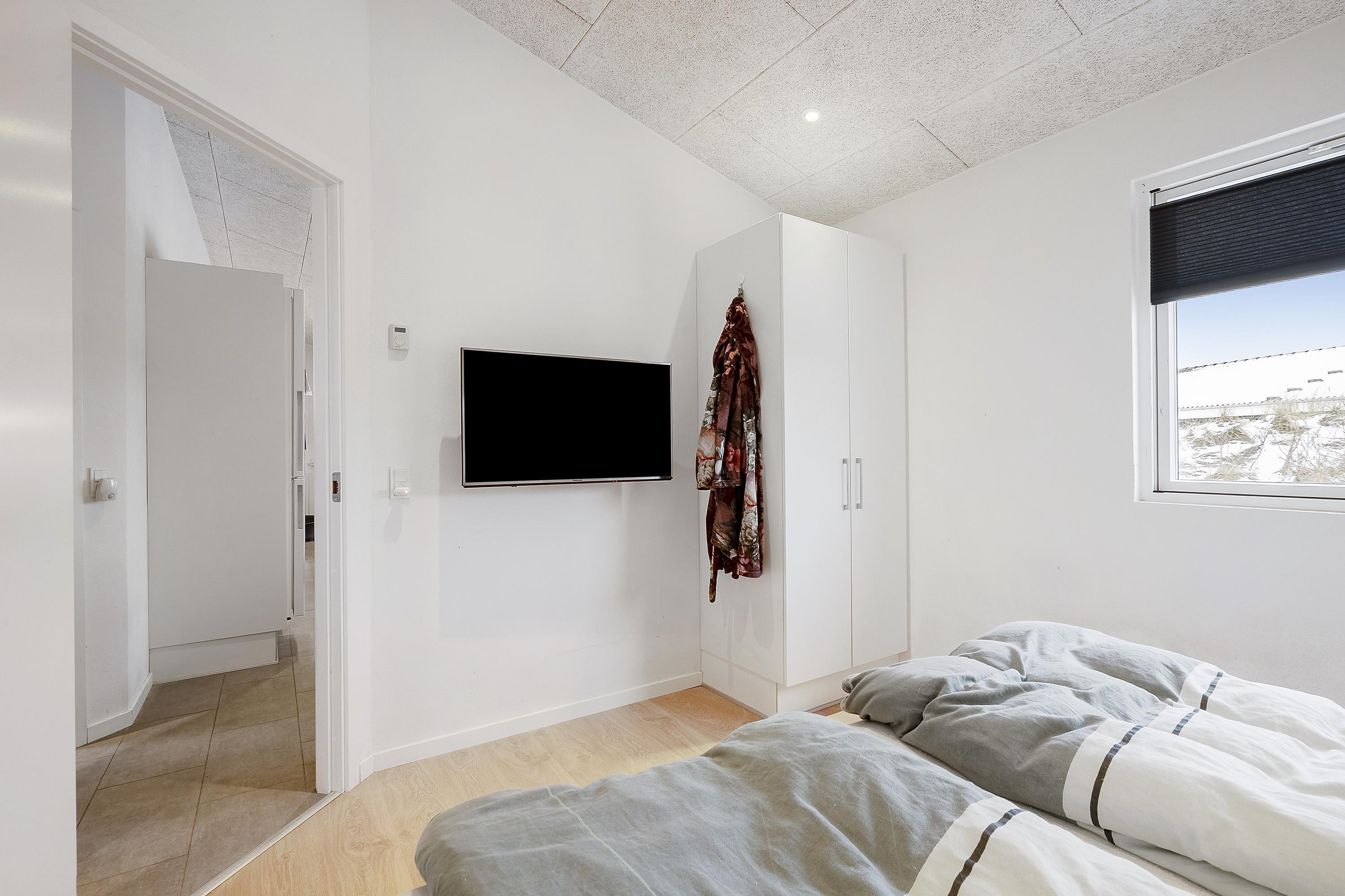 Sommerhuset er indrettet med 4 soveværelser og 8 enkeltsenge, så I nemt kan fordele jer, uanset om I rejser som 2 familier eller en større vennegruppe. Med 2 badeværelser undgår I kø om morgenen, og den gennemgående gulvvarme giver ekstra komfort på kølige dage. 1 af badeværelserne er udstyret med både sauna og tømmespa, så I kan slappe af og forkæle jer selv efter en dag fuld af aktiviteter. En luft-til-vand-varmepumpe sikrer et behageligt indeklima, og når aftenen falder på, kan I tænde op i brændeovnen og skabe den klassiske sommerhusstemning med varme og hygge.