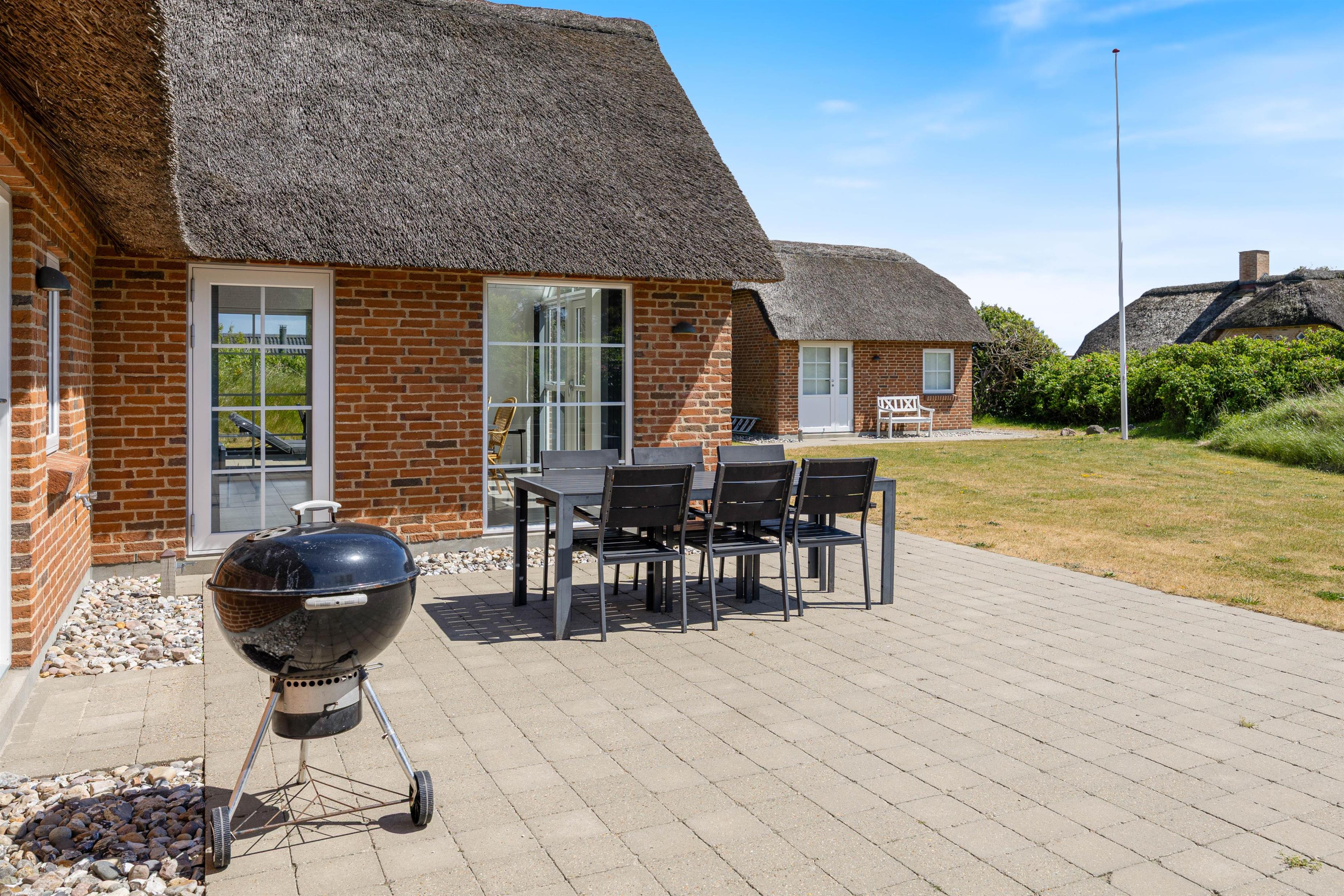 Der er flere gode terrasser rundt om huset, hvor feriedagene og den friske havluft kan nydes i fulde drag. På de lune sommeraftener kan I tænde op i grillen og nyde en lækker middag under åben himmel med en god bøf og et glas rødvin.