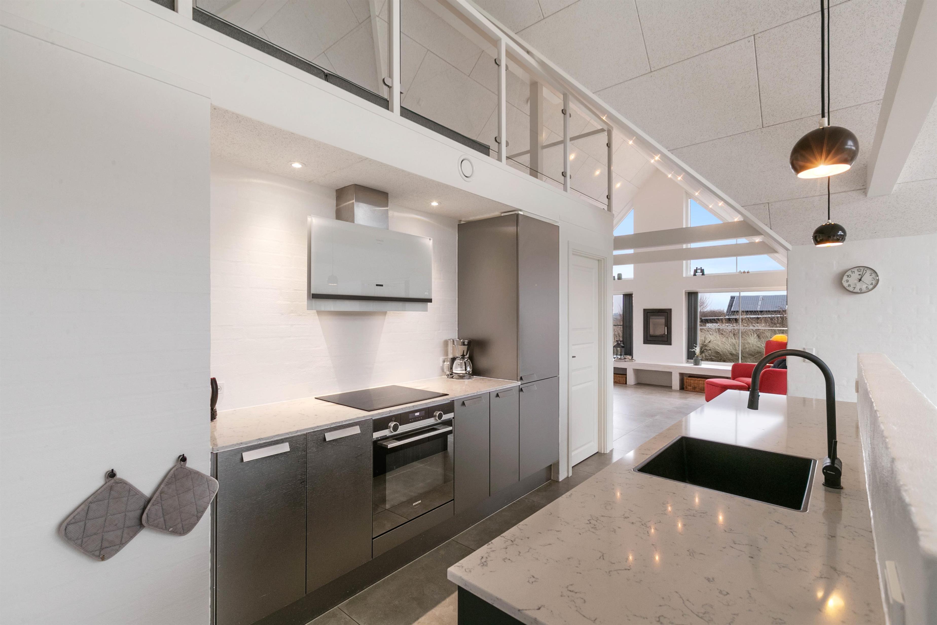 Husets hjerte bliver dannet af det åbne køkken- og stuerum, som har flere hyggelige kroge og bliver centrum for samvær i løbet af ferien. Der er chromecast på alle tv - på den måde har I mulighed for at alle kan se deres yndlingsfilm. Store vinduespartier inviterer solens stråler og det smukke klitlandskab indenfor, og loftet ført til kip skaber endnu mere rummelighed og en behagelig ferieatmosfære. For et ekstra godt indeklima sørger husets ventilationsanlæg, der giver samme fugtighed i hele huset, hvilket især asmatikere vil nyde godt af.