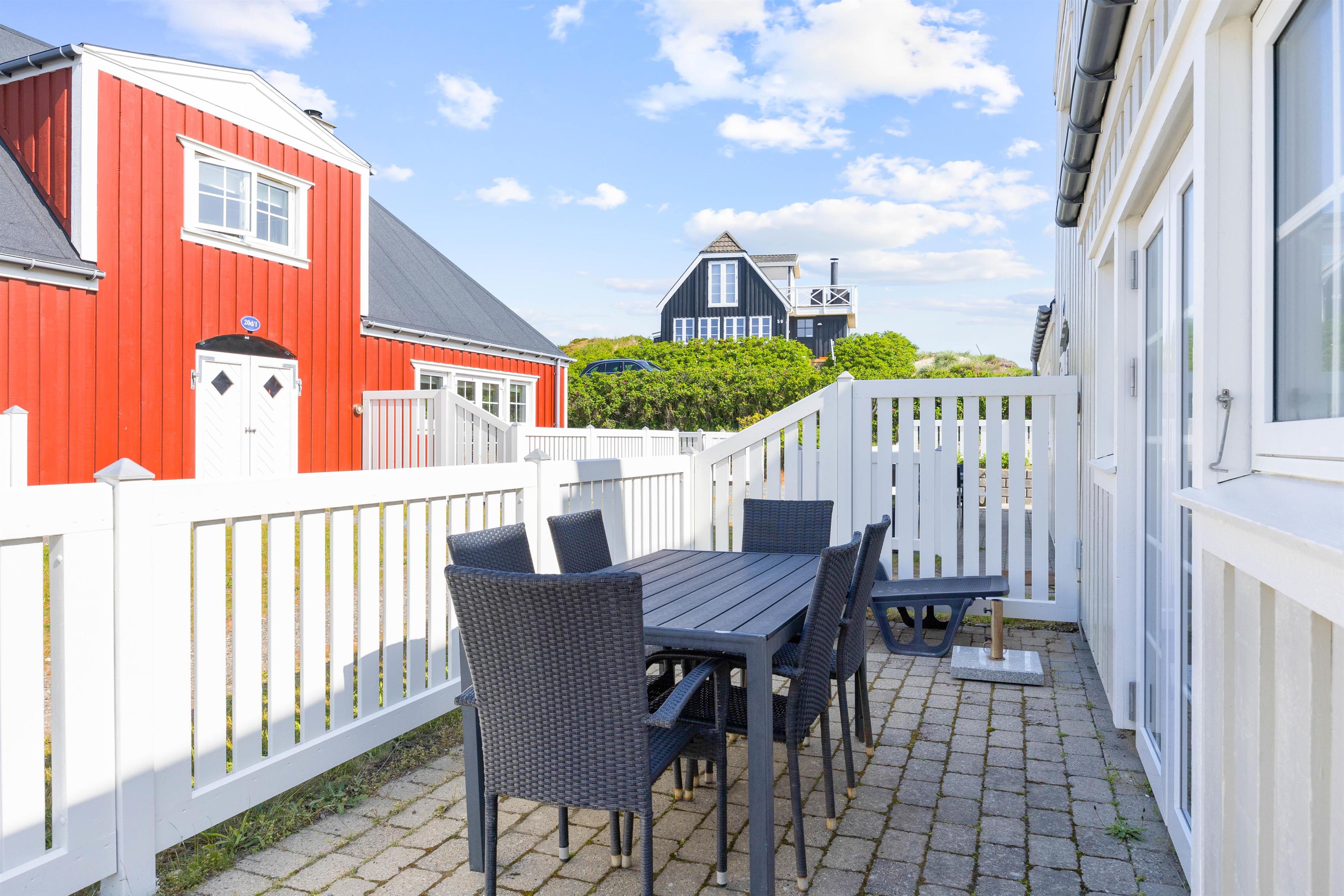 Ferielejligheden råder over et fint terrasseområde, hvor I roligt kan læne jer tilbage i ferielejlighedens havemøbler. Her har I god mulighed for at nyde solens skønne stråler på de varmere sommerdage, samtidig med at I sammen kan tilberede et lækkert aftensmåltid på den dertilhørende grill.