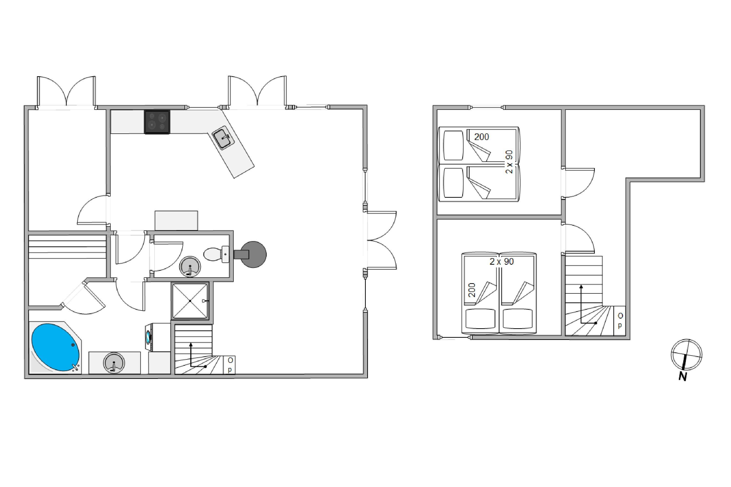 Efter en lang gåtur ved Vesterhavet har I derudover mulighed for igen at få varmen og nyde boblerne fra ferielejlighedens spabad efterfulgt af en tur i den varme sauna. På 1. sal finder I lejlighedens 2 soverum, der hver især er udstyret med 2 dobbeltsenge.