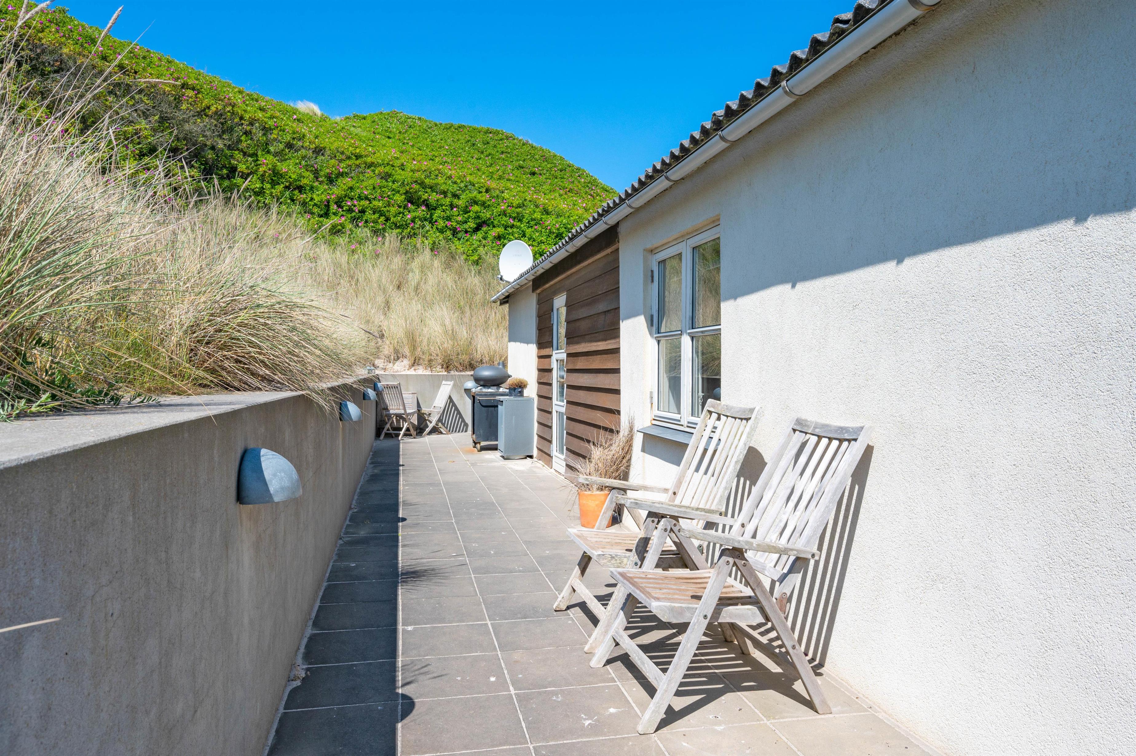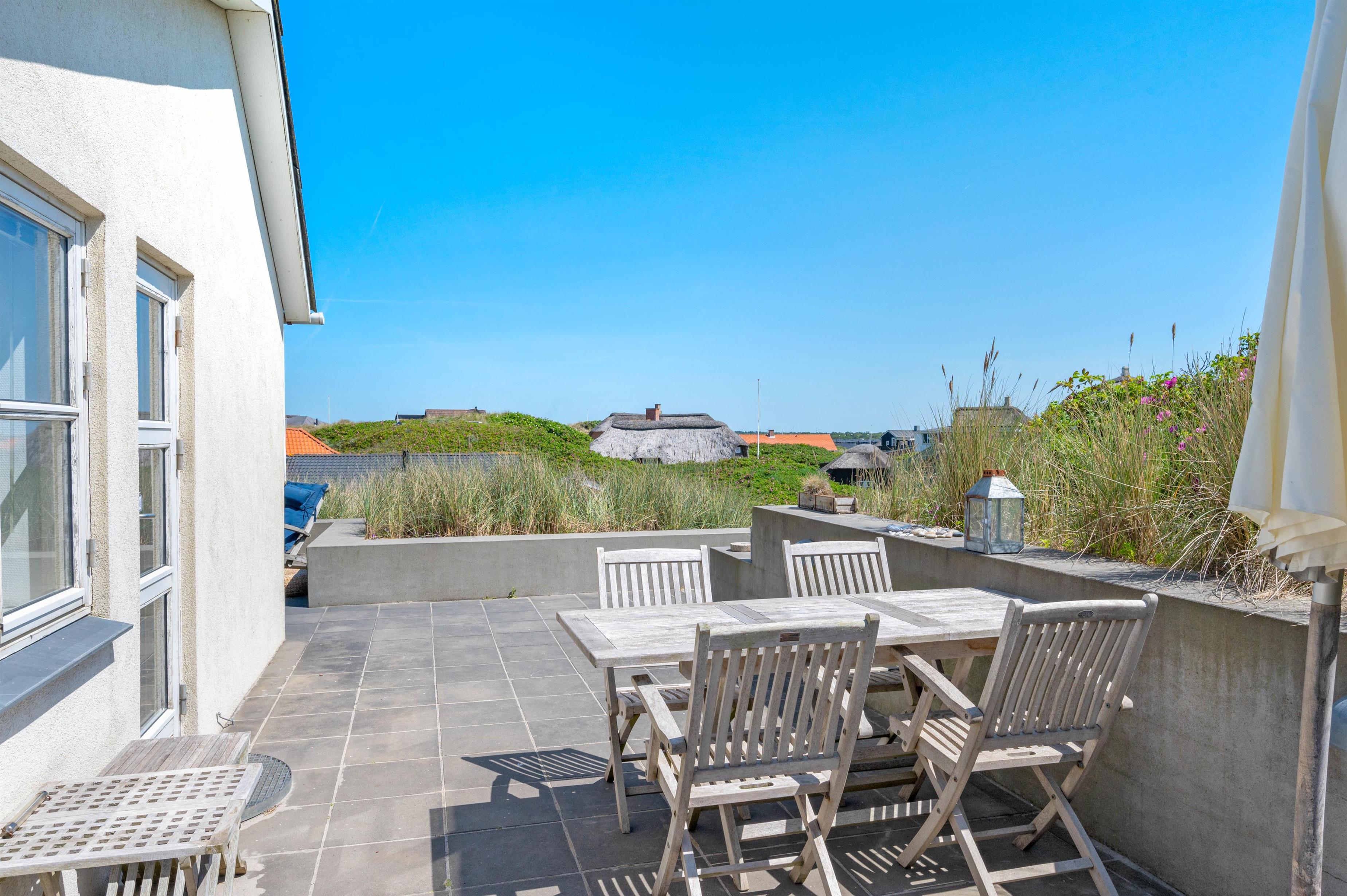 Feriehuset på Hafavej 29 i Søndervig ligger på en klitgrund på ca. 1178 m2, hvor I er omgivet af marehalm. Terrassen løber rundt om hele feriehuset, så I har mulighed for at finde et læfyldt hjørne i alt slags vejr. Terrassen er udstyret med havemøbler, så I kan gøre det behageligt i solen og nyde vejret. Efter en lang gåtur på stranden kan I bruge den udendørs bruser til at skylle sandet af fødderne, så I ikke har det i feriehuset. Den udendørs bruser er tiltængelig i måneder fra april til november. Om aftenen kan I runde en begivenhedsrig dag af med et lækkert grillmåltid.