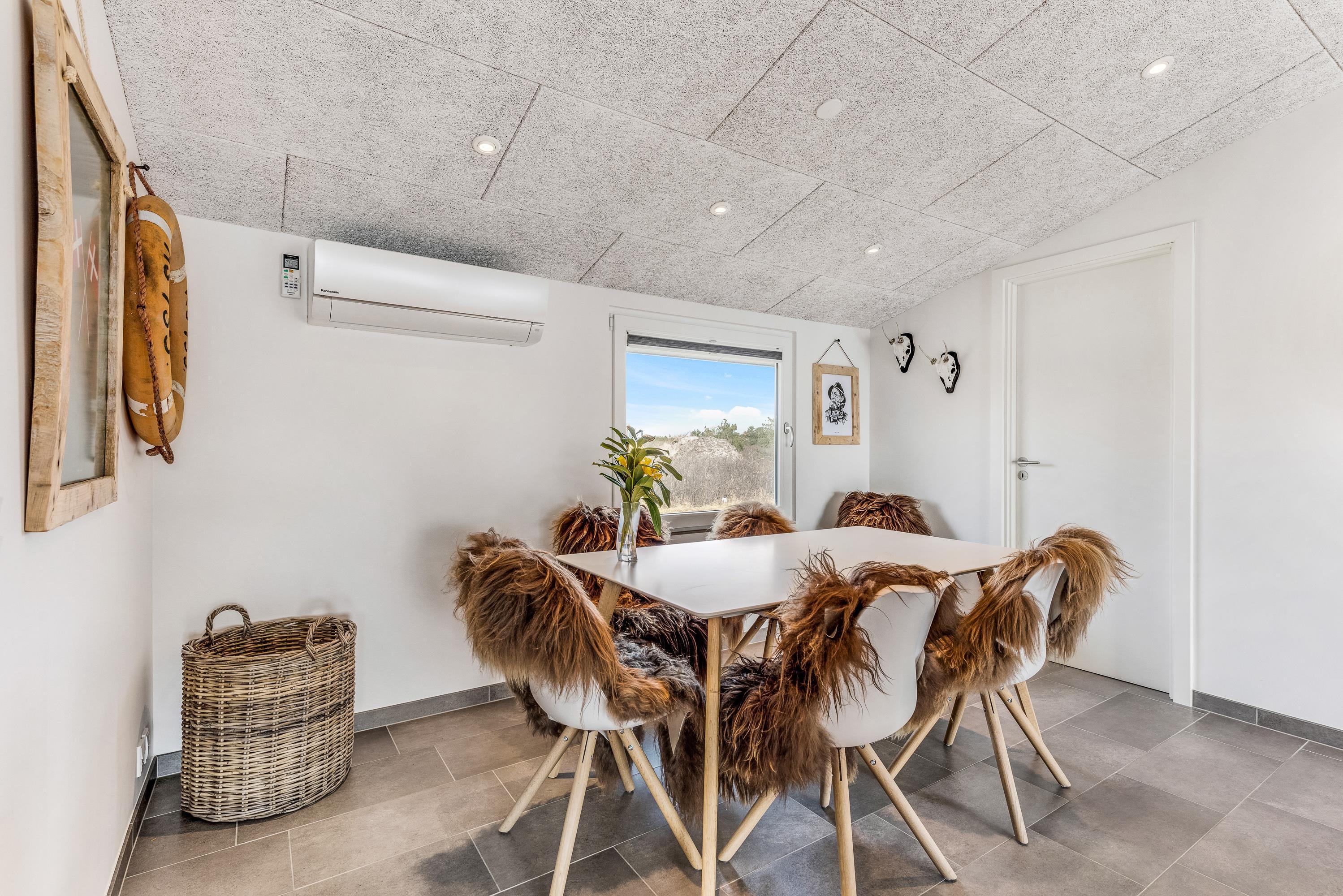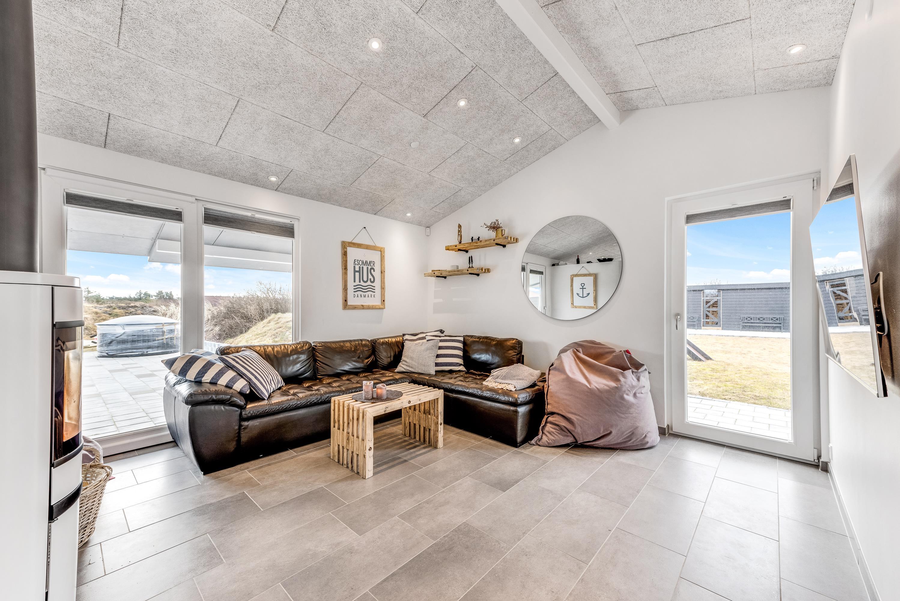 I er altid sikret en god temperatur med feriehusets varmepumpe – og når det skal være ekstra hyggeligt, kan I tænde op i brændeovnen i stuen. Den knitrende ild er altid en garanti for god feriestemning.