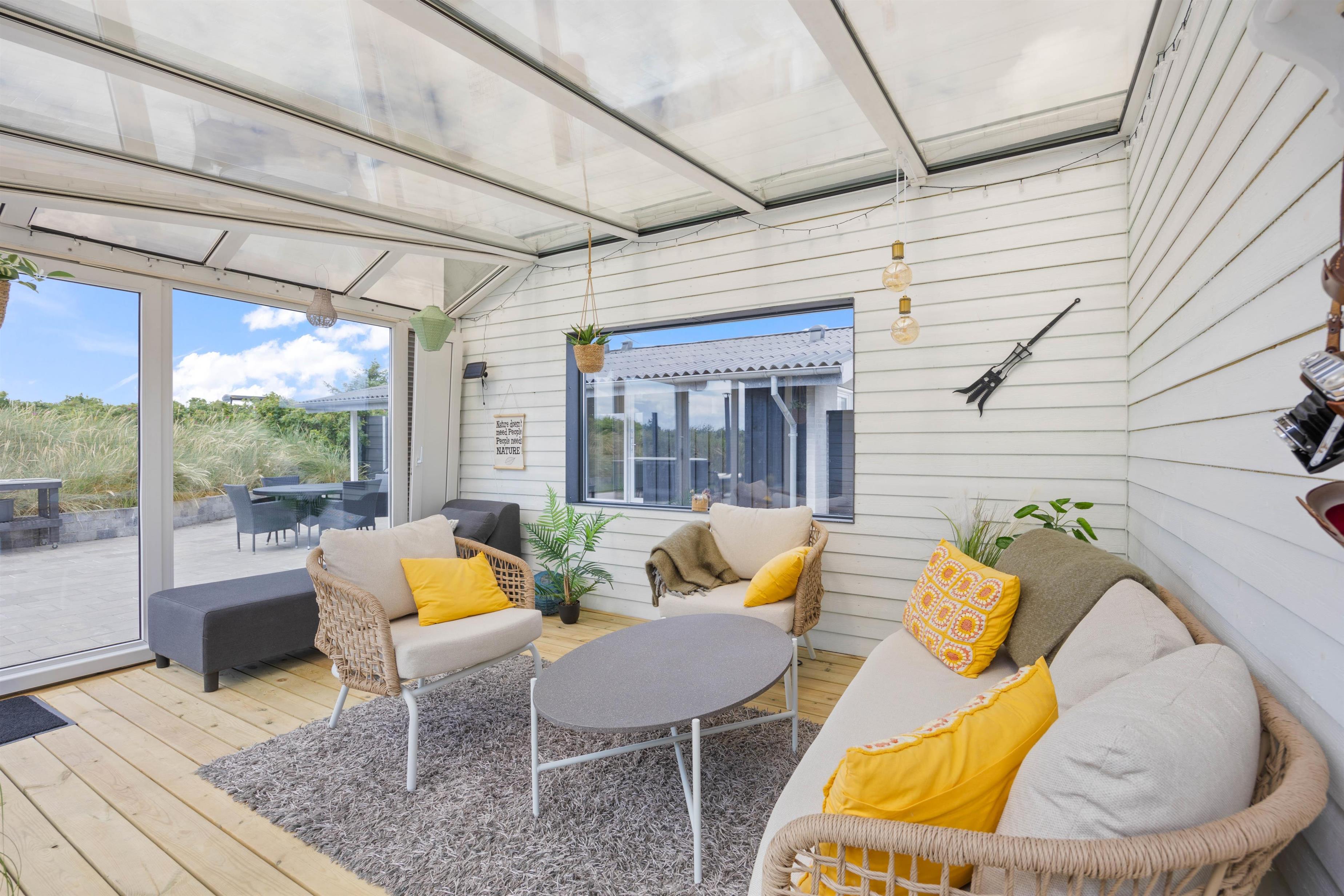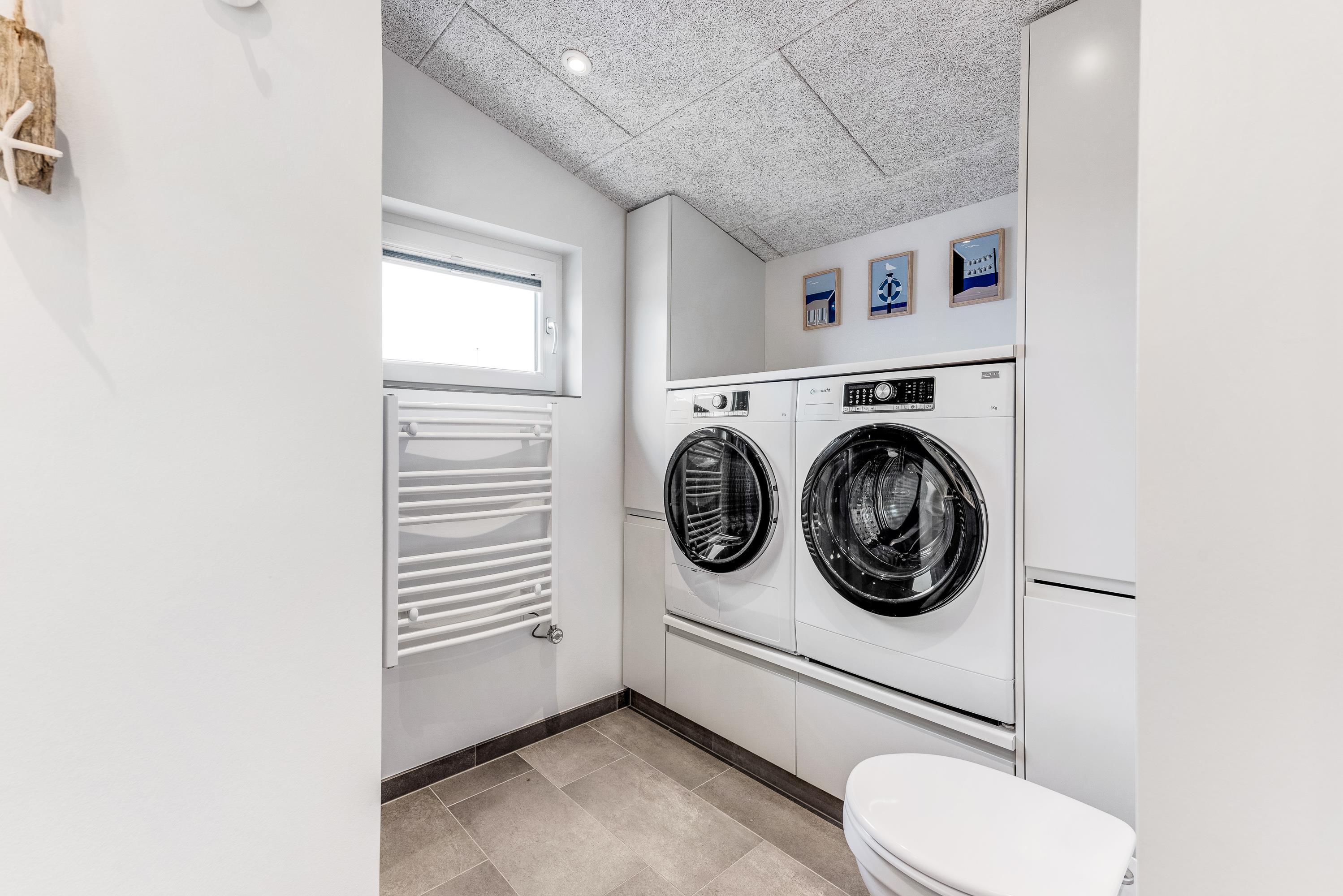 Indretningen er ikke kun indbydende, den inkluderer også alle praktiske nødvendigheder, der er med til at give jer endnu mere tid til at slappe af på ferien. Således er køkkenet udstyret med opvaskemaskine, mens badeværelset har både vaskemaskine og tørretumbler.