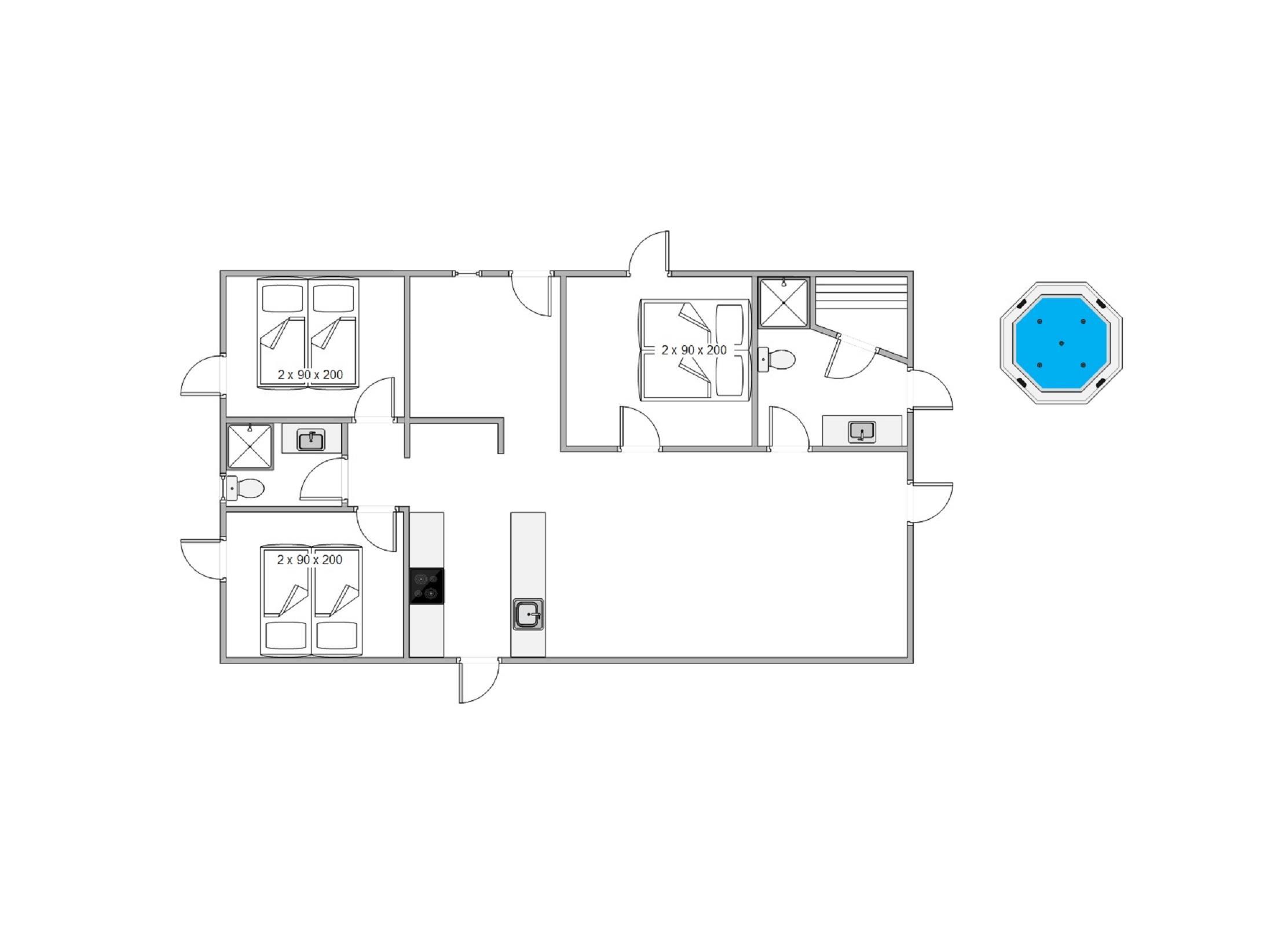 Feriehuset er rigtig rummeligt med 125 kvadratmeter at brede sig ud på. Det er indrettet med 2 badeværelser, og på det største har I adgang til jeres egen sauna, hvor I kan forkæle jer selv lidt ekstra på ferien. Der er sørget for alle moderne bekvemmeligheder, og huset er udstyret med både opvaskemaskine, vaskemaskine, tørretumbler og en hurtig og stabil internetforbindelse. Alt hvad I skal bruge til en komfortabel og dejlig ferie på den jyske vestkyst.