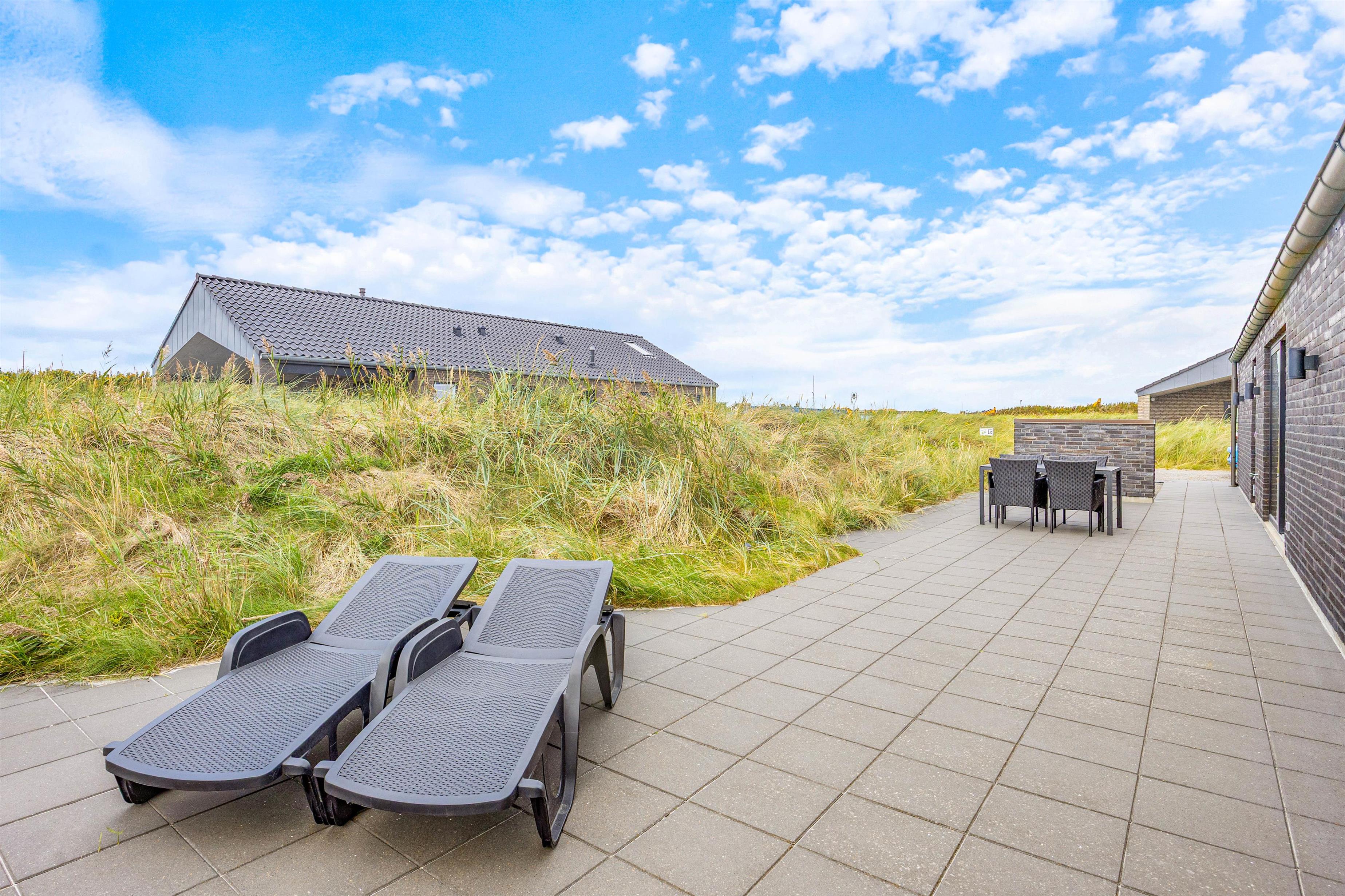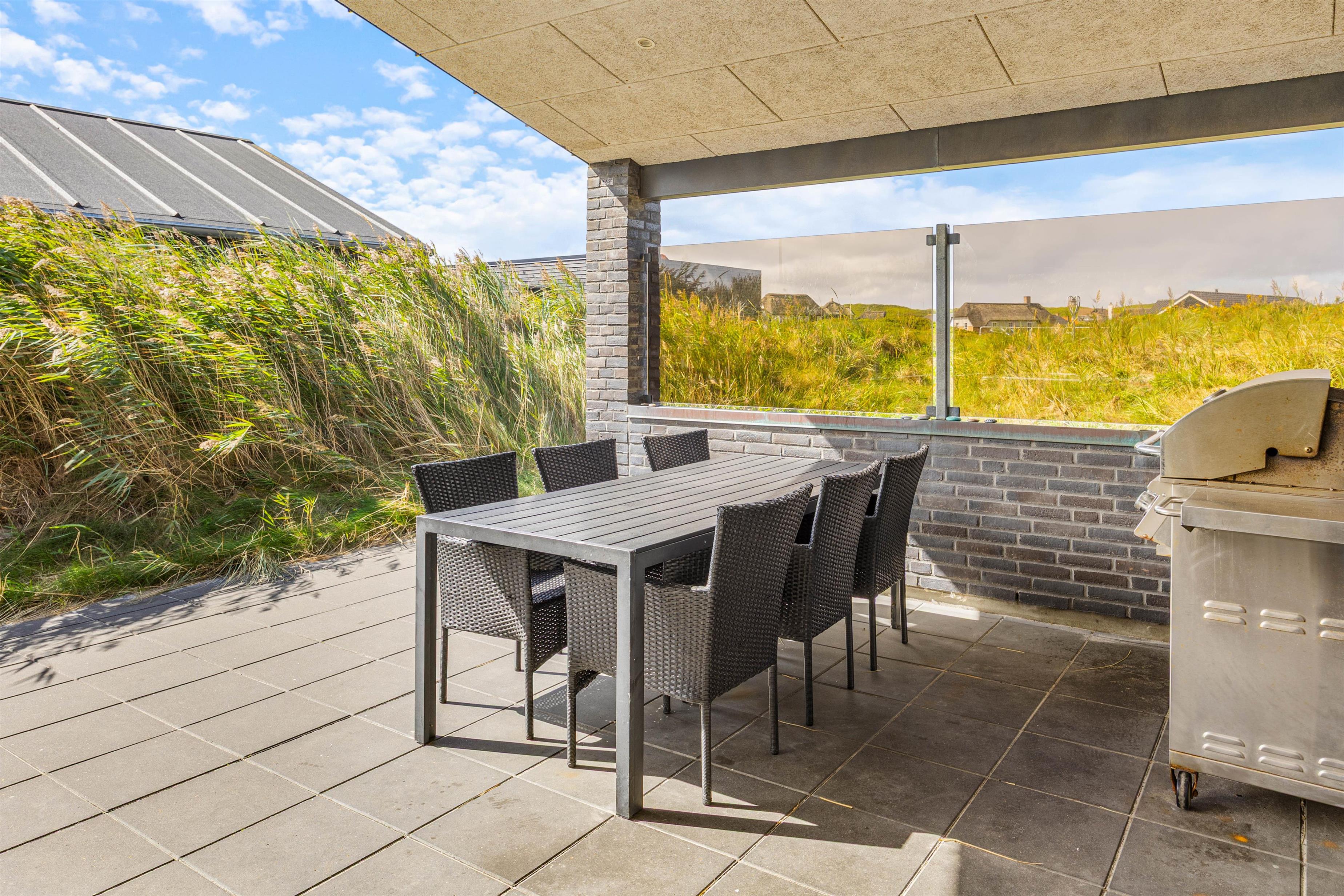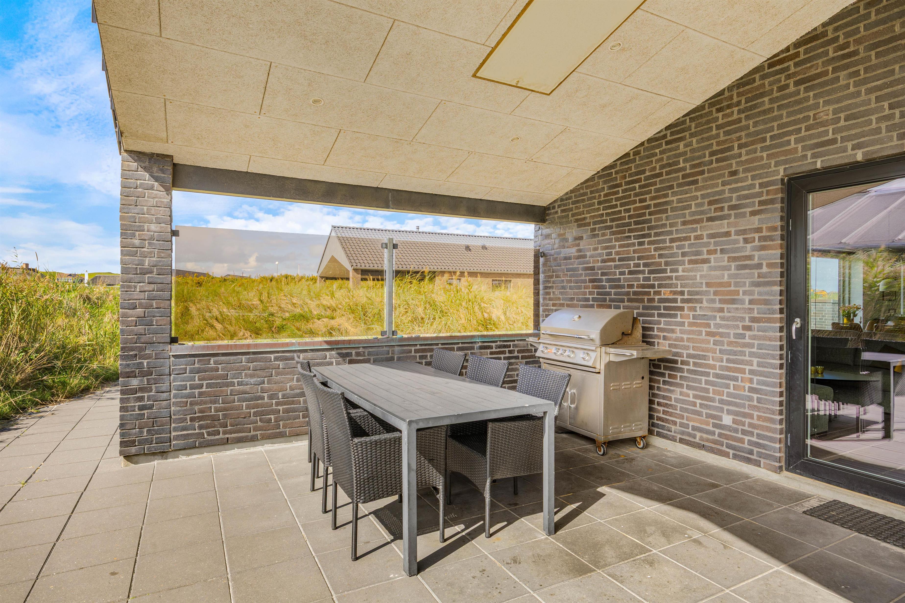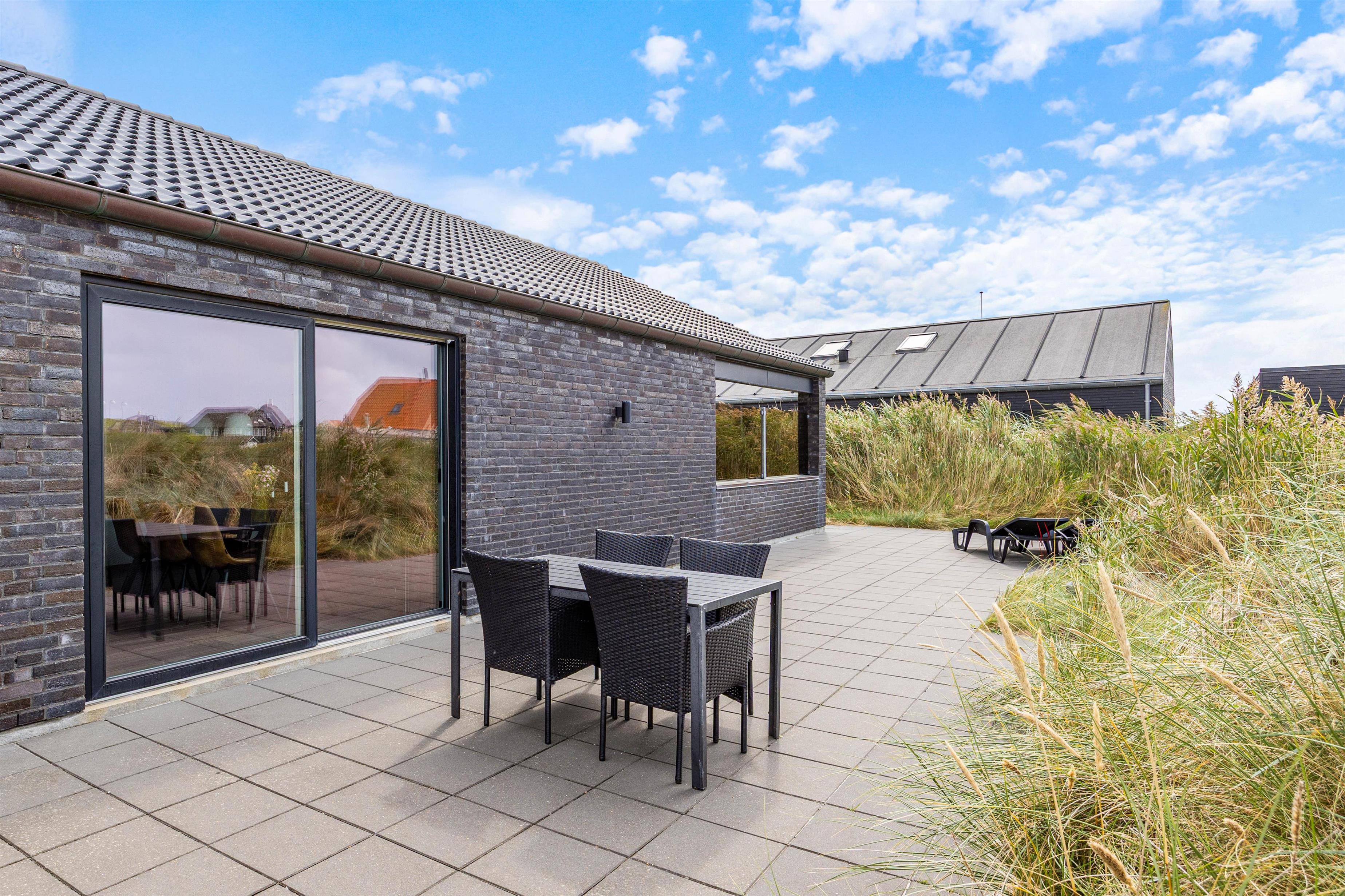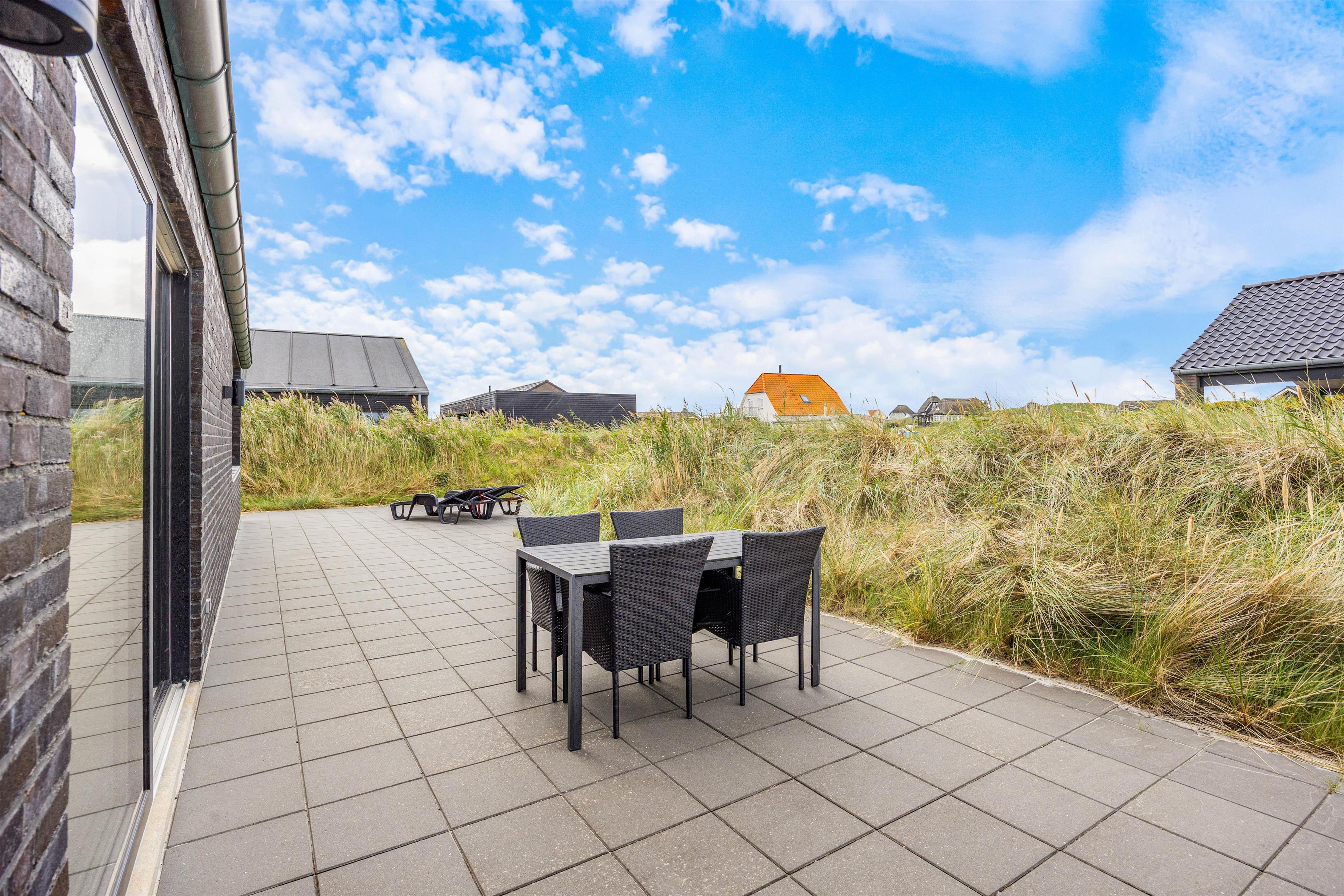 Rundt om huset går en lækker terrasse, hvor alle gæster nemt finder en plads i solen. Der er både en overdækket og åben del, så I kan søge ind i skyggen, hvis det bliver for varmt, eller nyde den friske havluft selv på regnfulde dage.