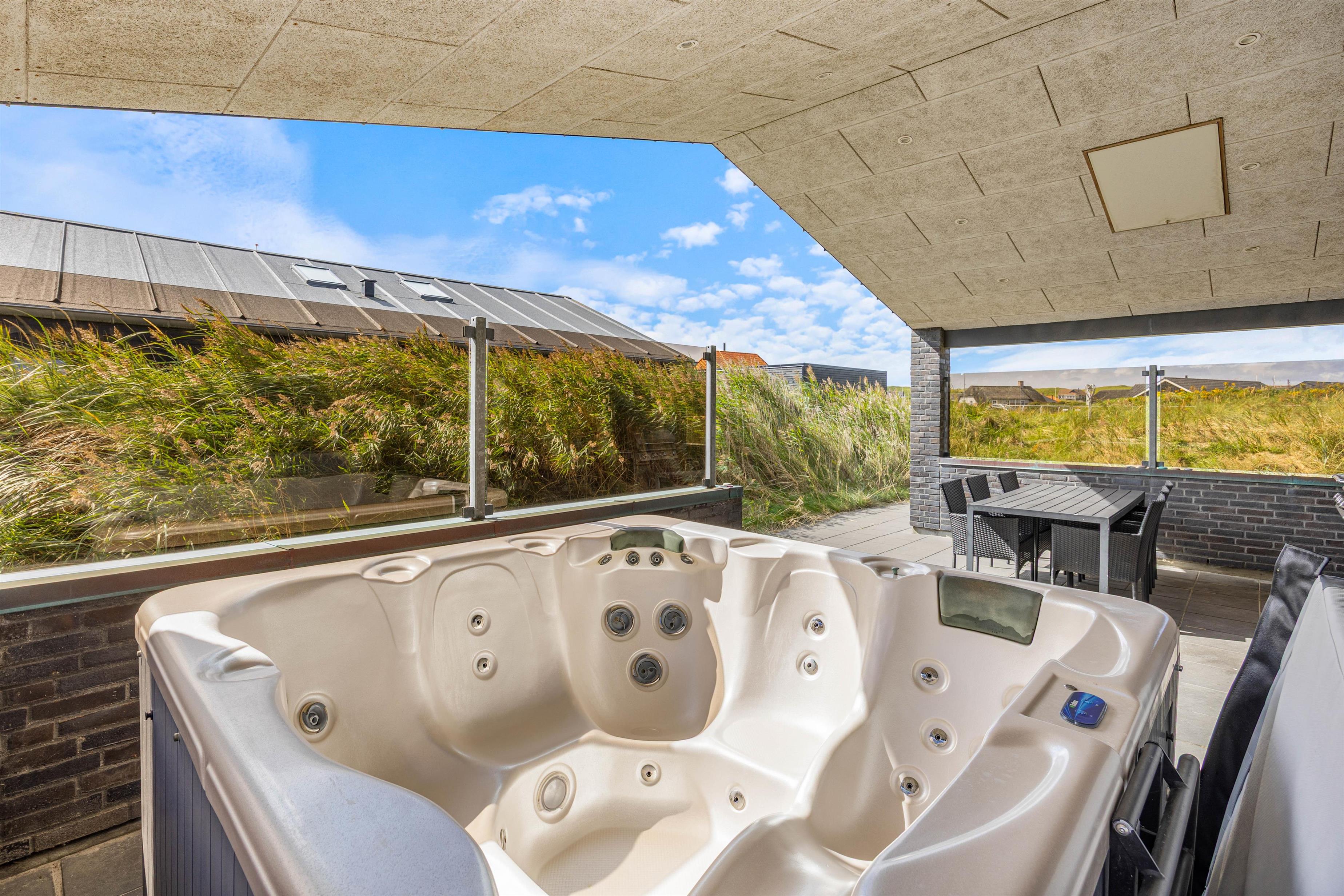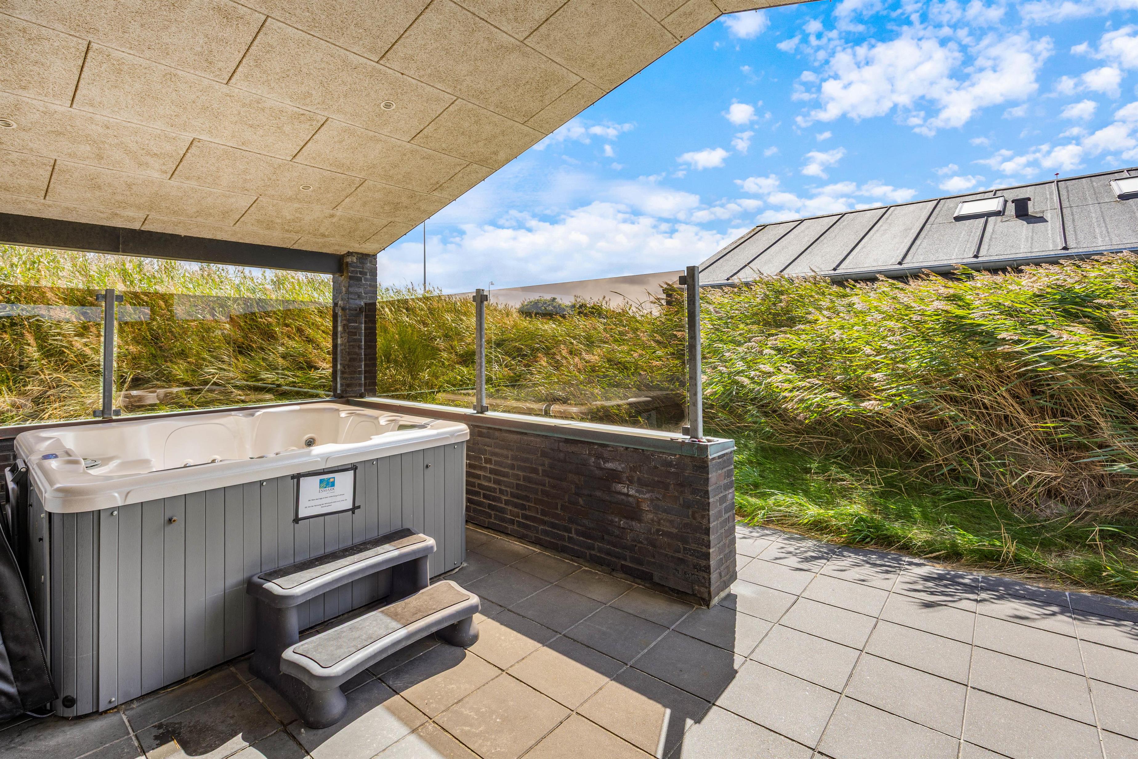 Den moderne og lækre stil som er indenfor fortsætter også udenfor. Her står et lækkert udendørs spabad, som kan benyttes hele året rundt. Så husk badetøjet, ligegyldigt om I holder ferie i det varme sommervejr eller det frostklare vintervejr. Det er bare ægte velvære og afslapning af nyde de fantastisk bobler og det varme vand.