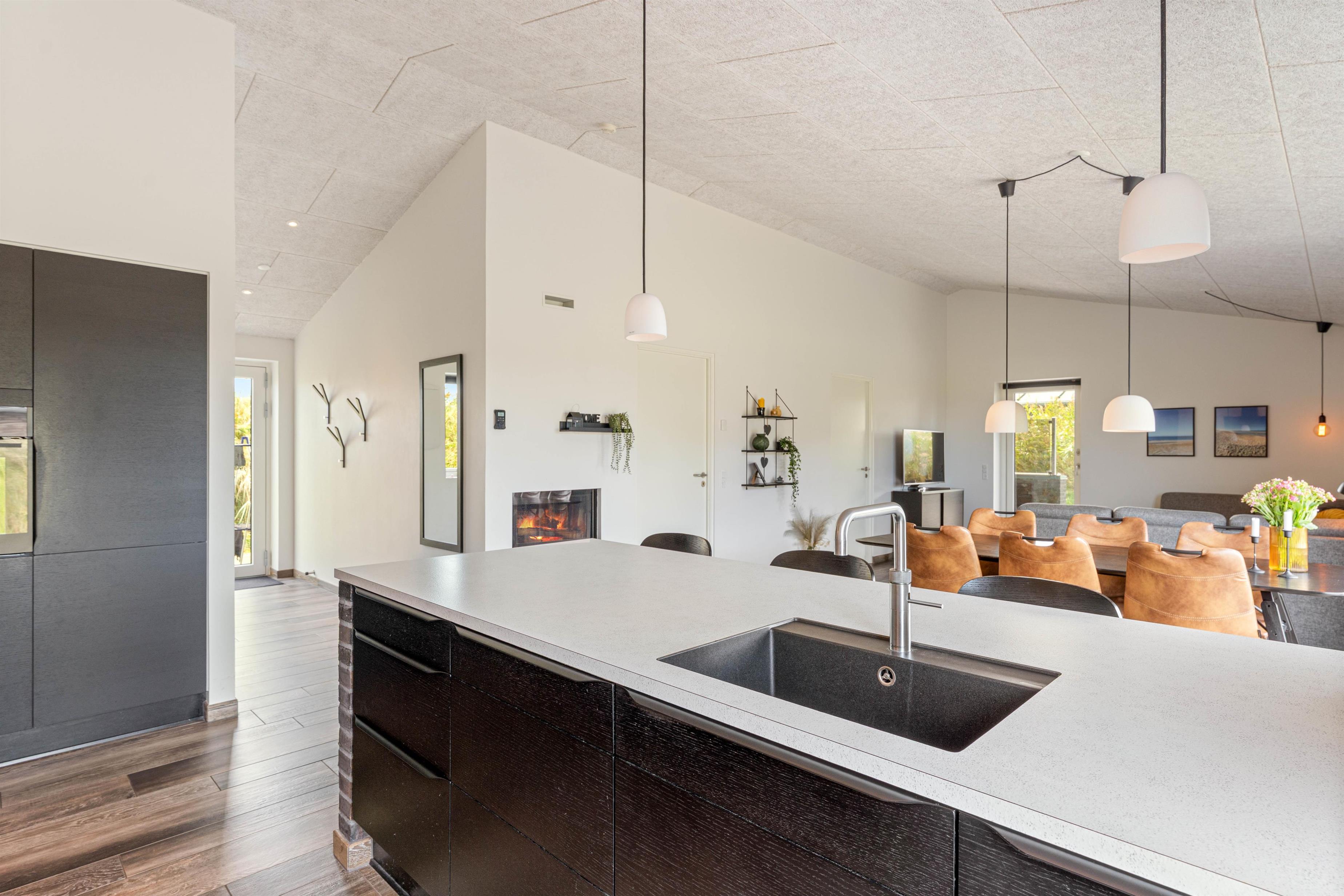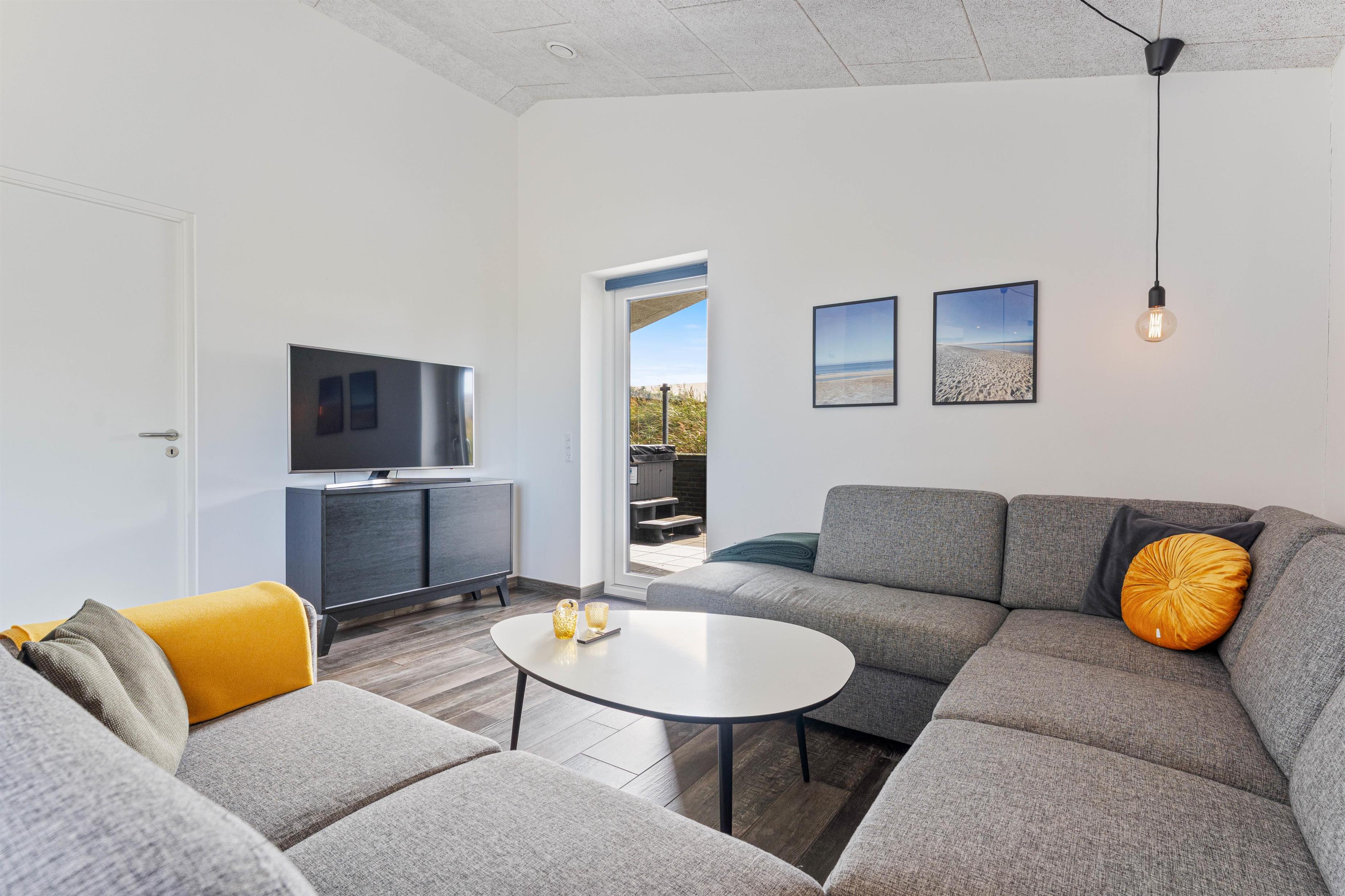 Centralt i Søndervigs populære ferieområde står denne feriedrøm og venter på jer. Det luksuriøse feriehus er opført i 2018, og indretningen er både stilfuld og kvalitetsbevidst. Huset byder på masser af wellness med både sauna og udendørs spabad.