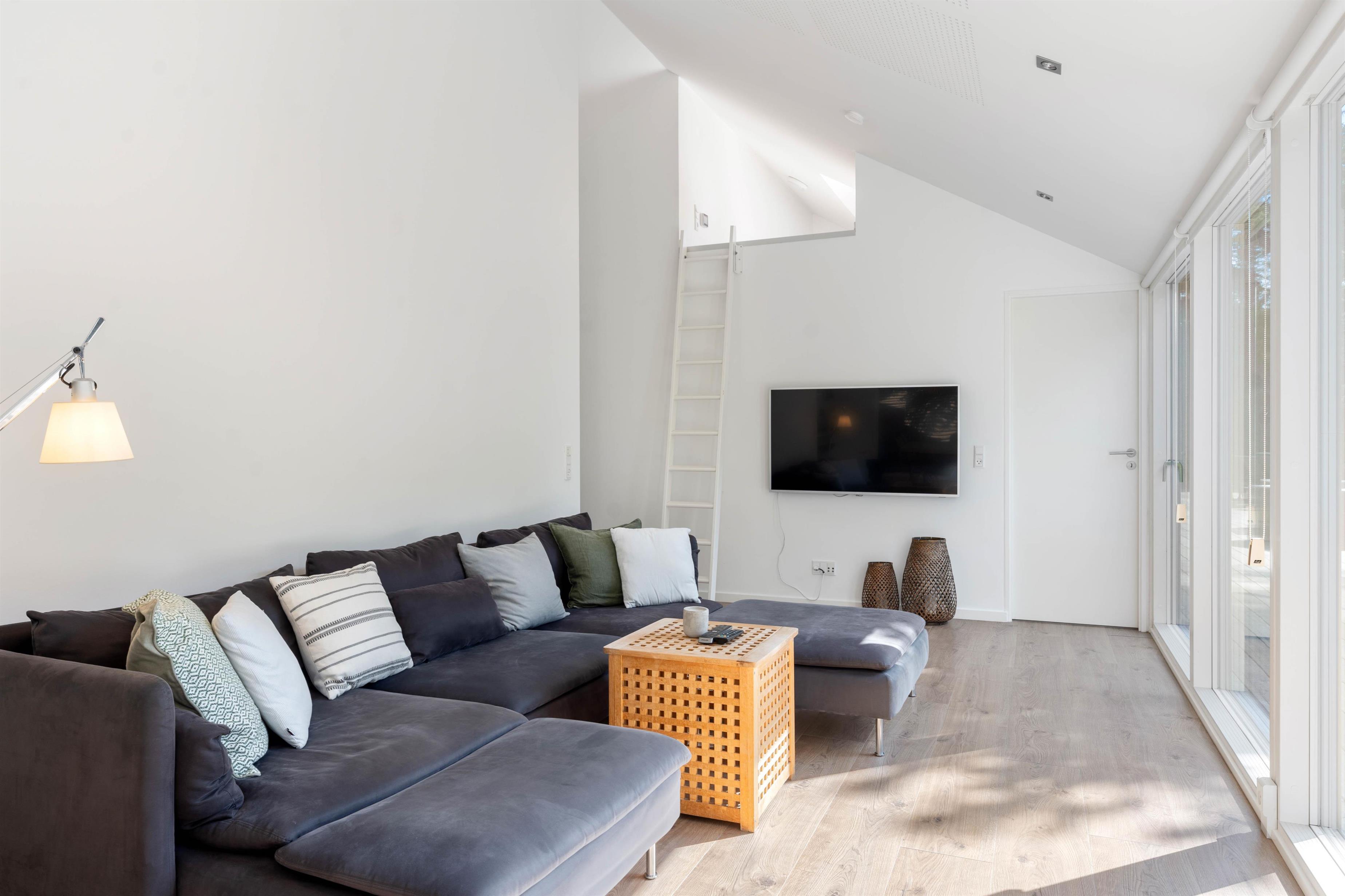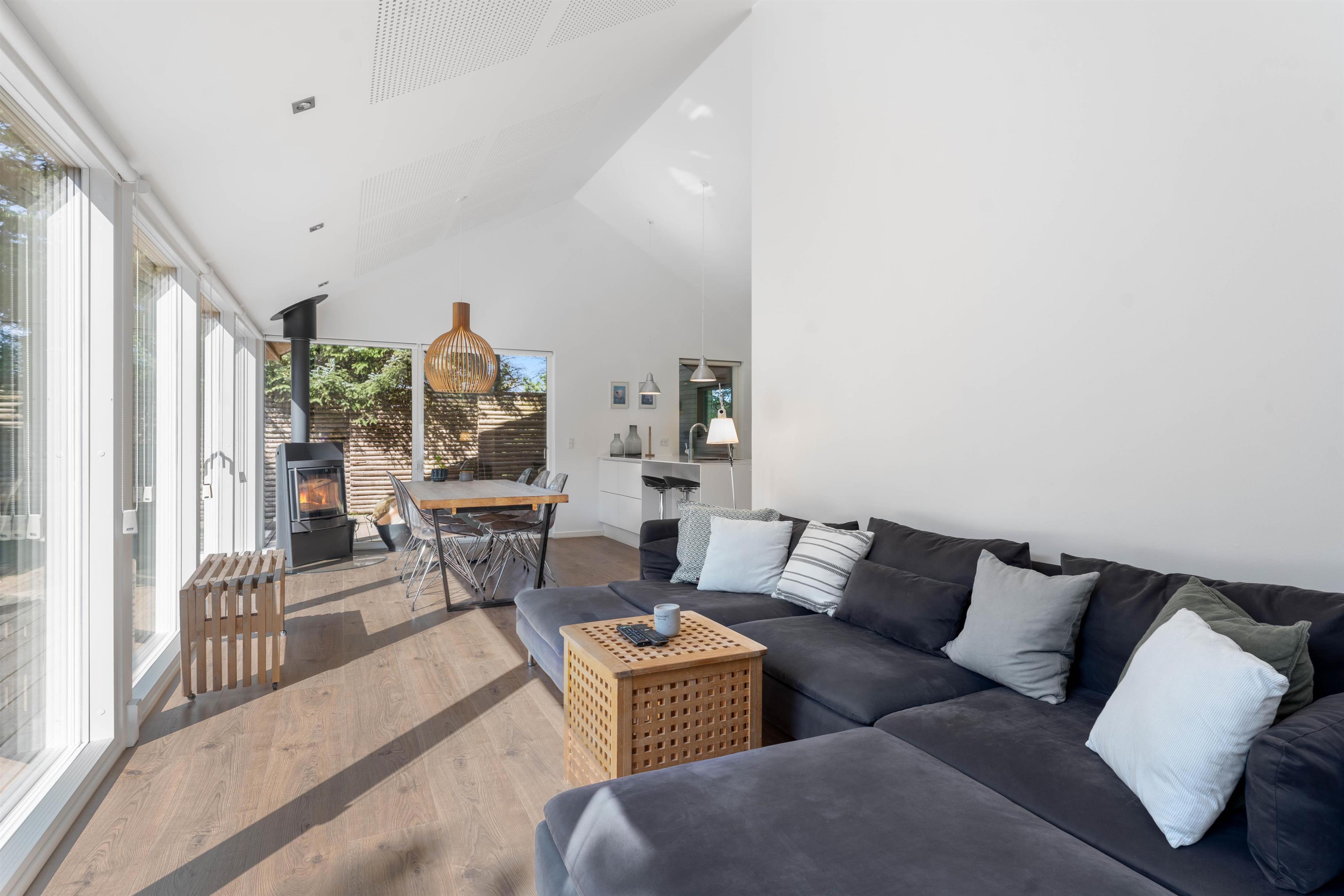 Hele familien kan hygge sig sammen i den vestlige del af huset, hvor I kan lave mad, spise og hygge jer foran brændeovnen. Er brændeovnen ikke i gang, bliver feriehuset varmet op af den meget energibesparende luft-til-vand varmepumpe, som sørger for at i har en behagelig varme hele året rundt.