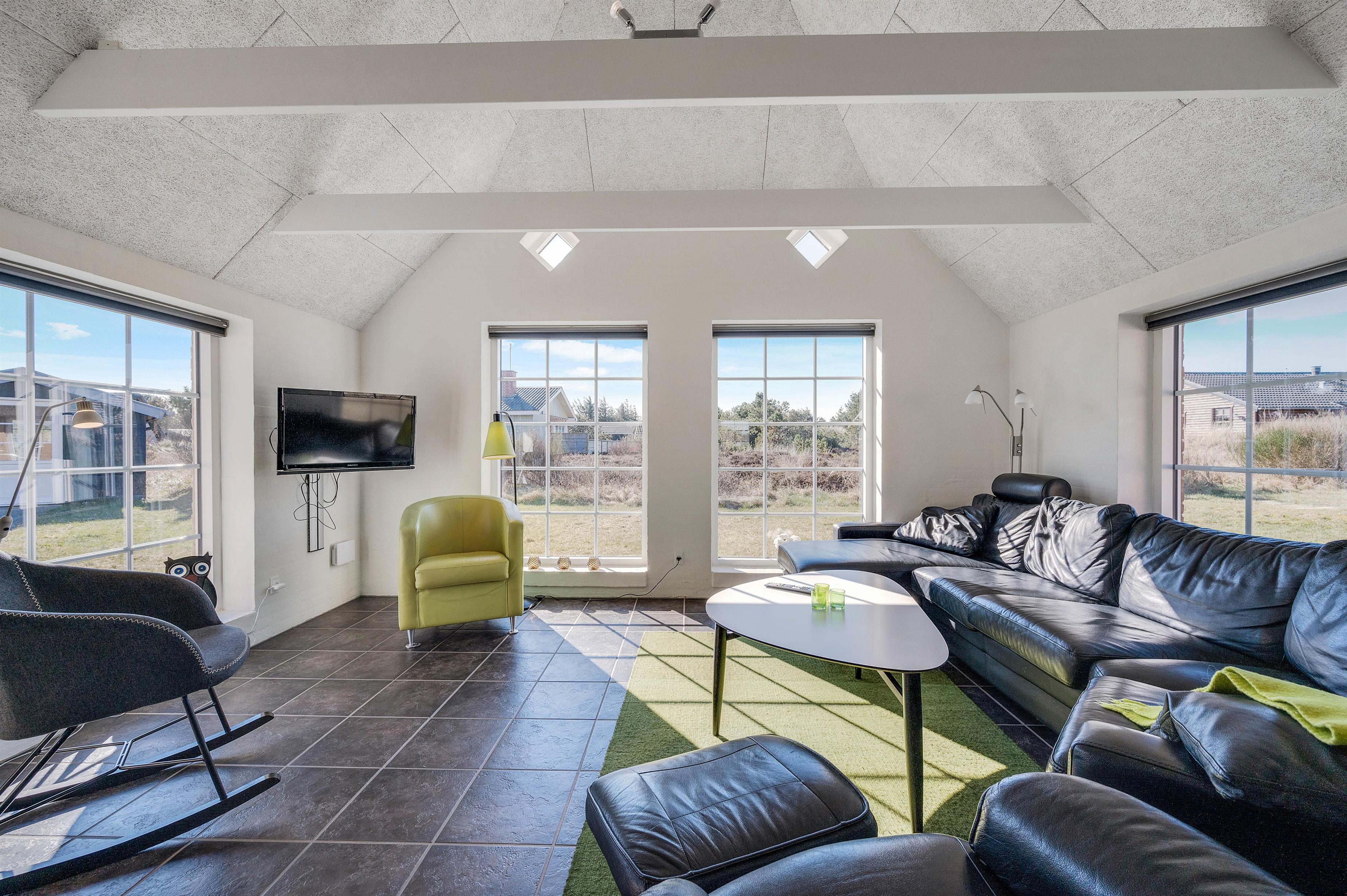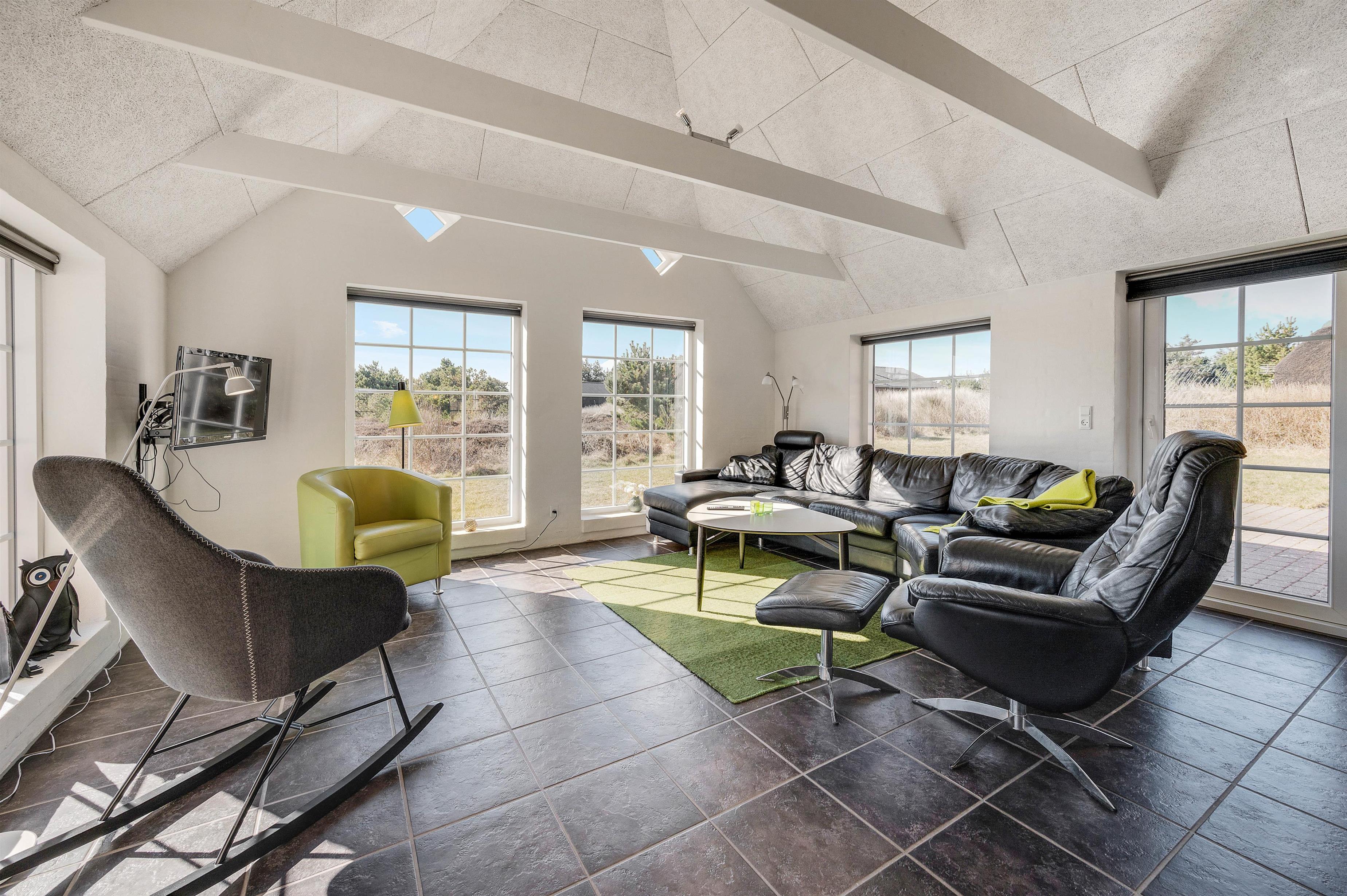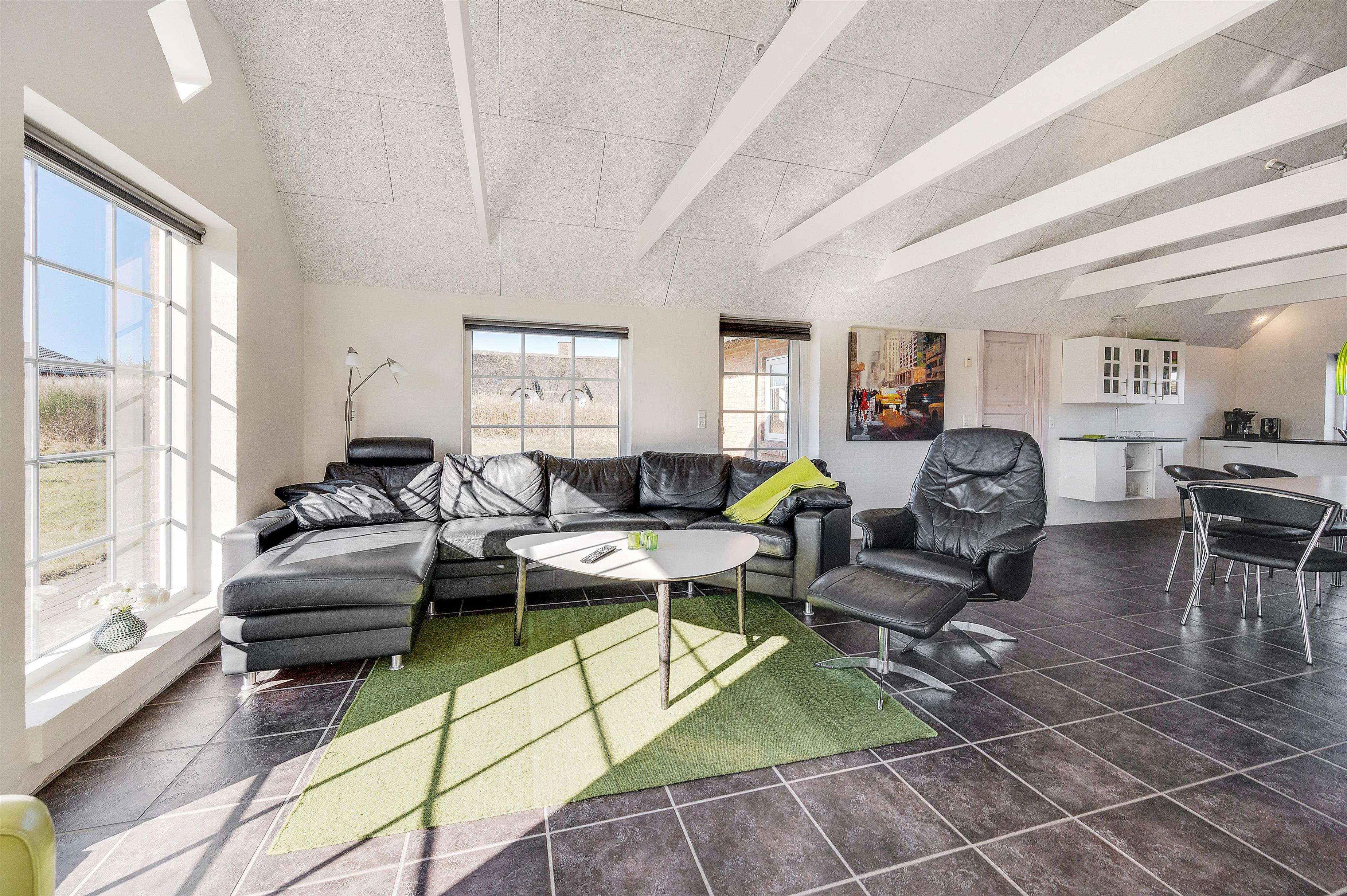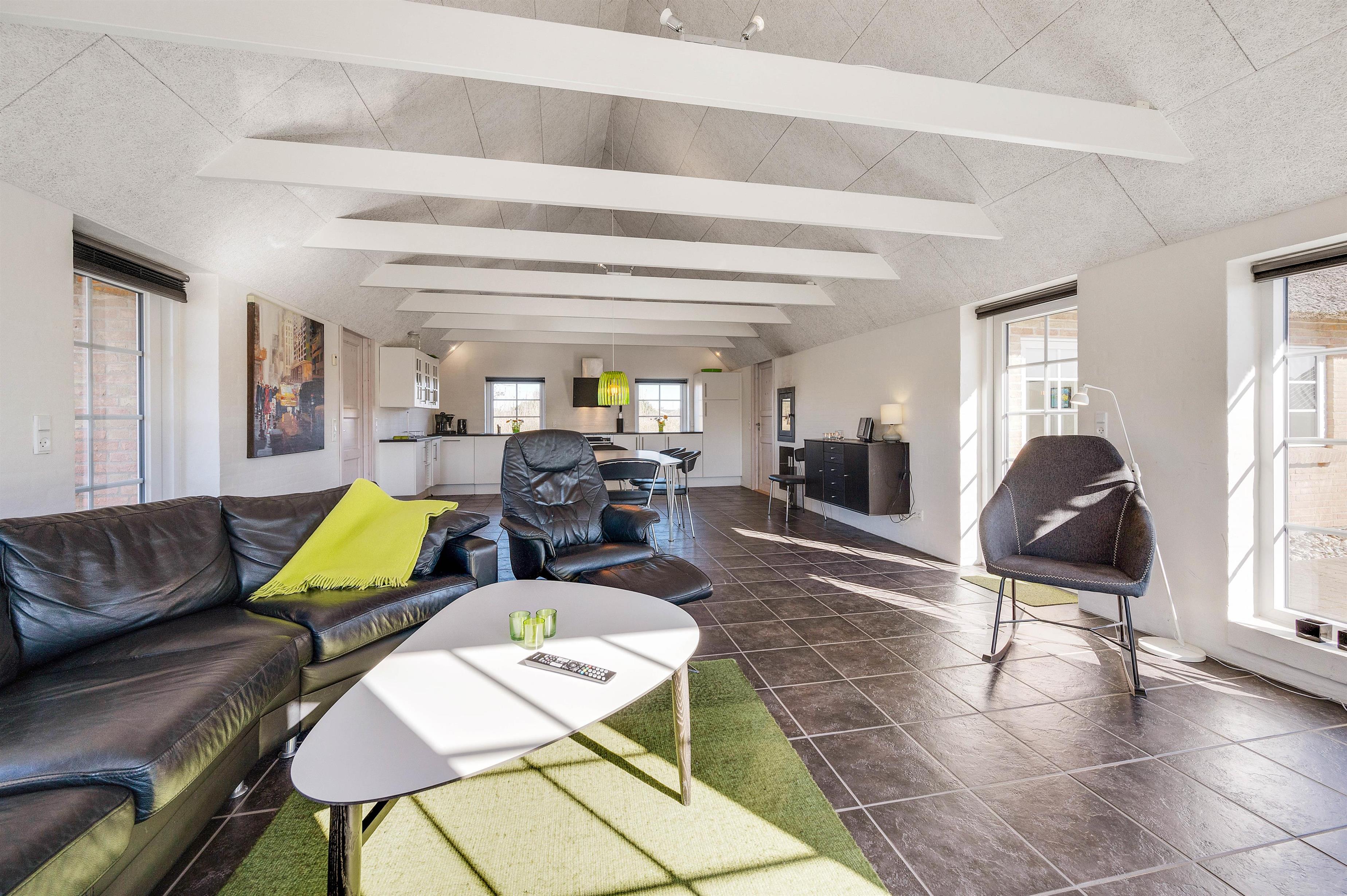 Den store opholdsstue med gulvvarme er det naturlige omdrejningspunkt. Her sørger de hvide vægge, høje lofter og store vinduespartier for at gøre rummeligheden endnu mere slående. I stueafdelingen finder I gode møbler og en flydersofa, man instinktivt har lyst til at smide sig i med en god bog. Stuen er udstyret med TV, DVD, radio og CD-afspiller. Her er naturligvis også gratis internet, så I altid kan holde jer opdaterede på verdenen udenfor.