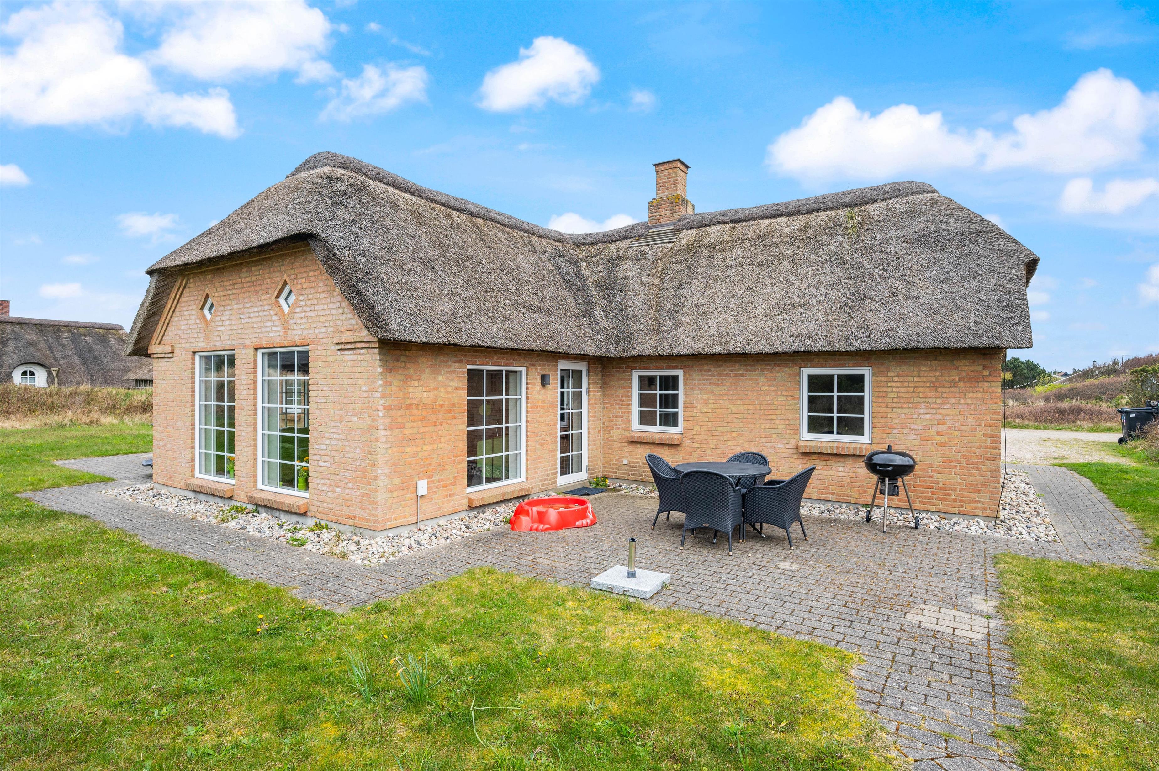 Velholdt stråtækt sommerhus med lys og smagfuld indretning