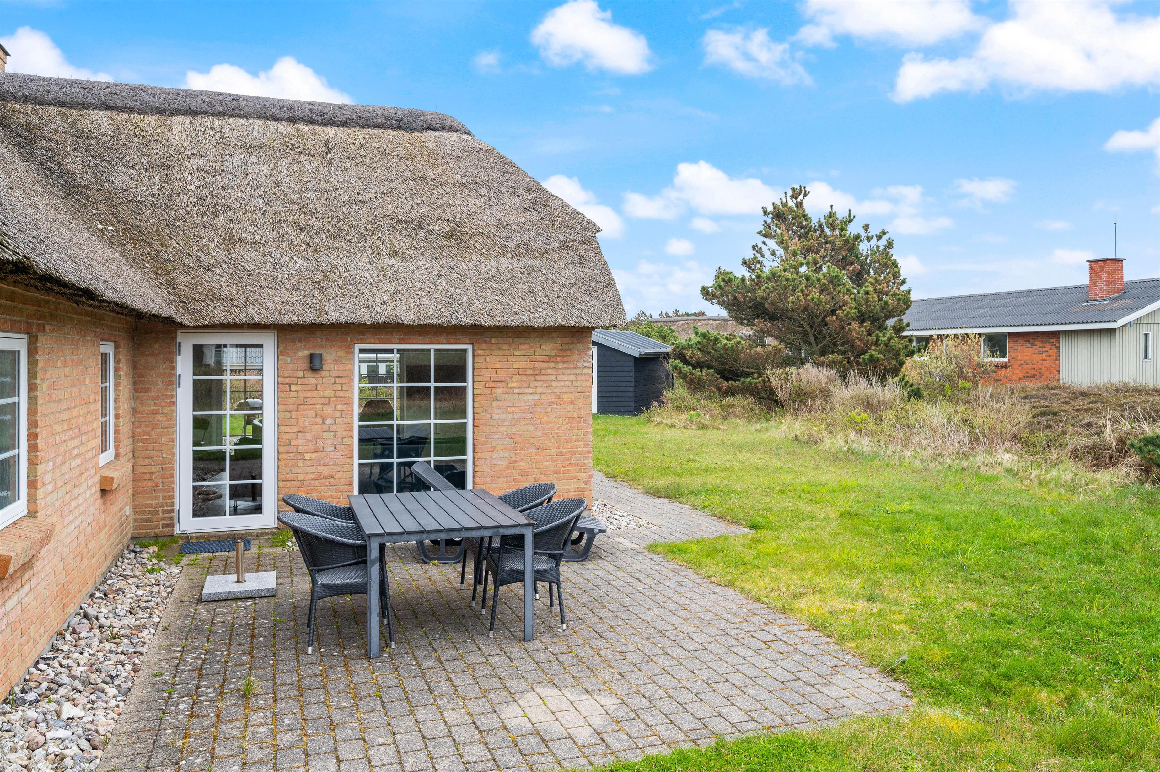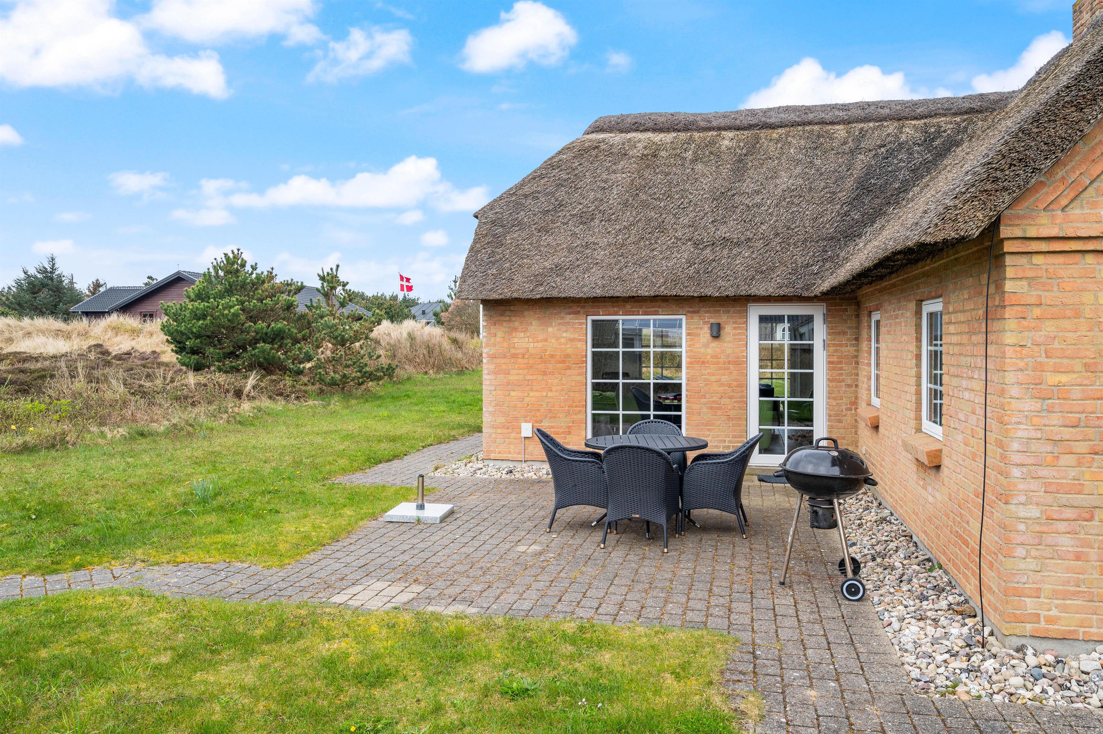 Sommerhuset råder over 2 gode terrasser. En mod vest og en mod øst. I har derfor mulighed for at kunne følge solens stråler i løbet af dagen og finde den helt rigtige solrige plet at slå jer ned i. Der er naturligvis både havemøbler, liggestole og grill til rådighed. Så hvis madlavningen ikke skal foregå i det flotte køkken, så er det oplagt at grille bøfferne på terrassen.