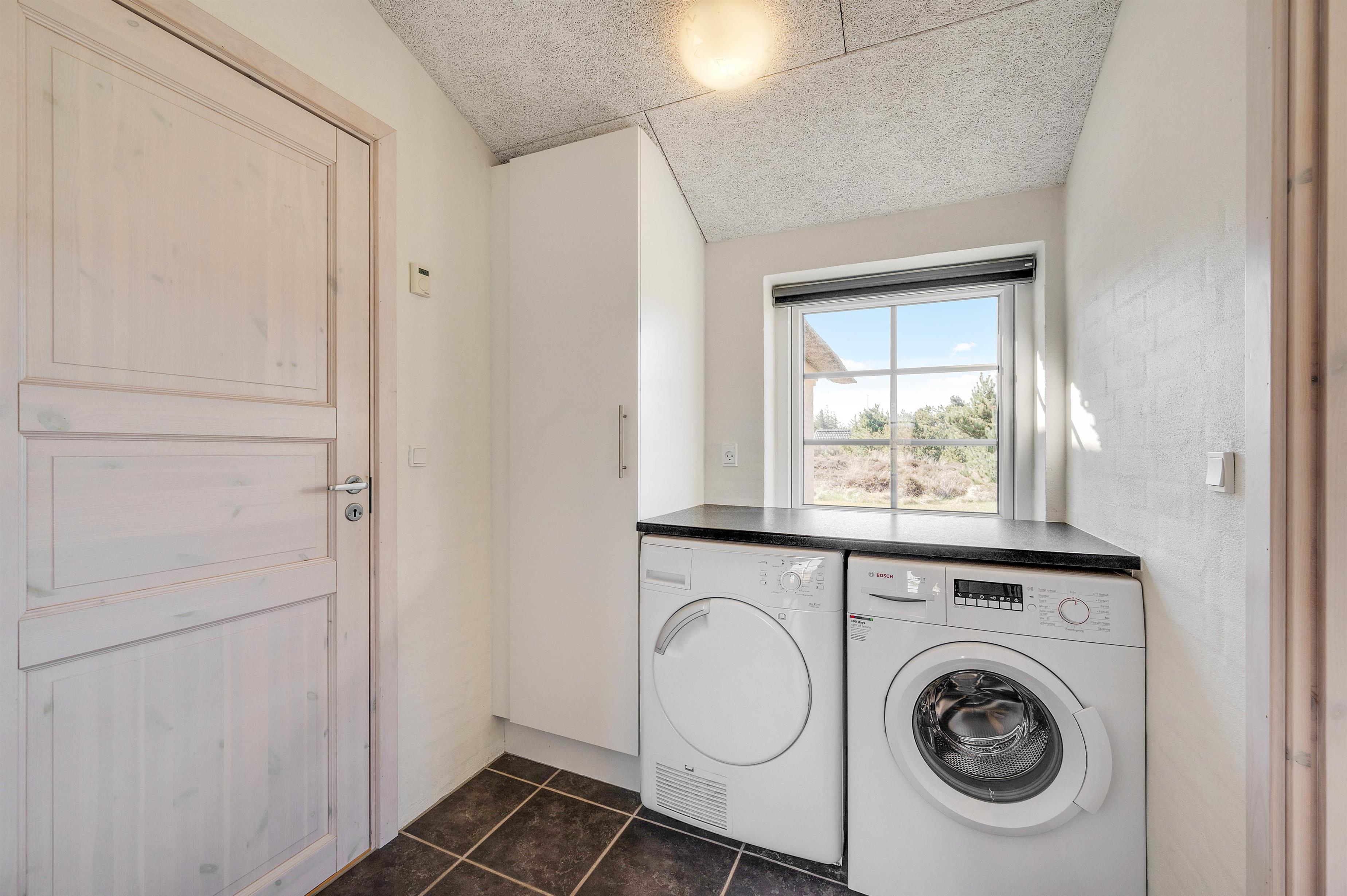 De tre hyggelige soveværelser giver alle feriegæster mulighed for en god nats søvn, med to dobbeltsenge og to enkeltsenge til rådighed. Bliver noget af jeres tøj snavset, er der både en vaskemaskine og en tørretumbler klar til brug.
