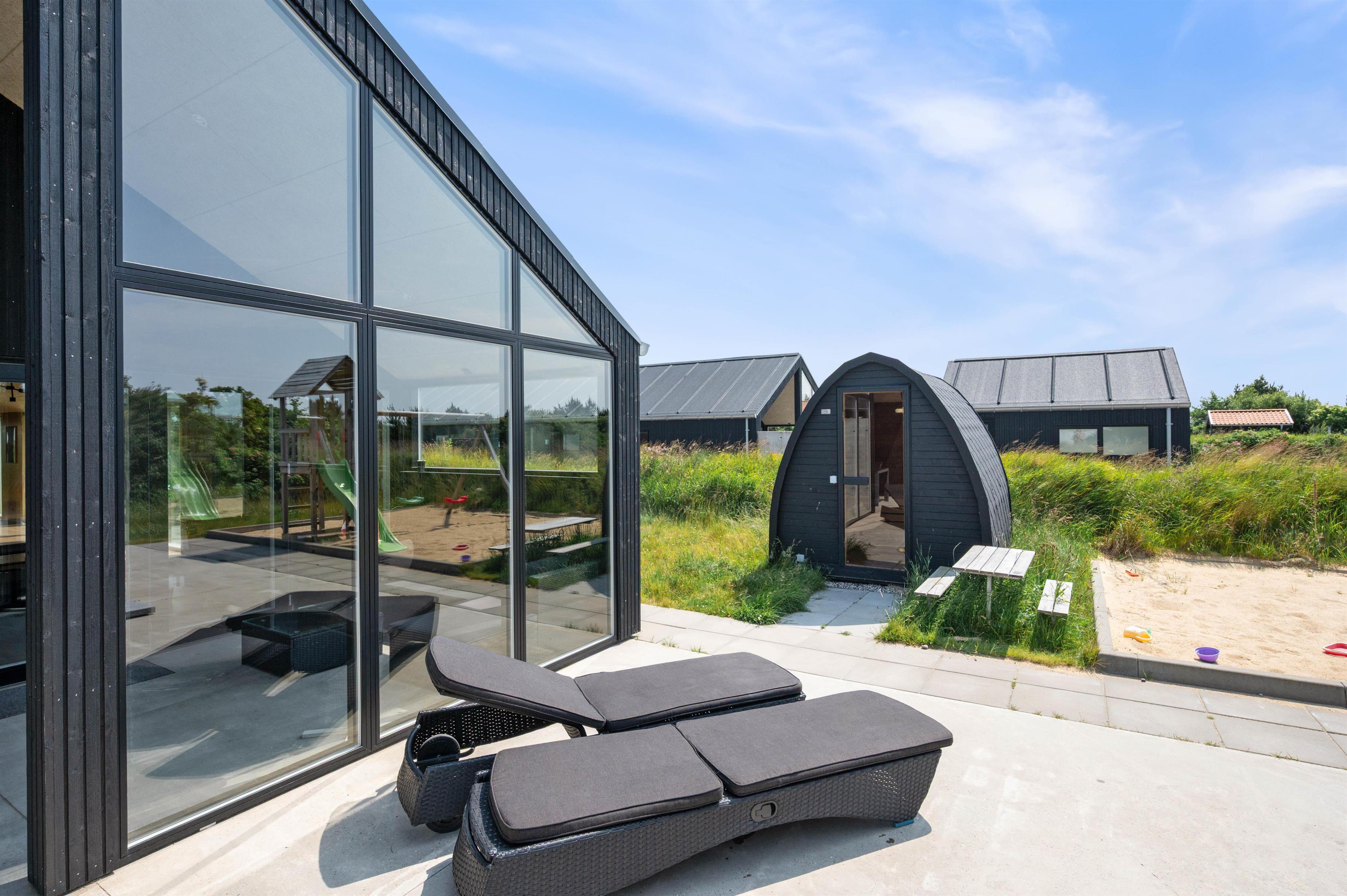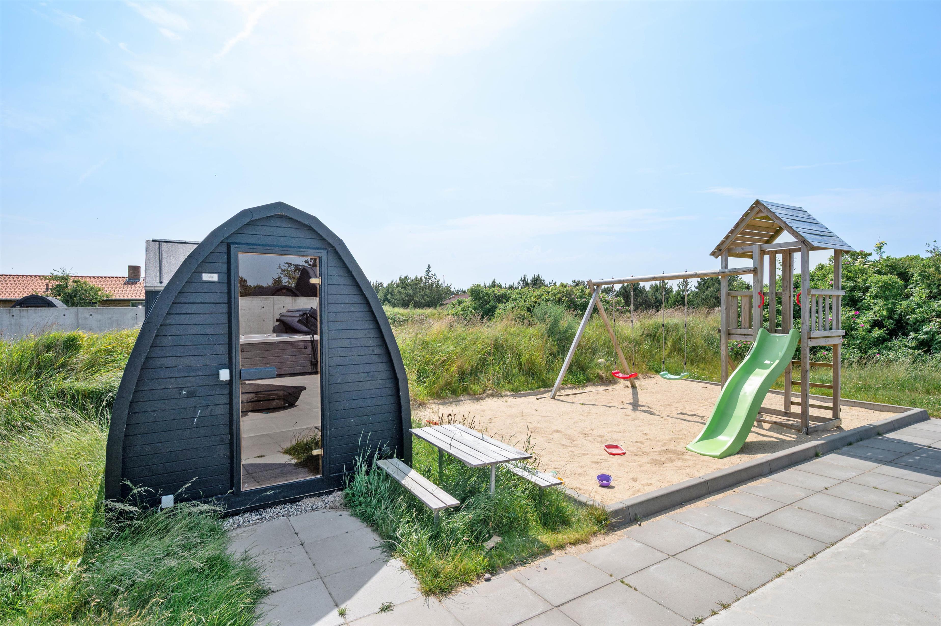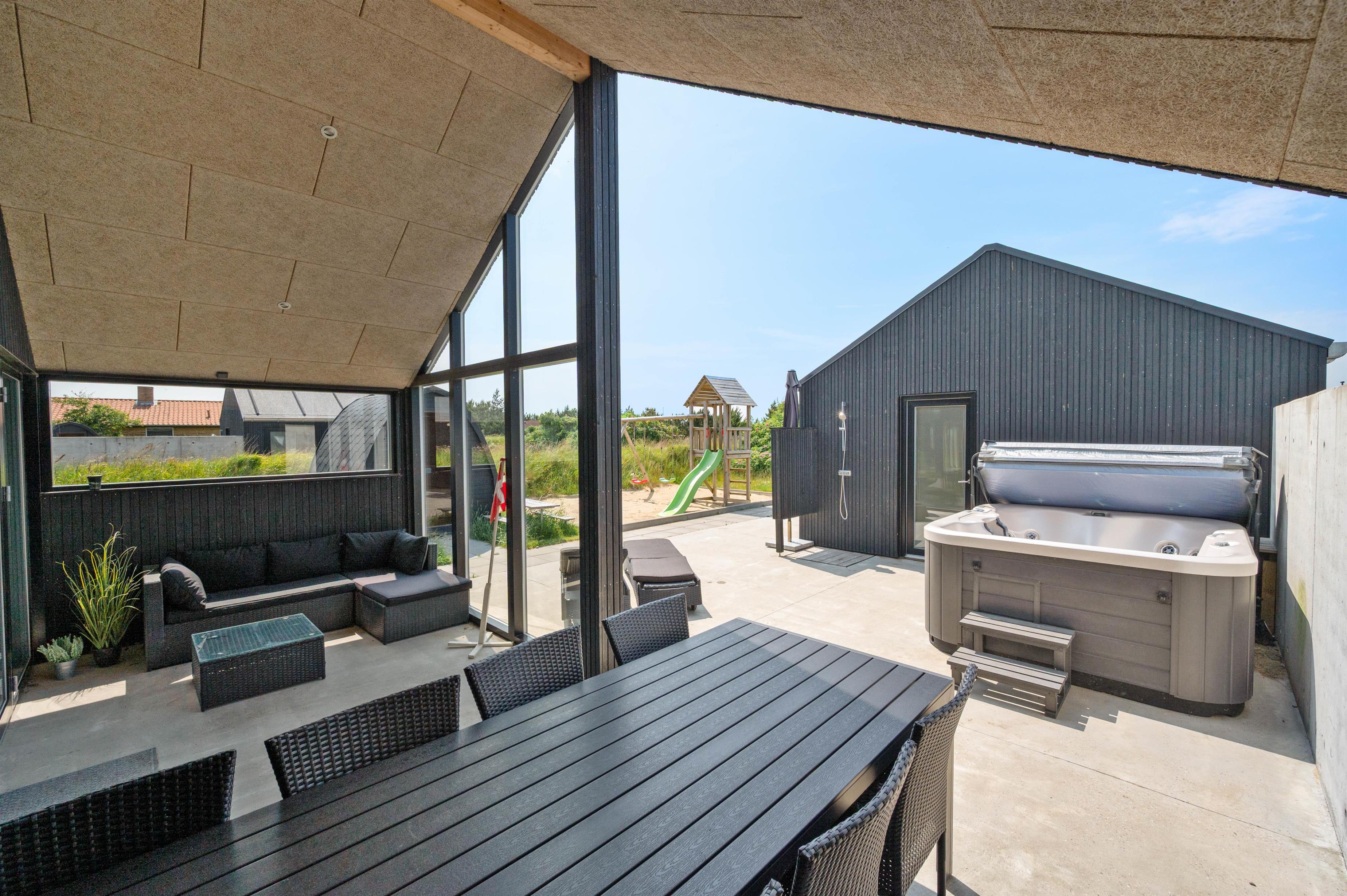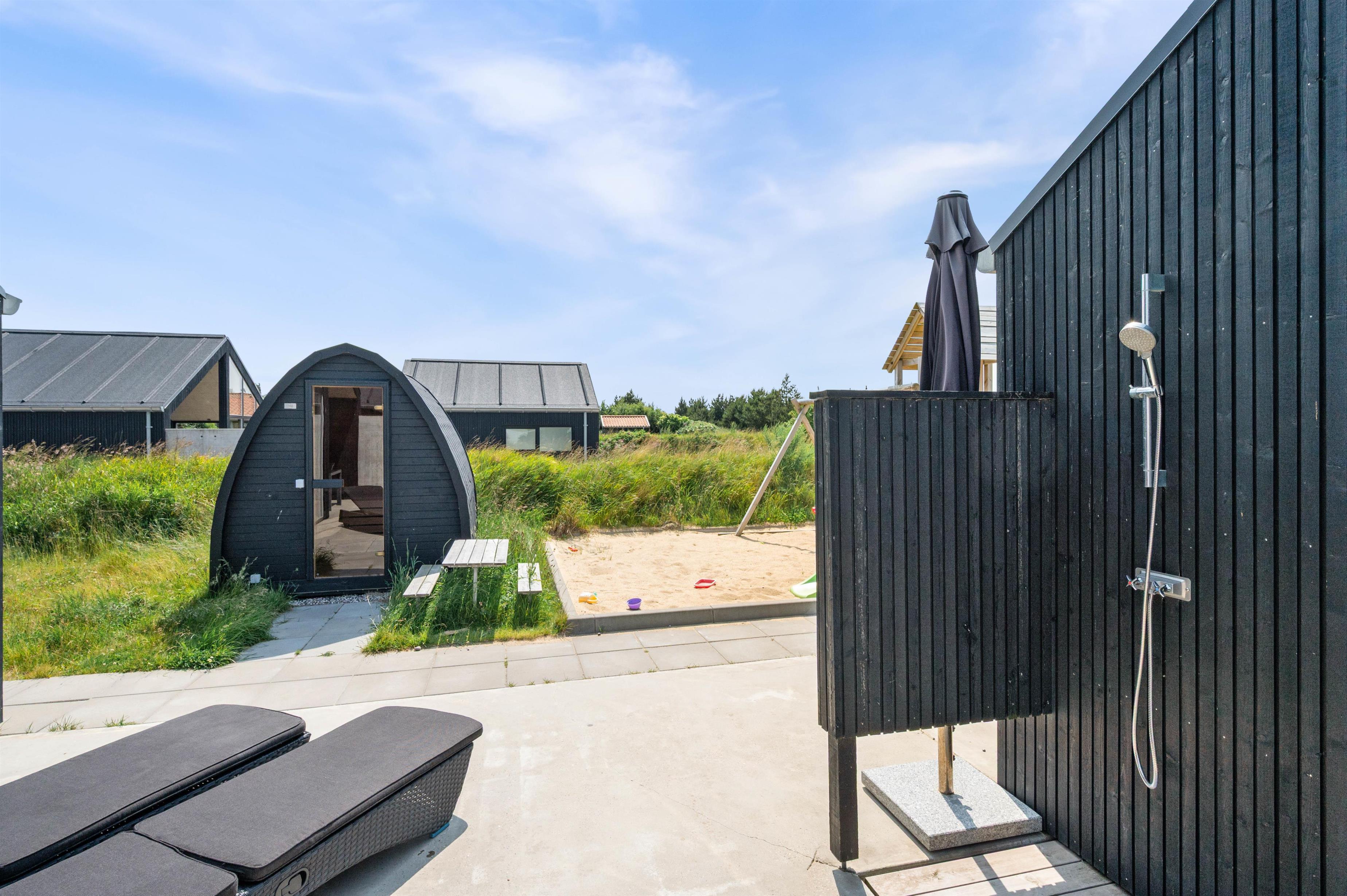 På terrassen venter jer også udespaen. I udespaen kan I nyde afslapning under åben himmel i det boblende vand. I bør desuden også prøve en tur i udespaen om aftenen, hvor I kan nyde masser af afslapning under stjernerne. Er I til ekstra afslapning, har I mulighed for at benytte jer af feriehusets udesauna.
