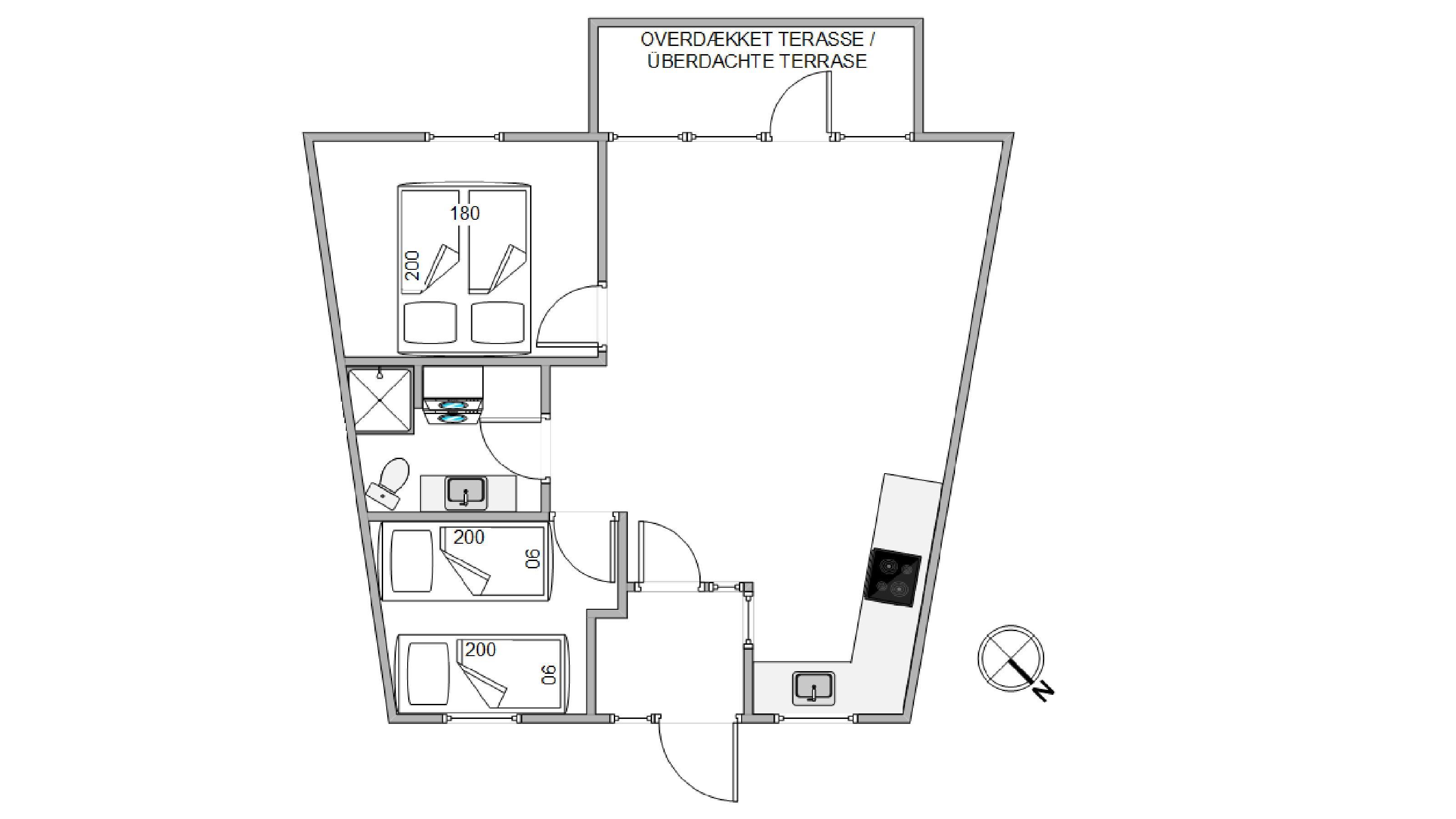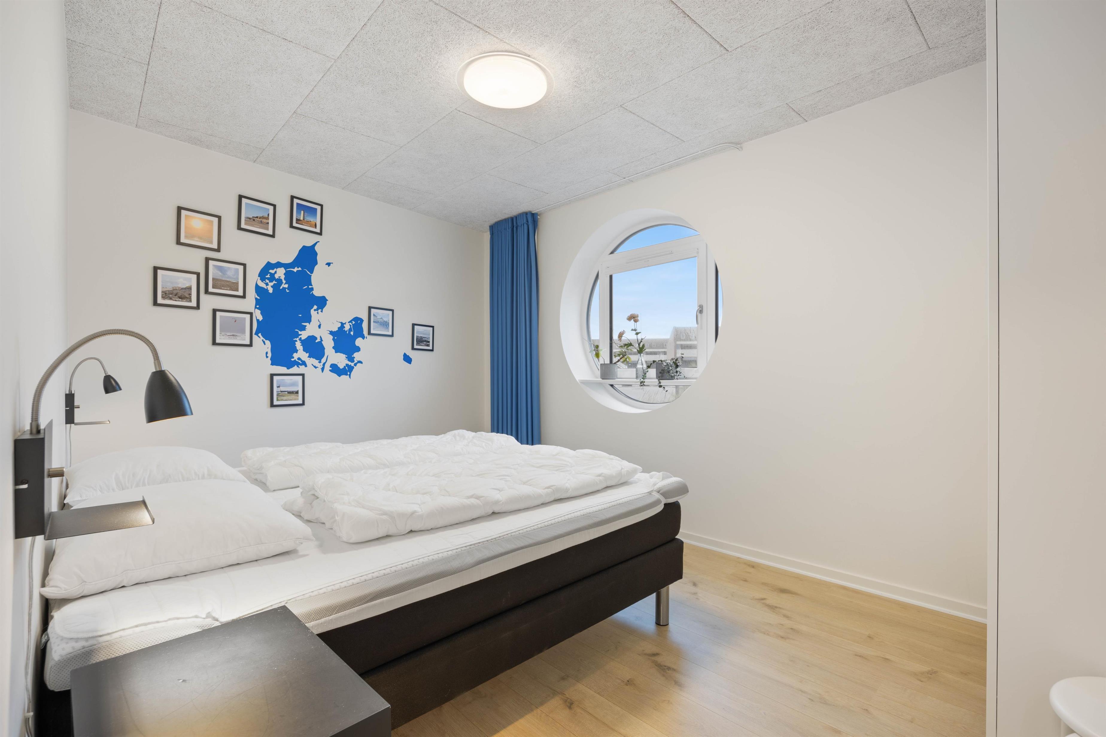 Ferielejligheden rummer 2 soveværelser med gulvvarme og henholdsvis en dobbeltseng og to enkelmandssenge. I kan sætte jer godt tilrette med og nyde jeres morgenkaffe på altanen, som både er overdækket og lukket.