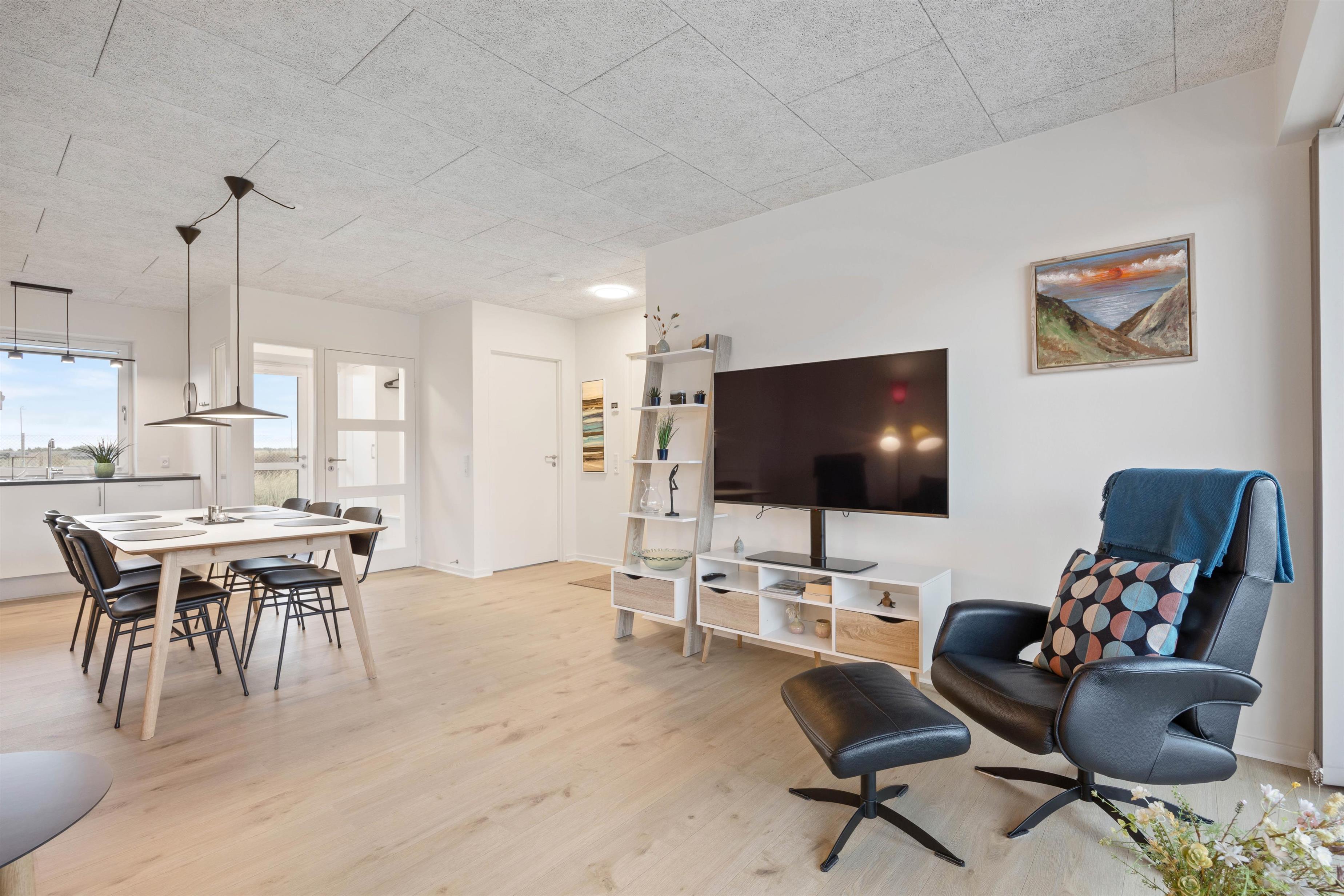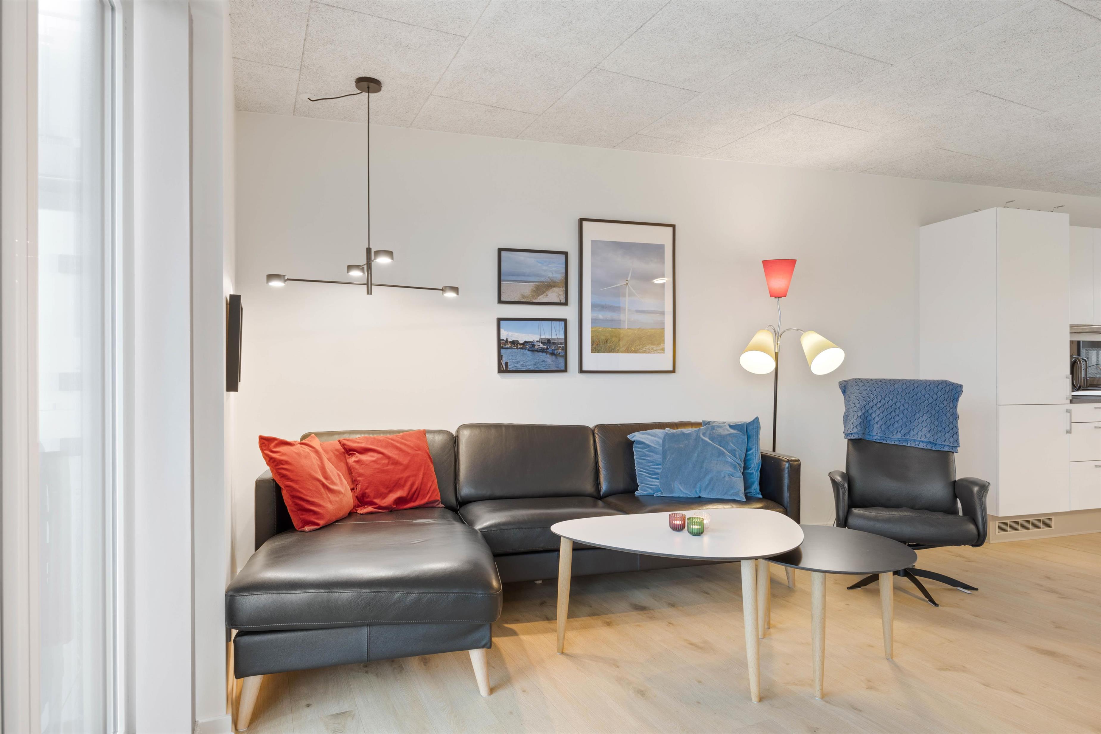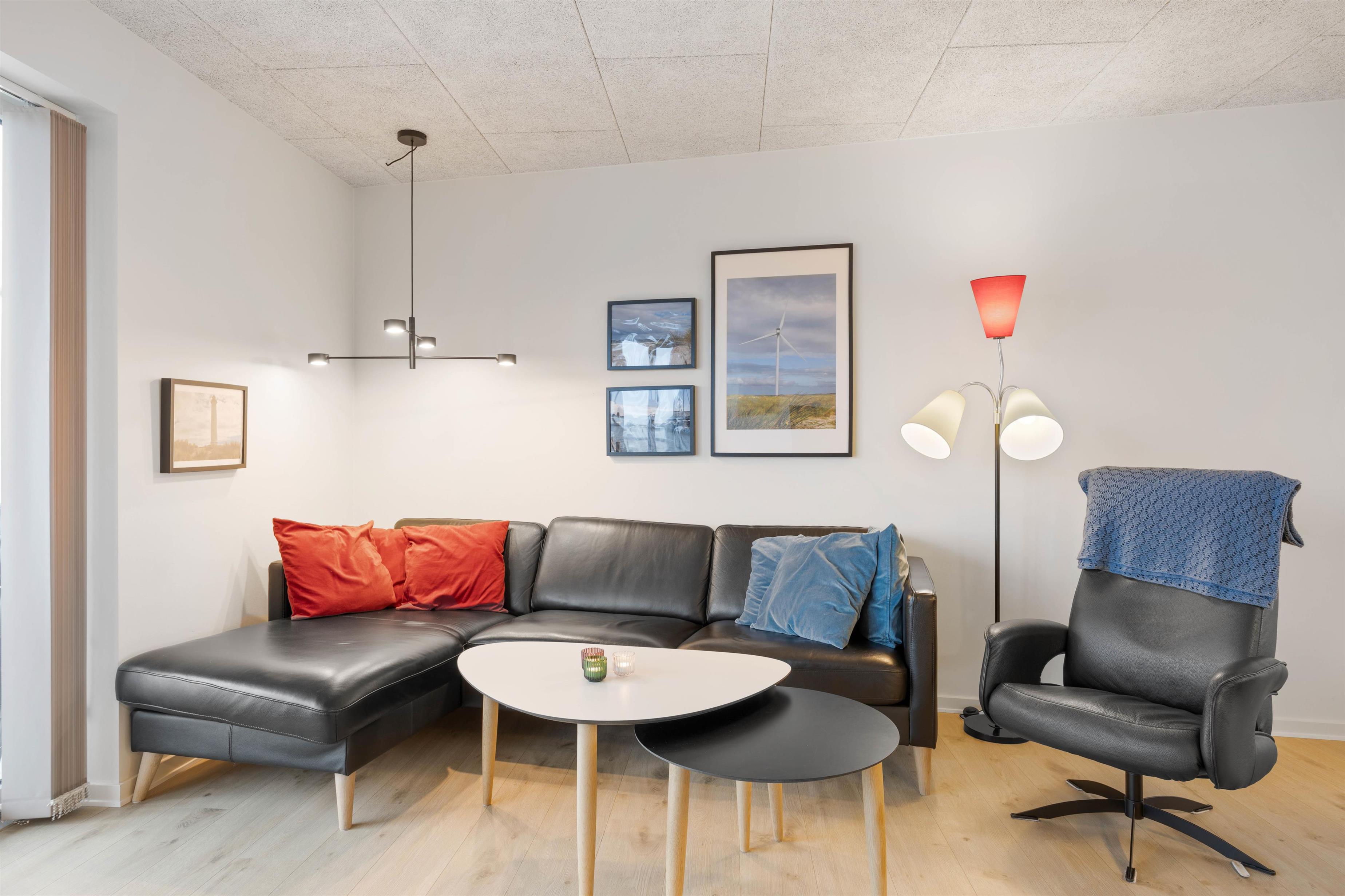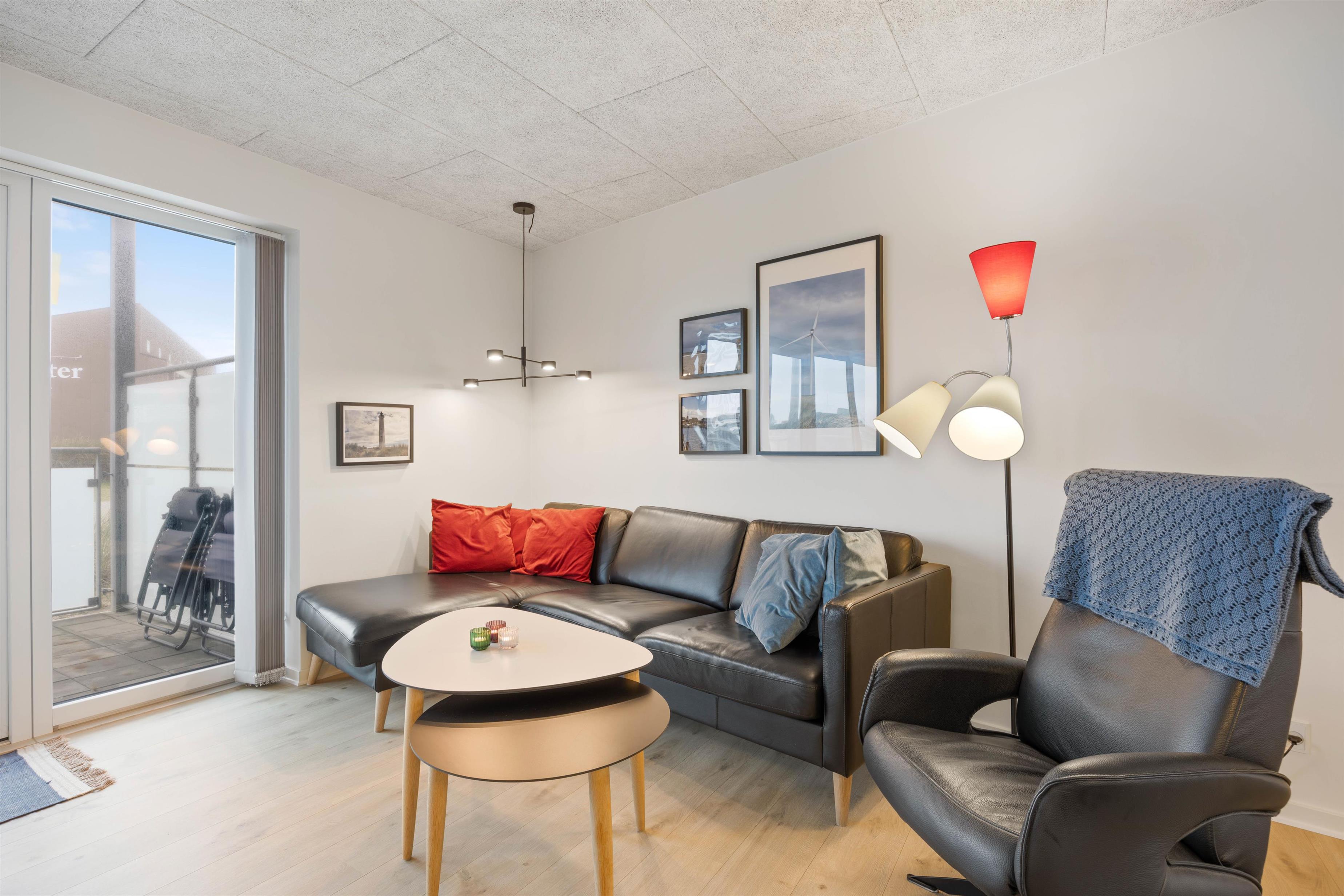 Så snart I træder indenfor i lejligheden, vil I føle sommerferiestemningen sænke sig over jer. Vesterhavets umiddelbare nærhed og den smukke udsigt ud over landskabet sørger for at få både puls og skuldre til at falde til ro.