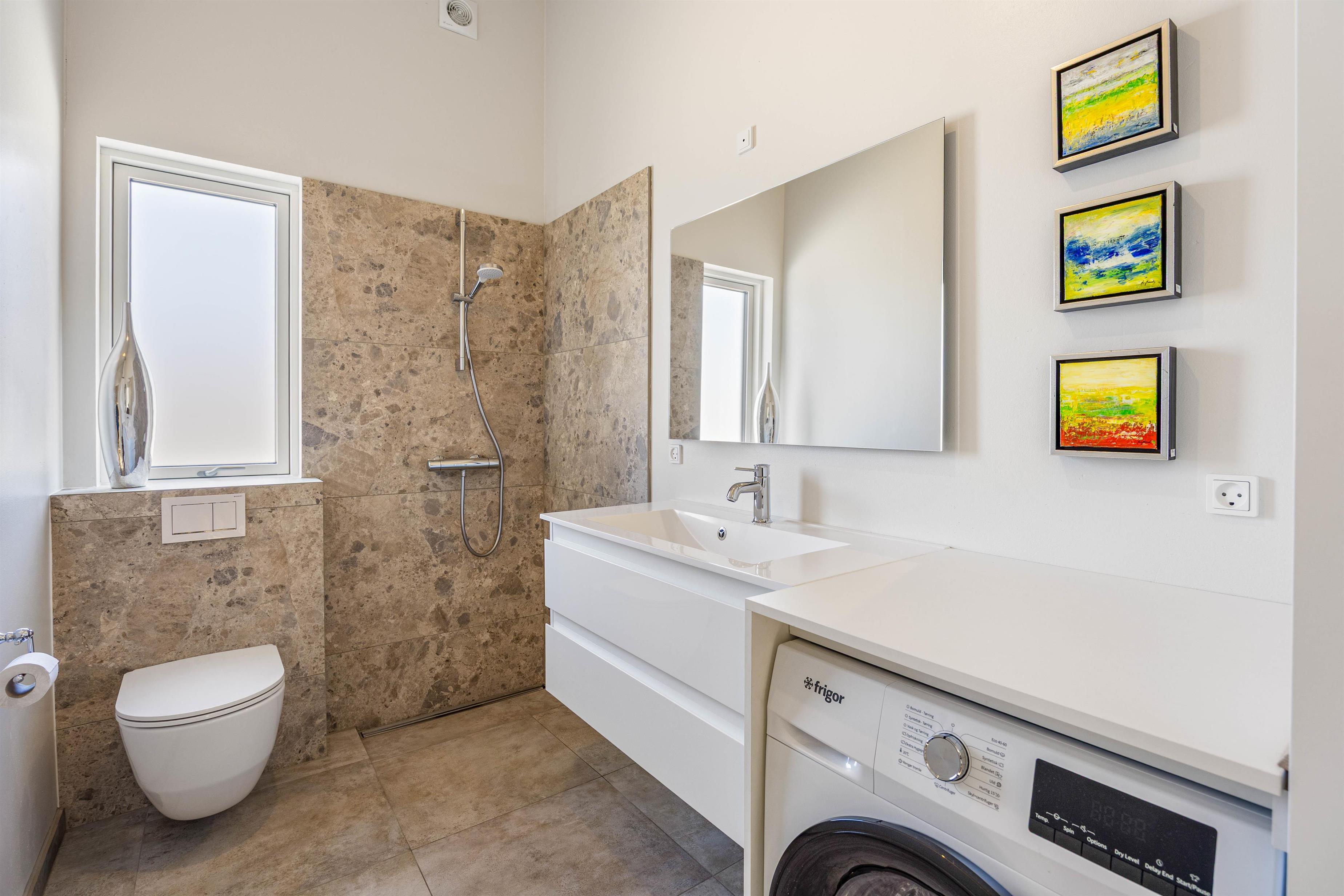 De 77 m2 er indrettet både praktisk og hyggelig. Indenfor mødes I af et åbent opholdsrum, hvor køkken, spiseplads og stue glider naturligt sammen. Det giver luft og plads til at være sammen. Brændeovnen giver hurtigt den behagelige varme og den stille knitren, som får aftenen til at føles helt rigtig. Når I vil slappe af efter en aktiv dag, kan I streame film og serier via chromecasten, hvis I har nogle streamingtjenester. Der er også en luft til luft varmepumpe, som hjælper jer med at holde en stabil og behagelig temperatur året rundt.