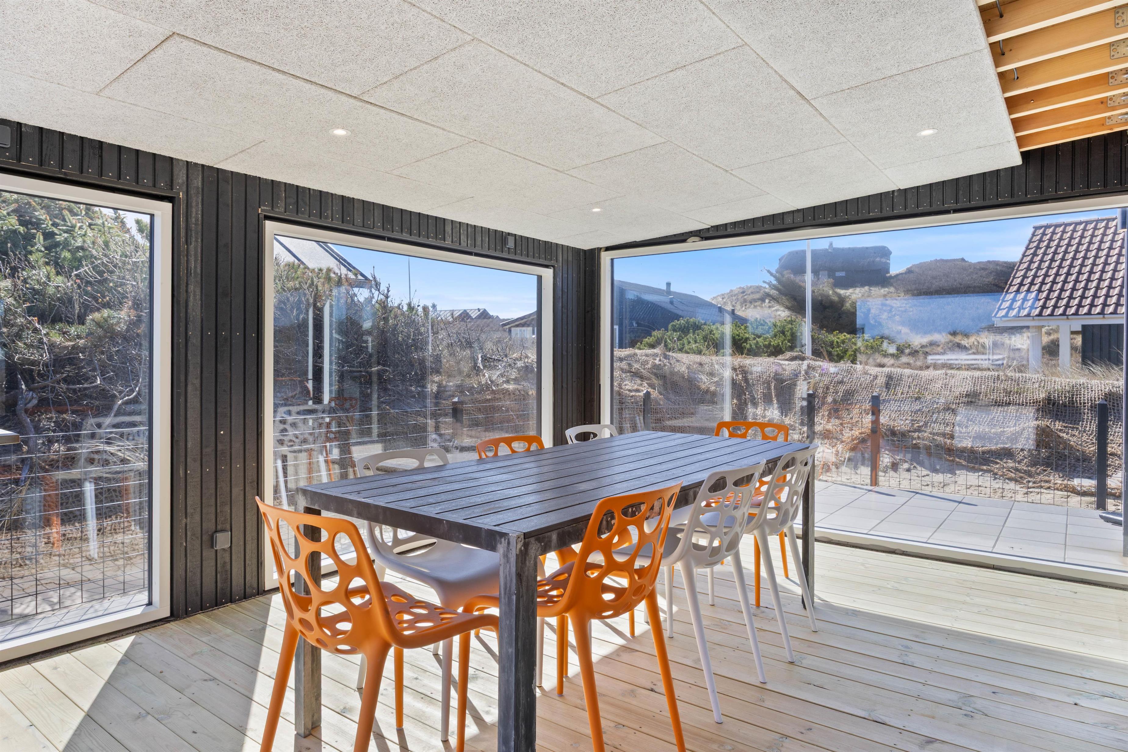 Udenfor fortsætter feriestemningen på naturgrunden, hvor I kan læne jer tilbage i havemøblerne og nyde den friske luft. Hvis I foretrækker et sted med læ, så er der en afskærmet terrasse, som egner sig godt. Derudover er der en lukket terrasse, hvor jeres hunde med fordel kan løbe. På terrassen finder I også en gasgrill, så I kan nyde en hyggelig grillaften sammen.