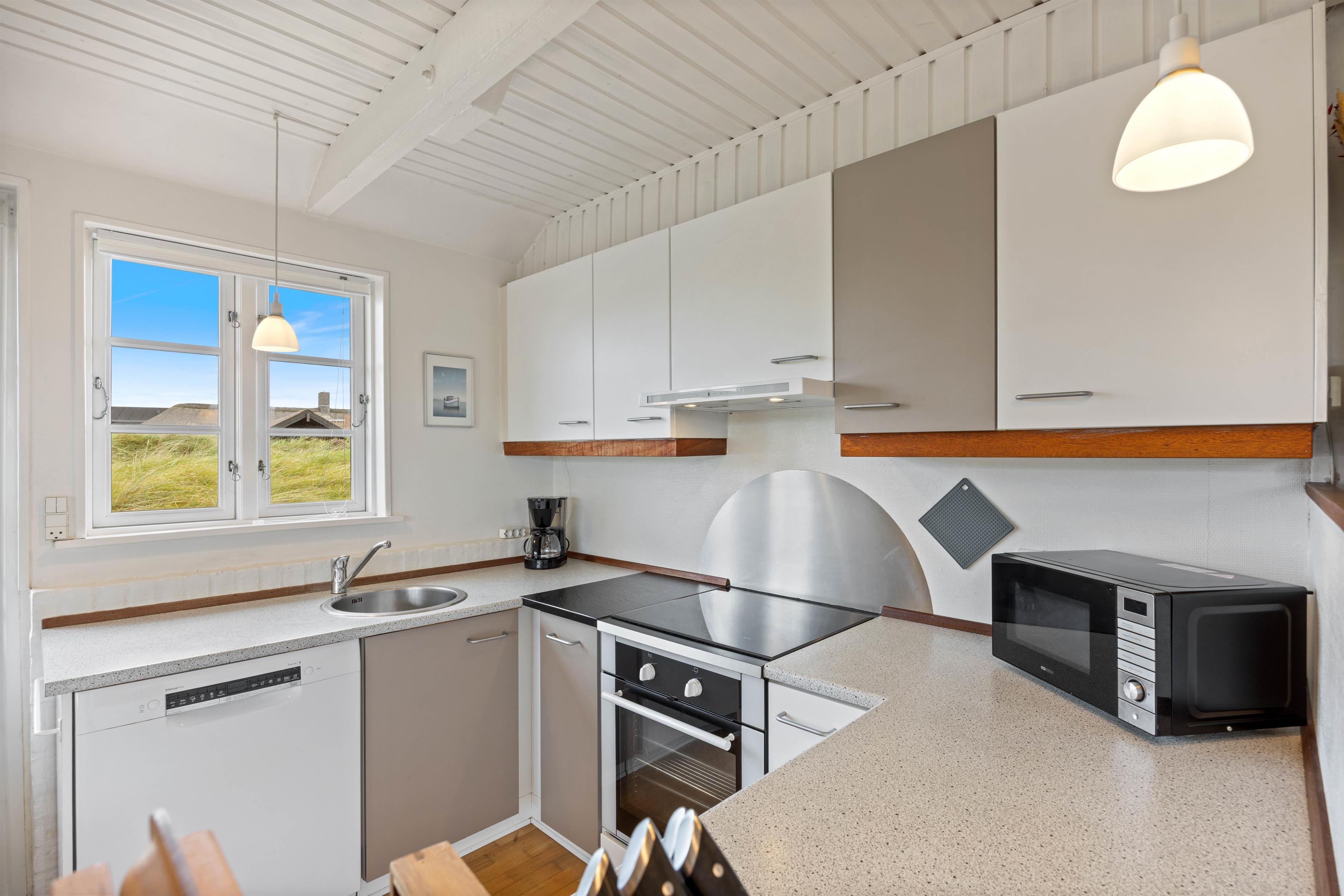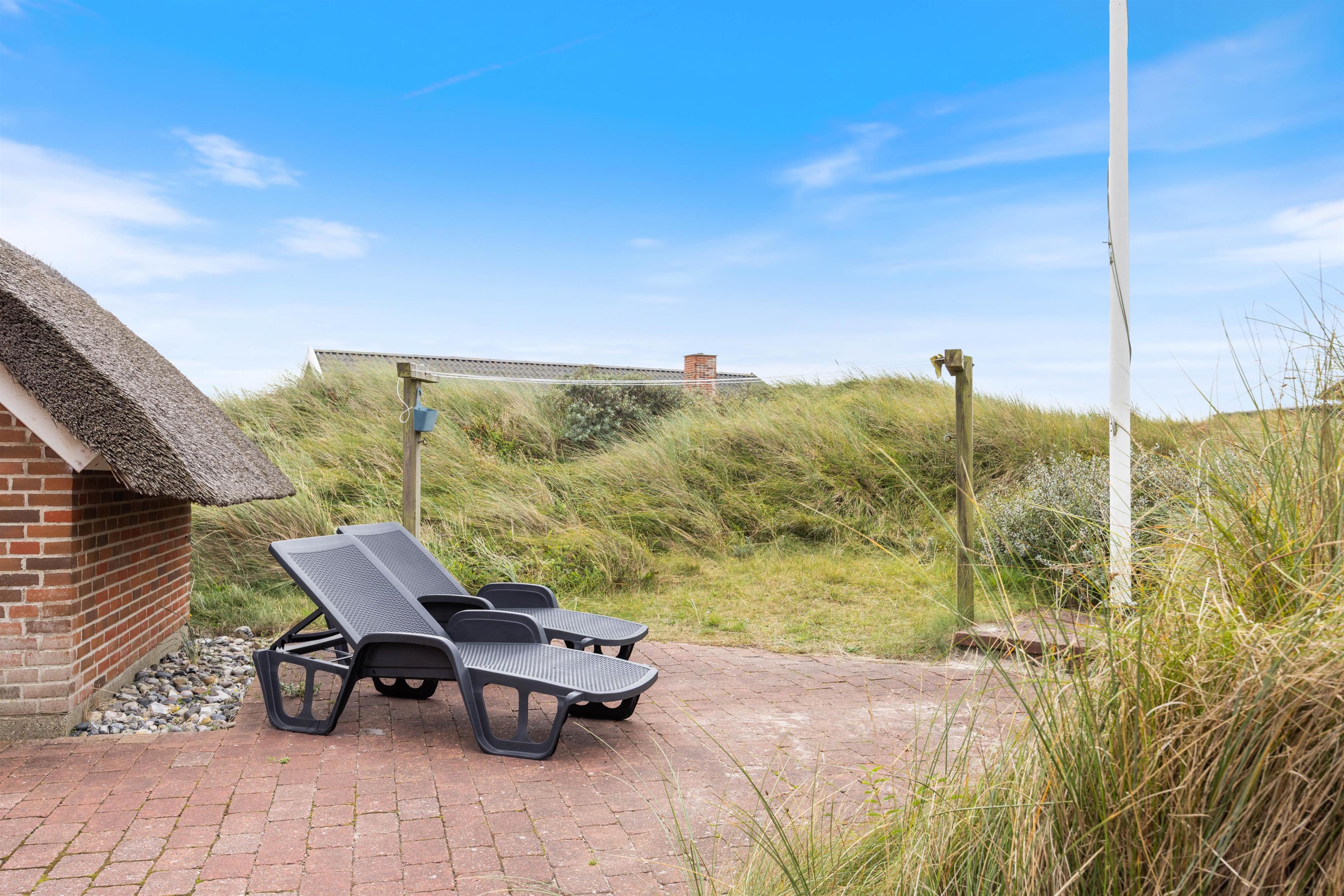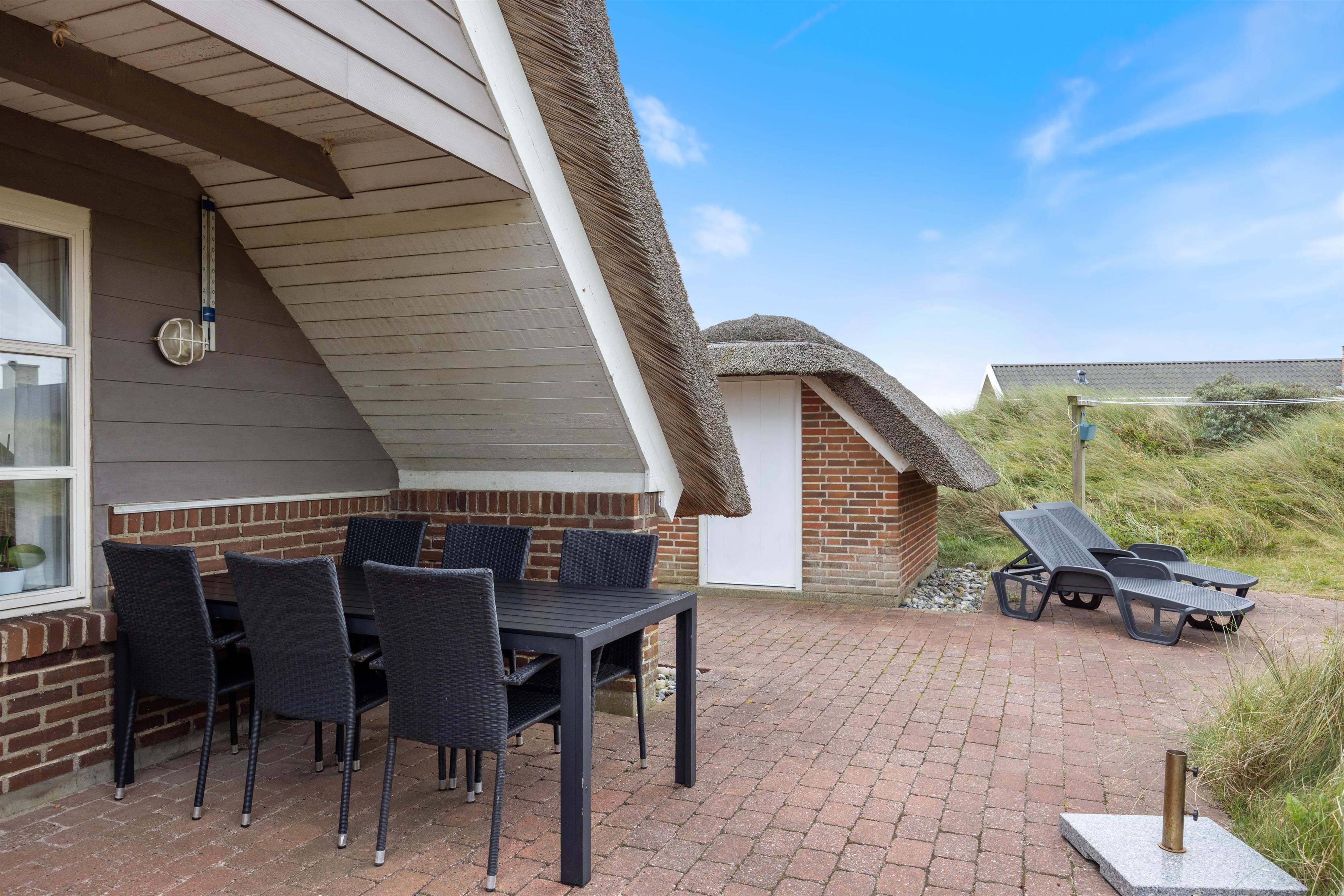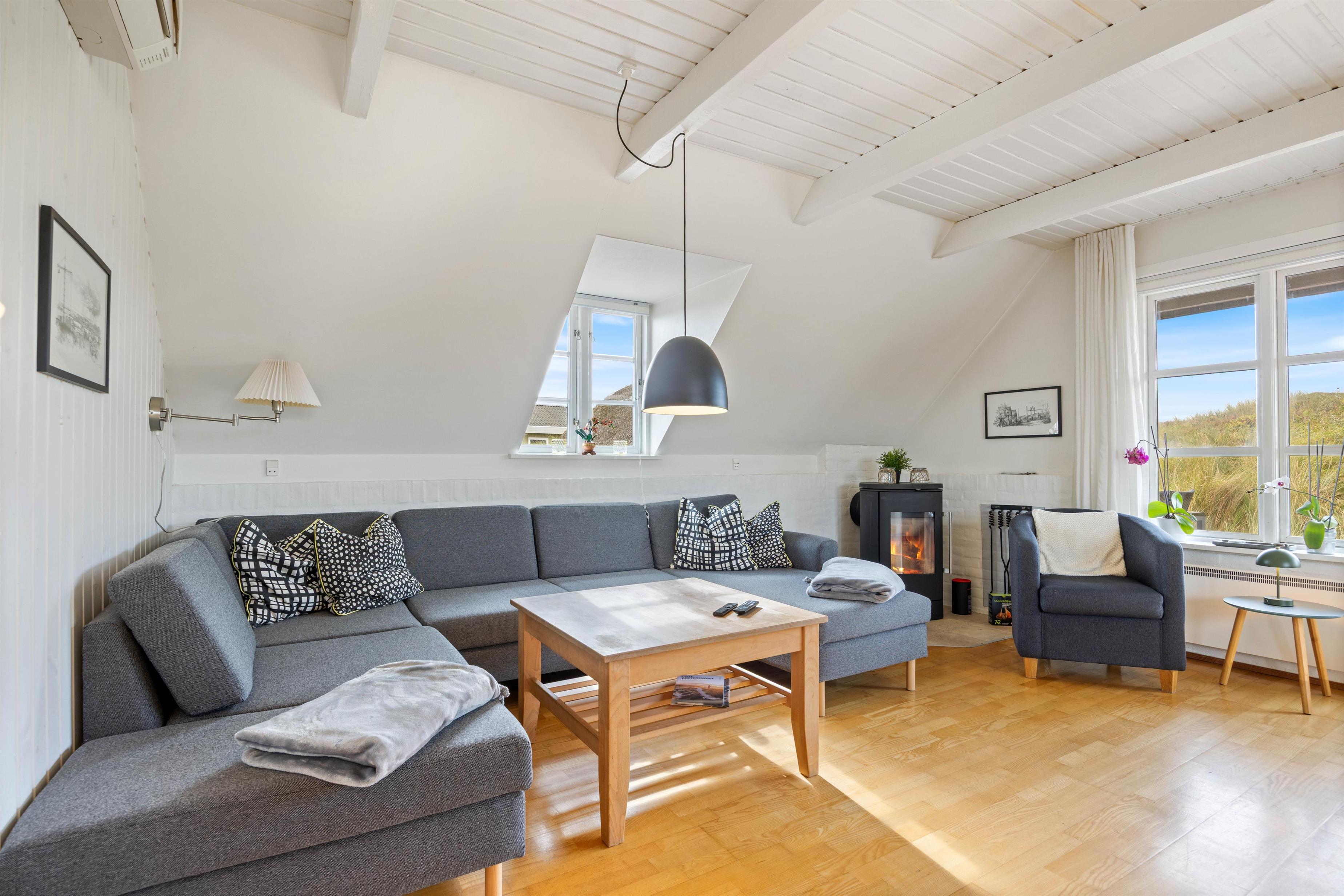 Det stråtækte feriehus med det vestjyske klitlandskab i baggrunden emmer af charme, og rammerne er sat for en idyllisk sommerhusferie i naturskønne omgivelser. I vil straks blive budt velkommen af den lyse og hyggelige indretning med fine, personlige detaljer, der skaber en ekstra indbydende ferieatmosfære. De lyse lofter og vægge skaber en dejlig atmosfære. Den gode atmosfære styrkes kun af husets brændeovn, der bidrager med varme og hygge til den gode atmosfære.