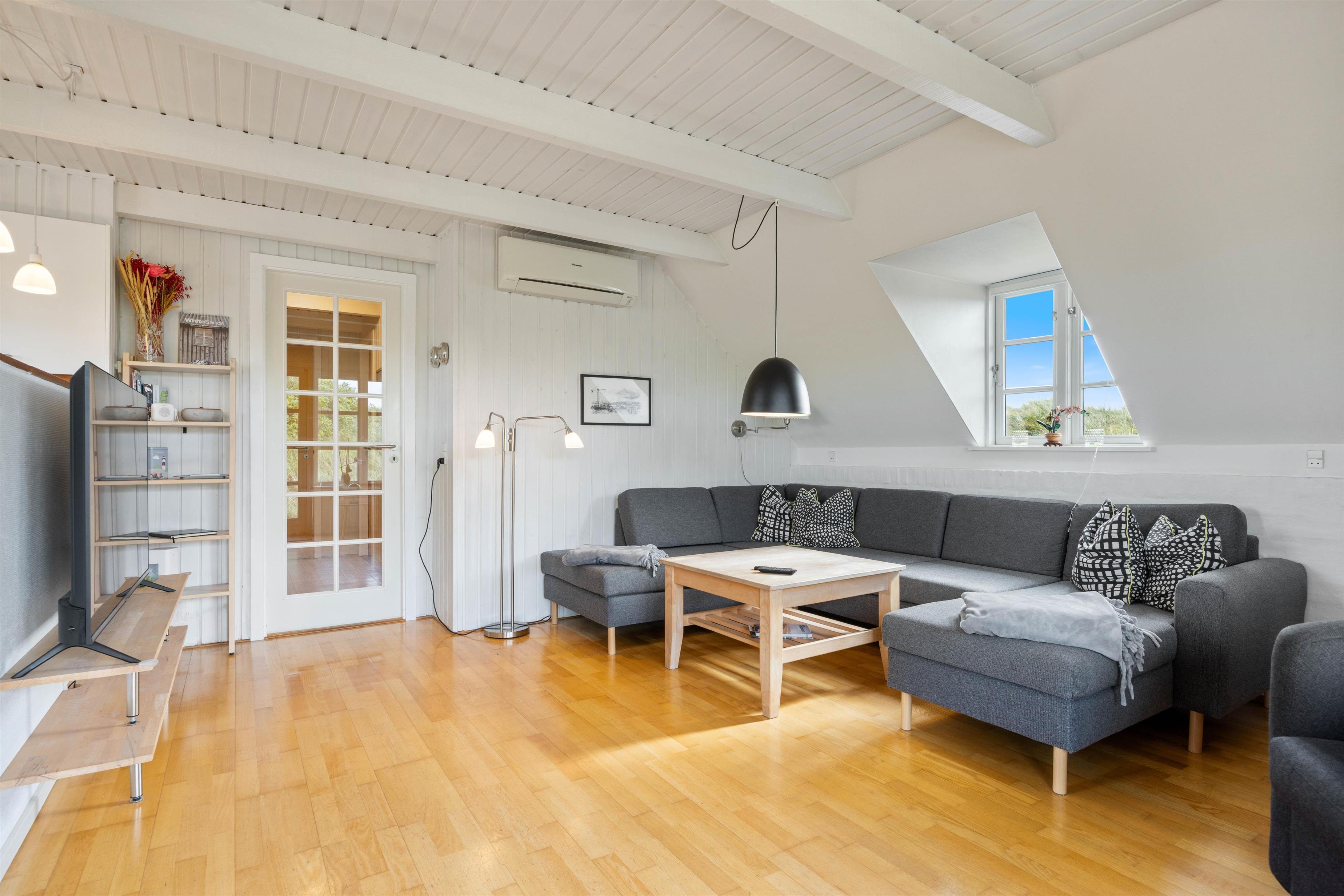 Huset rummer plads til seks personer fordelt på tre fine soveværelser. Køkkenet og stuen er åbnet op og slået sammen til ét stort opholdsrum, hvor hele familien kan samles om hyggen. I hjørnet står den klassiske brændeovn, som spreder varme og god stemning på sene aftener og kølige feriedage.