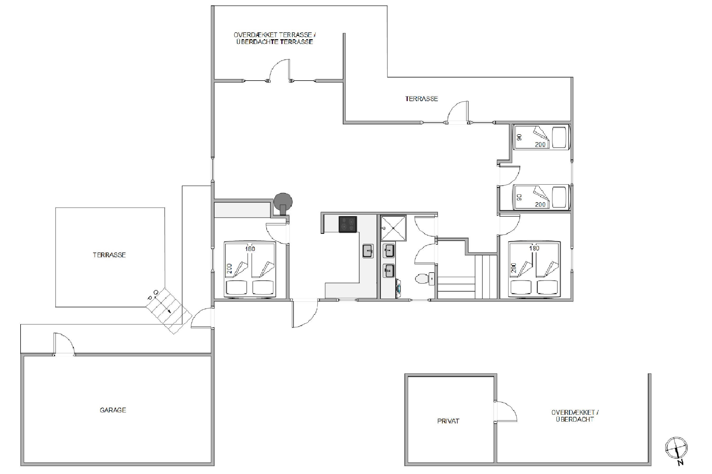 Alrummet, der forener køkken, stue og spiseplads, udgør sommerhusets hjerte, og samtidig vil det være jeres store samlingspunkt, hvor I kan samle ferieflokken til hyggelige stunder med mad, spil og film, mens brændeovnen fuldender feriestemningen med sin knitrende flammer.