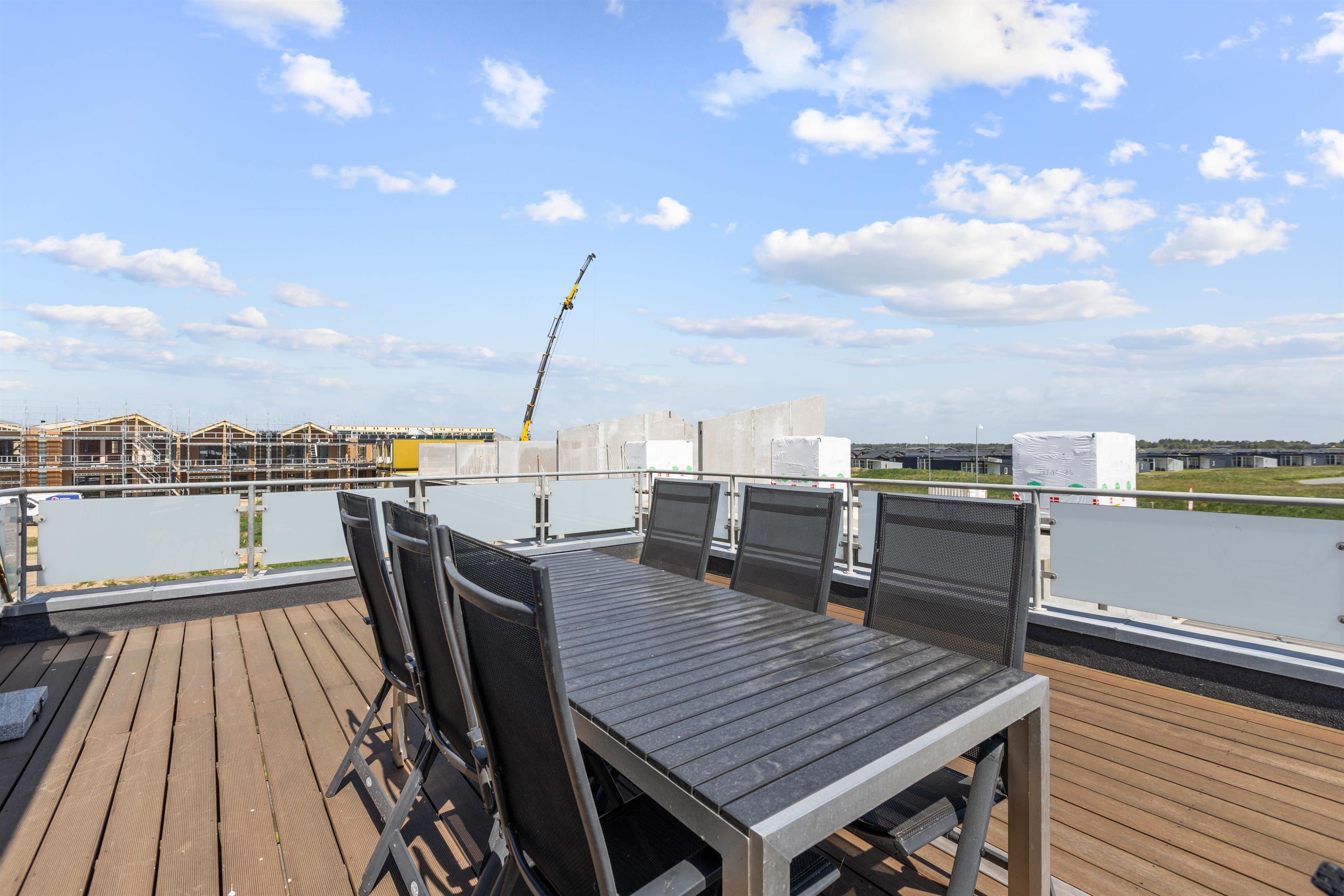 Den østvendte terrasse er åben og egner sig perfekt til både solbadning og grillmiddage. I kan tage plads på havemøblerne og kigge ud i det fjerne lidt fra oven, imens I nyder en kold drink. Den vestvendte terrasse er overdækket, og herfra kan I følge med i byens liv nede på gaden, men samtidig sidde i fred bag det mælkehvide glasrækværk.