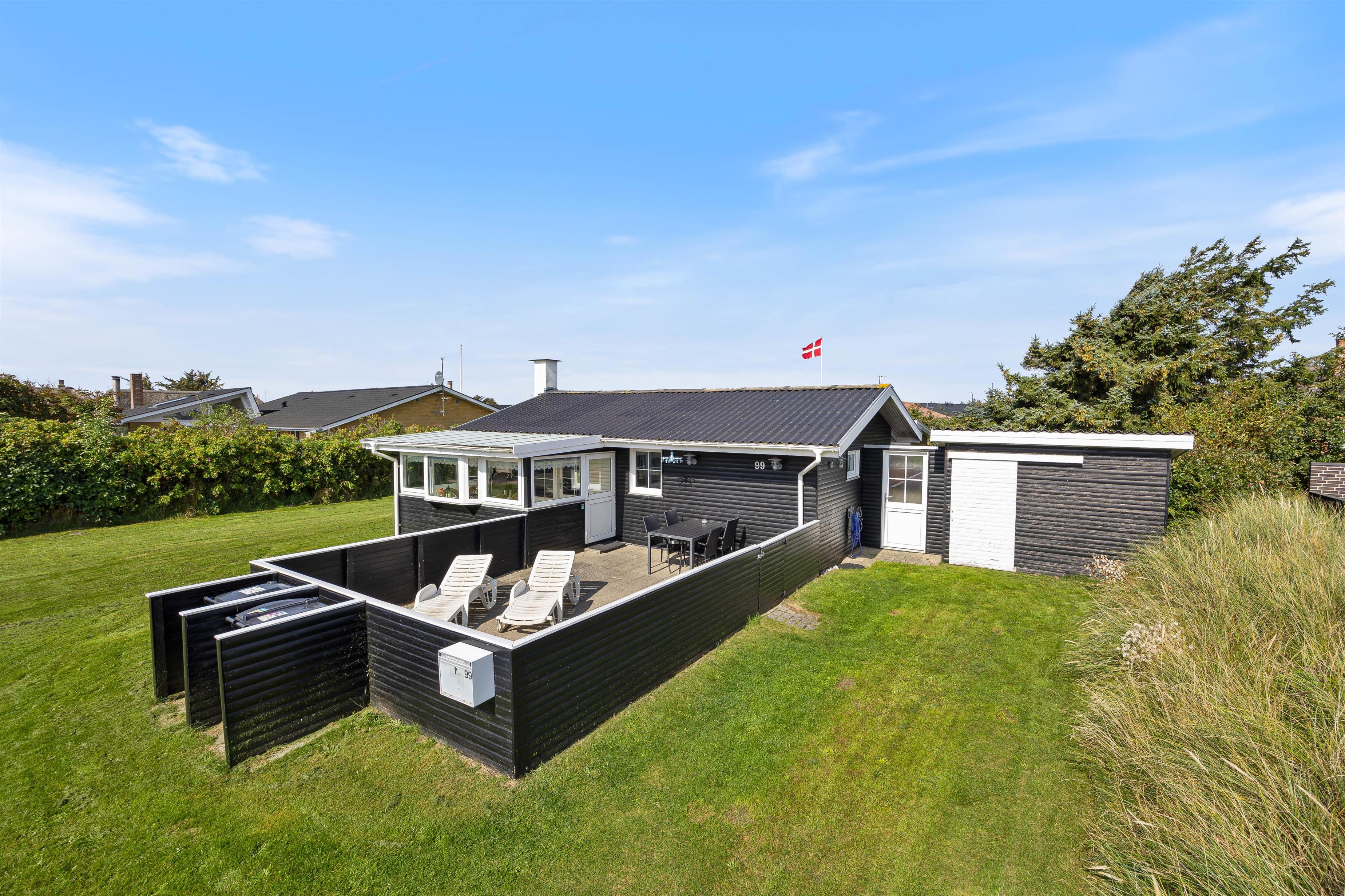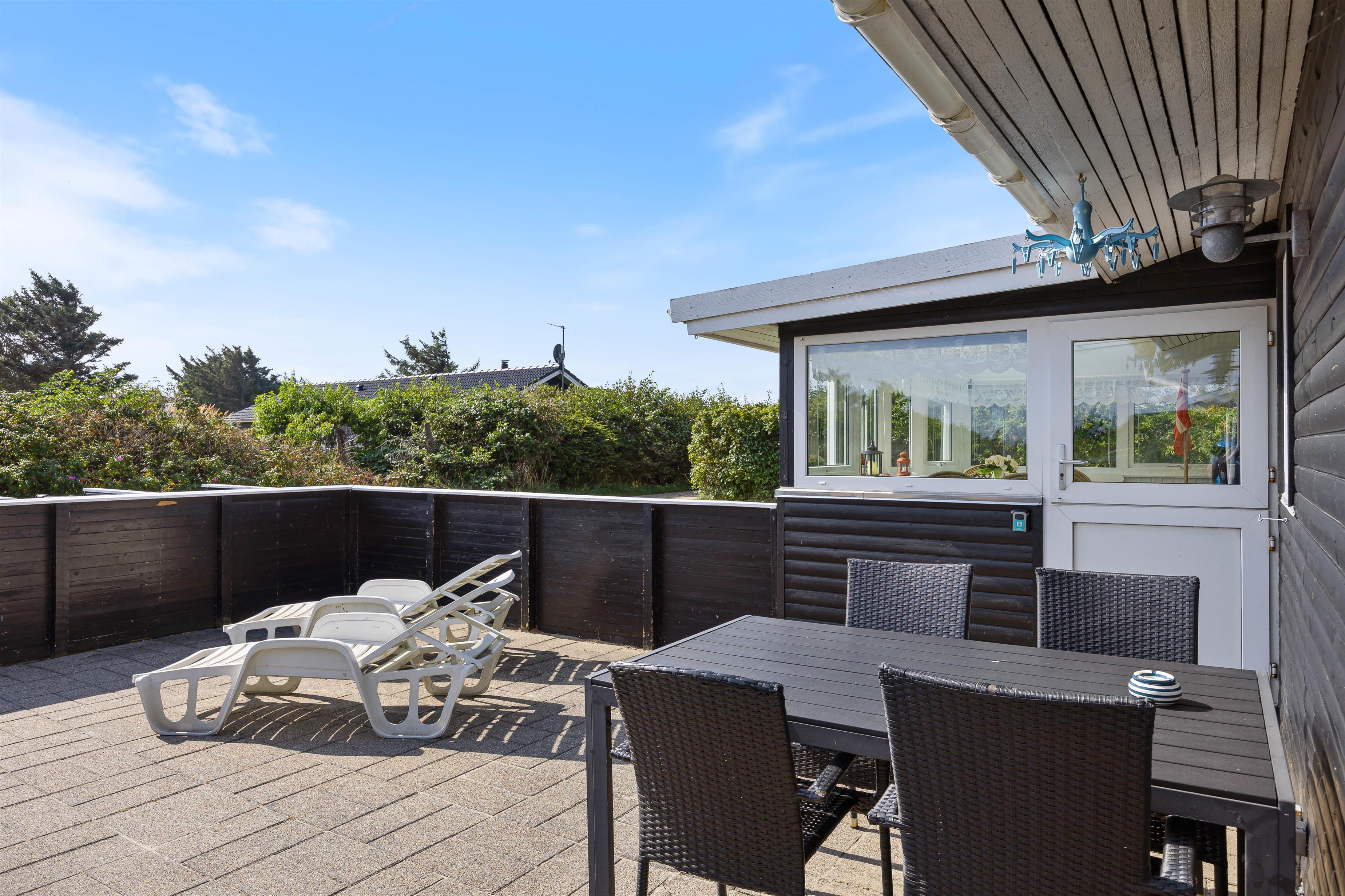 Sommerhuset har to lukkede terrasser, hvilket er helt perfekt så hverken børn eller husdyr kan fare vild. I kan sætte jer godt til rette i havemøblerne og læse en god bog, mens I kan høre Vesterhavets bølger i baggrunden. Om aftenen er der en grill, hvor man kan tilberede velsmagende delikatesser. Bagefter kan I tage til stranden sammen og nyde en spektakulær solnedgang.
