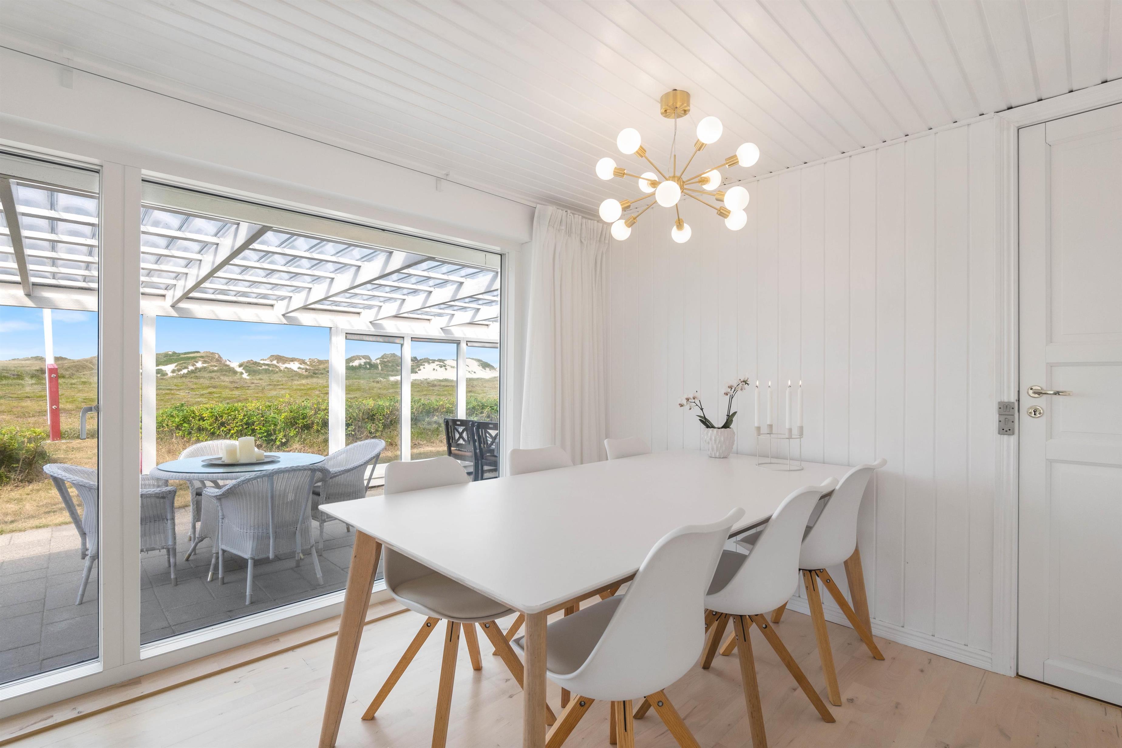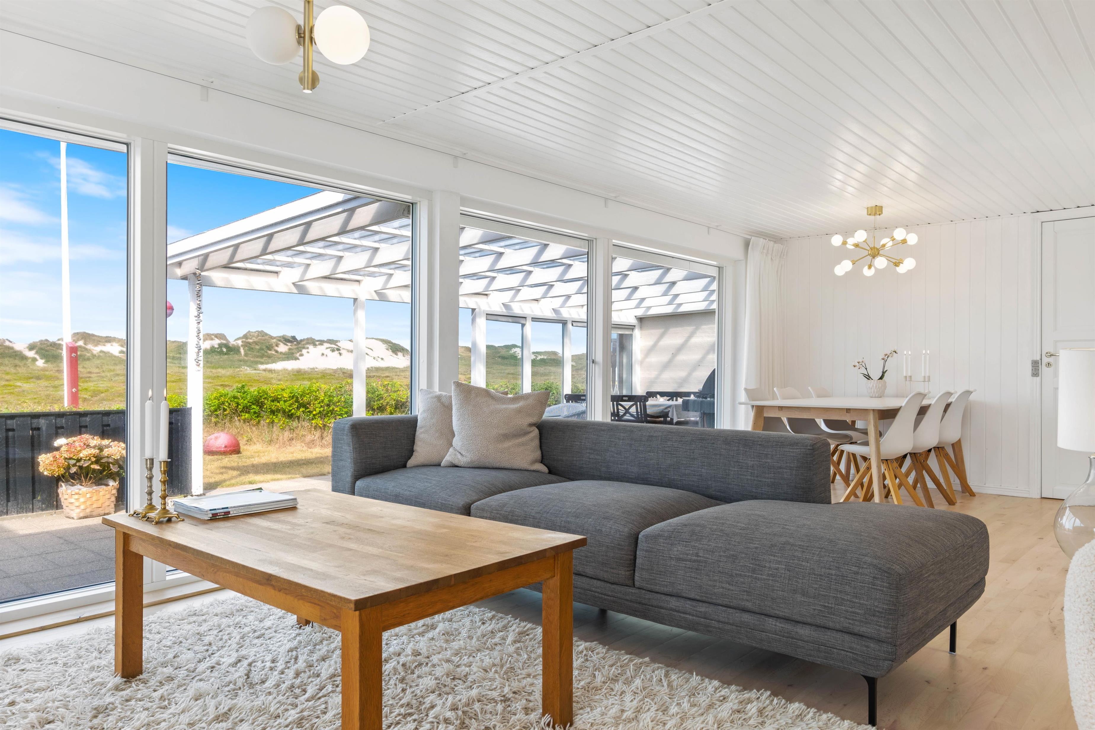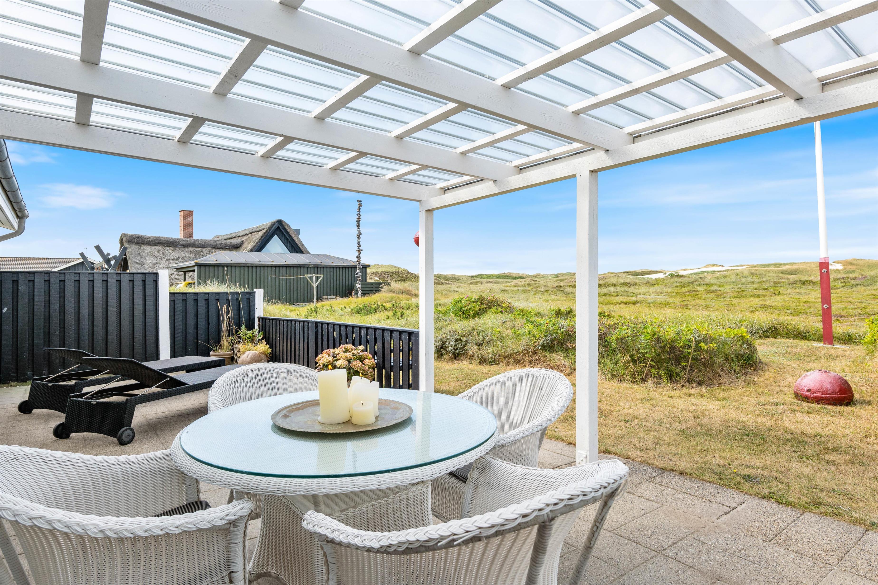 Et af højdepunkterne ved dette sommerhus er den overdækkede terrasse, hvor I kan nyde måltiderne ude i det fri eller bare slappe af med en god bog i hånden. Terrassen giver mulighed for at nyde den friske luft uanset vejret og I kan tilbringe kvalitetstid sammen udenfor. Slå jer ned i de behagelige havemøbler, og nyd den helt uforstyrrede udsigt udover de smukke klitter.