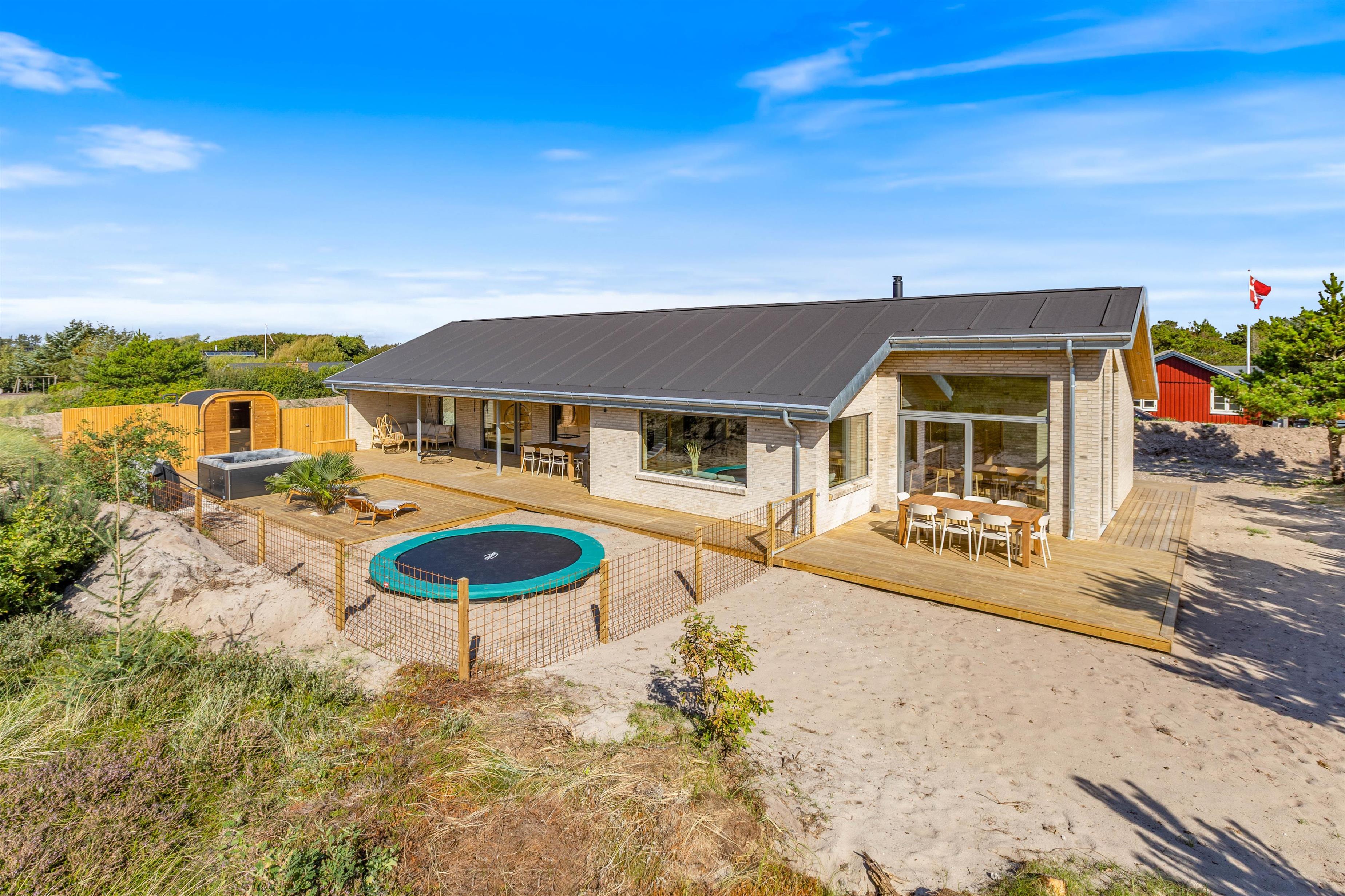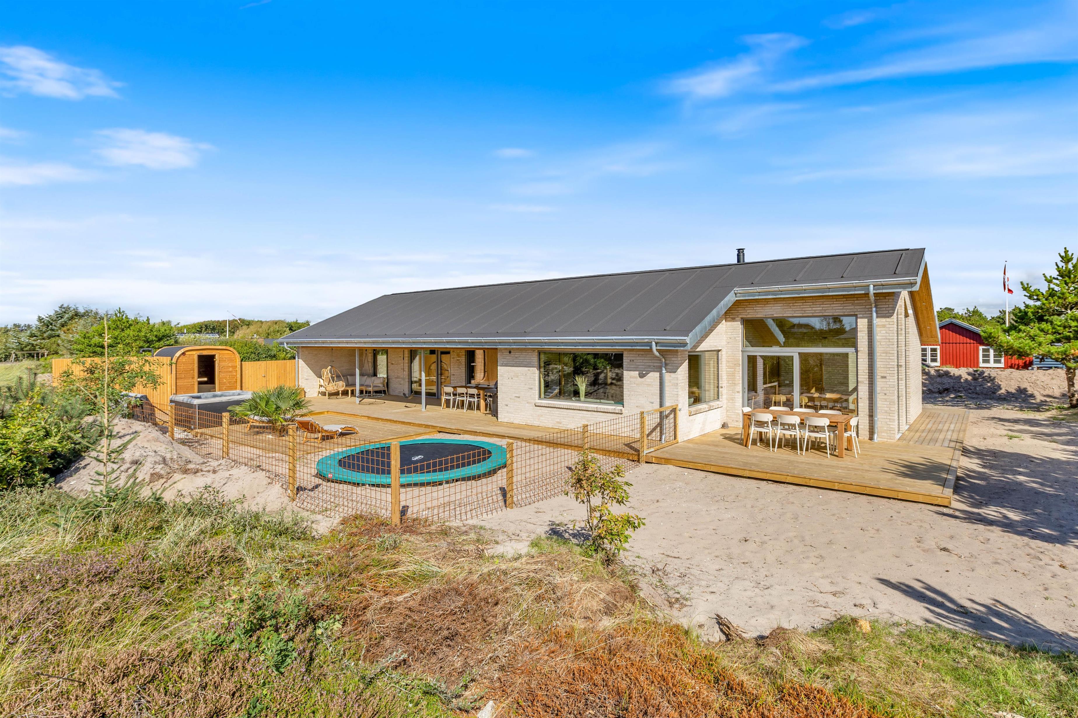 Er I på udkig efter et moderne og lækkert feriehus med pool og udespa? Så er det topmoderne feriehus på Hvidbjergvej 59 i Søndervig, et rigtig godt valg for jer. Her er alt hvad hjertet begærer, for at I kan holde en dejlige ferie sammen. Her er der plads til op til 10 glade feriegæster og jeres 2 hunde. Ankommer I, i el-bil, har i mulighed for at lade direkte ved feriehuset. I skal blot huske at medbringe jeres eget ladekabel.
