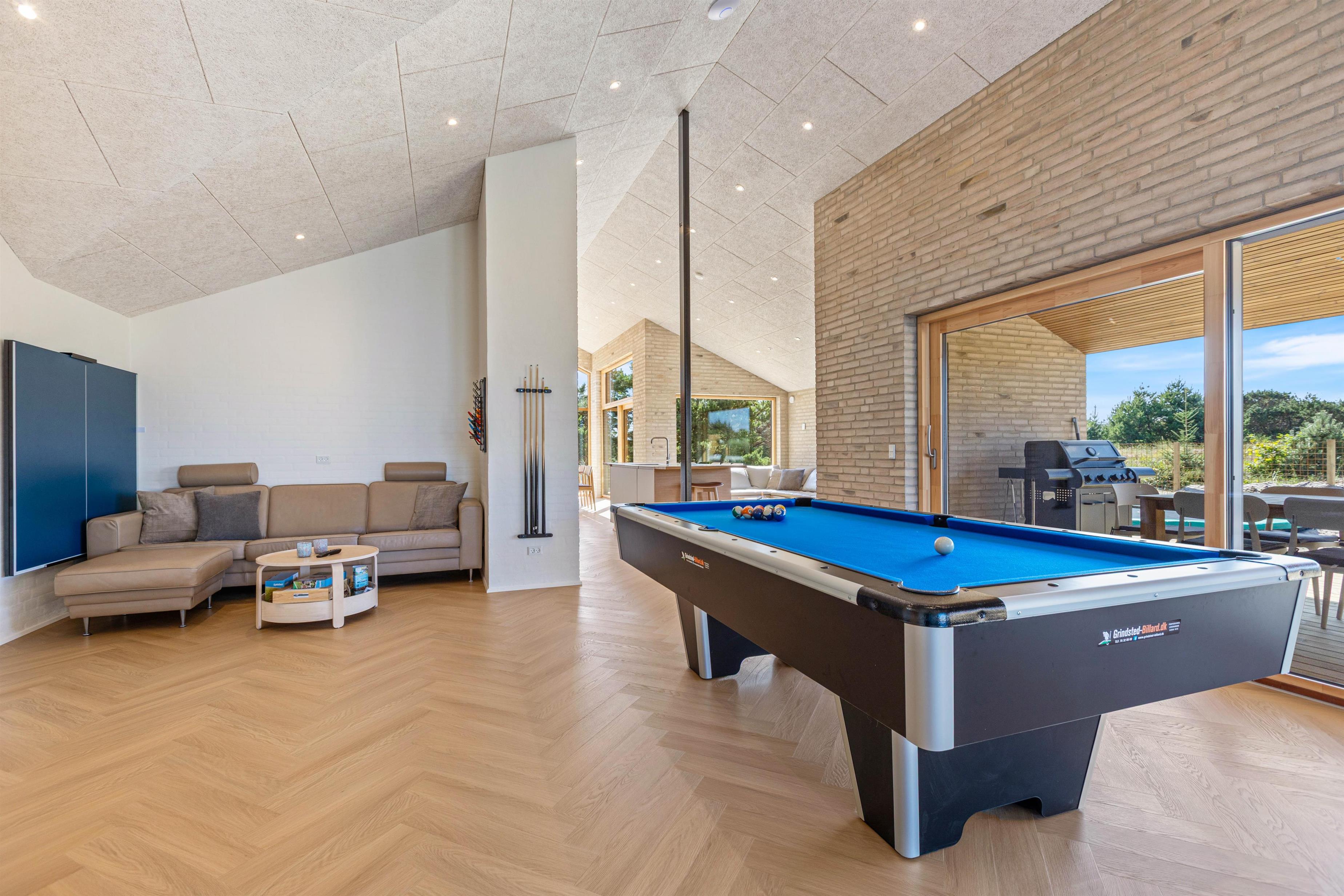 Er I mere til en omgang billard, er det også muligt, da aktivitetsrummet byder på et billardbord klar til mange timers spil og hygge. Bordet kan desuden udstyres med en plade, så det hurtigt kan forvandles til et bordtennisbord. På den måde er der rig mulighed for at udfordre hinanden og konkurrere i forskellige spil, uanset om I er til billard, bordtennis eller bare vil nyde hyggelige stunder sammen.