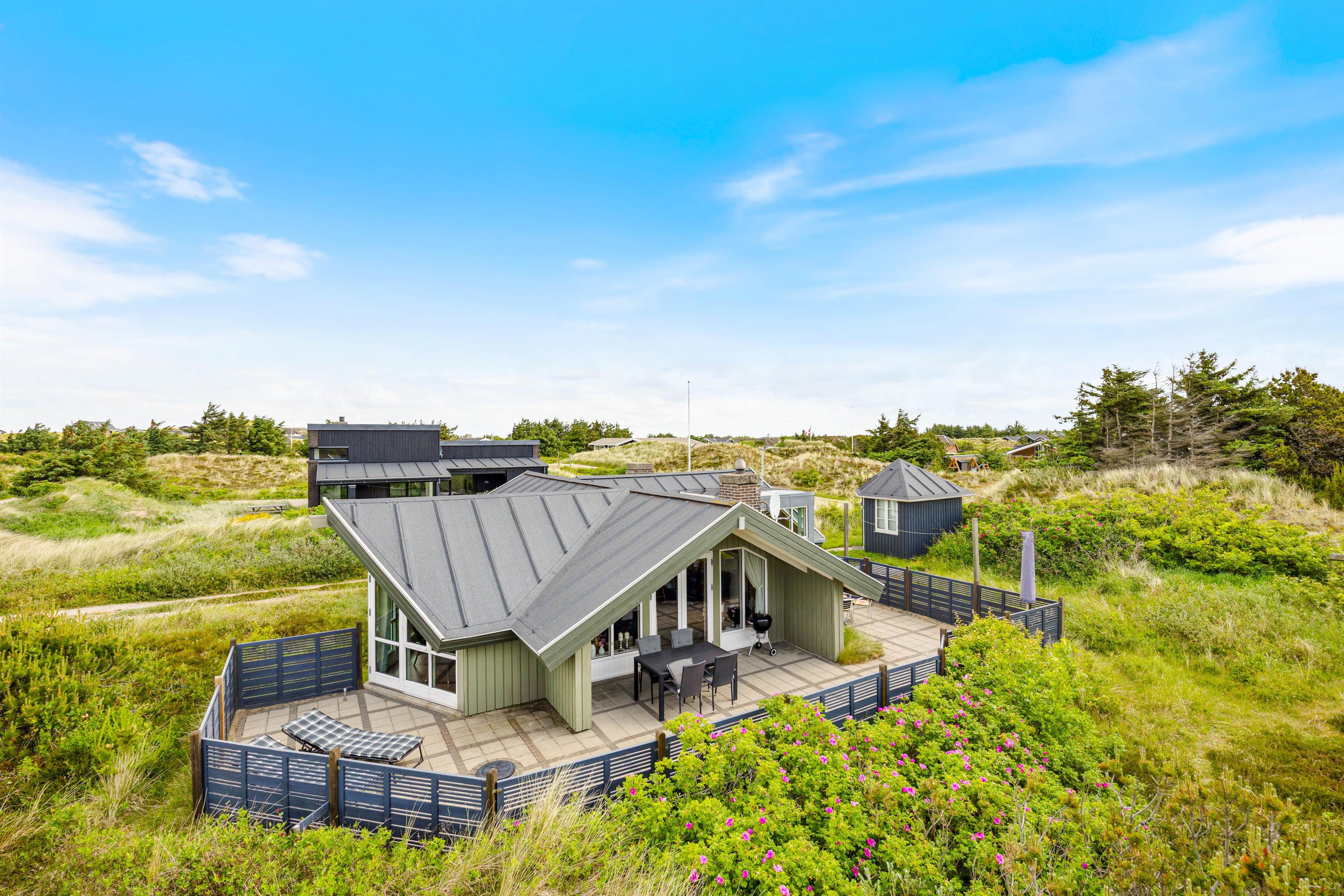Med kun 400 meter til Vesterhavet er det ingen sag, at tage turen til fods ned over klitten til den dejlige lange strand. Den brusende Vesterhav kan I altid besøge, omend det er I august for at tage en forfriskende dukkert i sommervarmen, eller om det er en lang gåtur på en efterårsdag langs den endeløse hvide sandstrand.