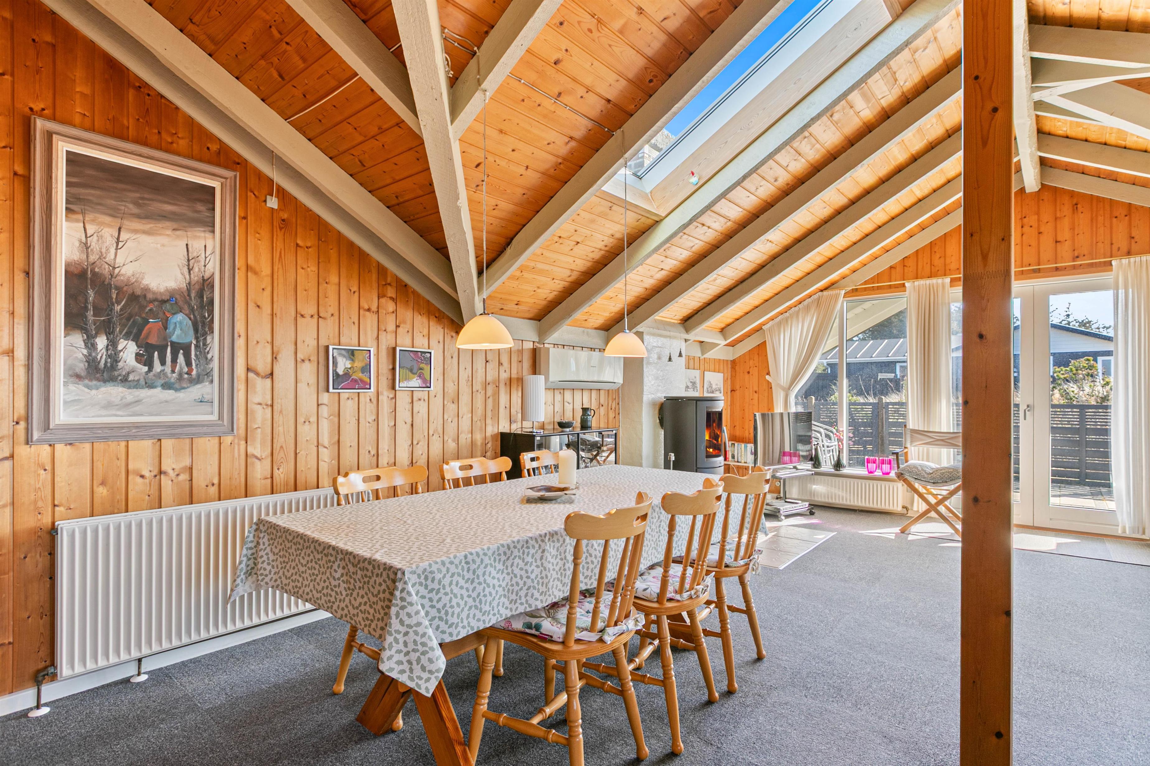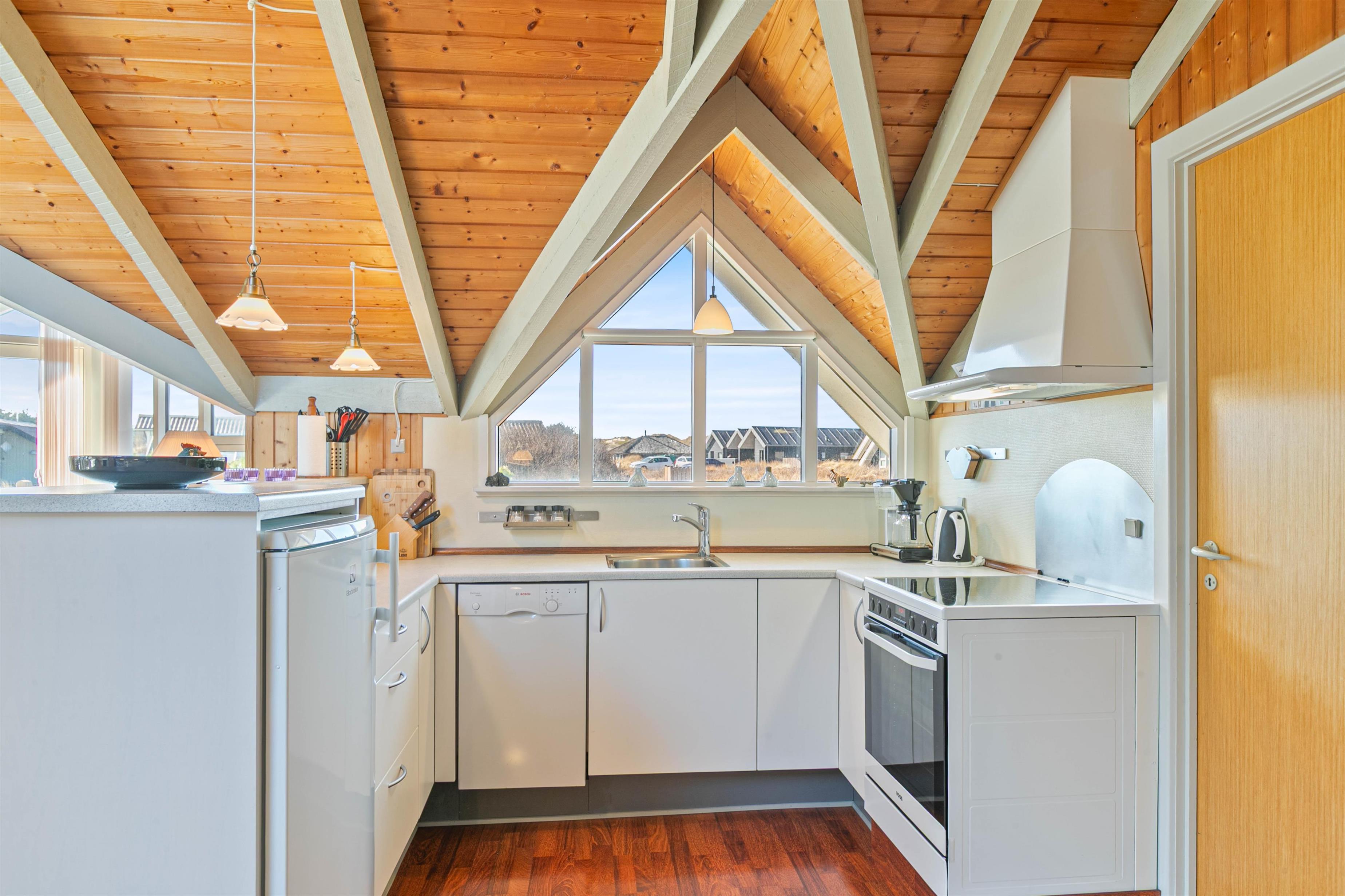Det dejlige velholdte hus på Nordsøvej 460 er velindrettet og har loft til kip og synlige bjælker. Huset har plads til 6 personer i 3 soveværelser, alle med gulvtæppe. Et af værelserne er med dobbeltseng og to værelser har 2 enkeltsenge. Der er et dejligt, nyere badeværelse med gulvvarme og bruseniche. I den hyggelige og rummelige stue er et stort glasparti, som giver en masse lys til rummet. Det fine køkken ligger i forbindelse med stue/alrum. Her finder I bl.a. fladskærms-TV, parabol, DVD-afspiller og en hyggelig brændeovn.
