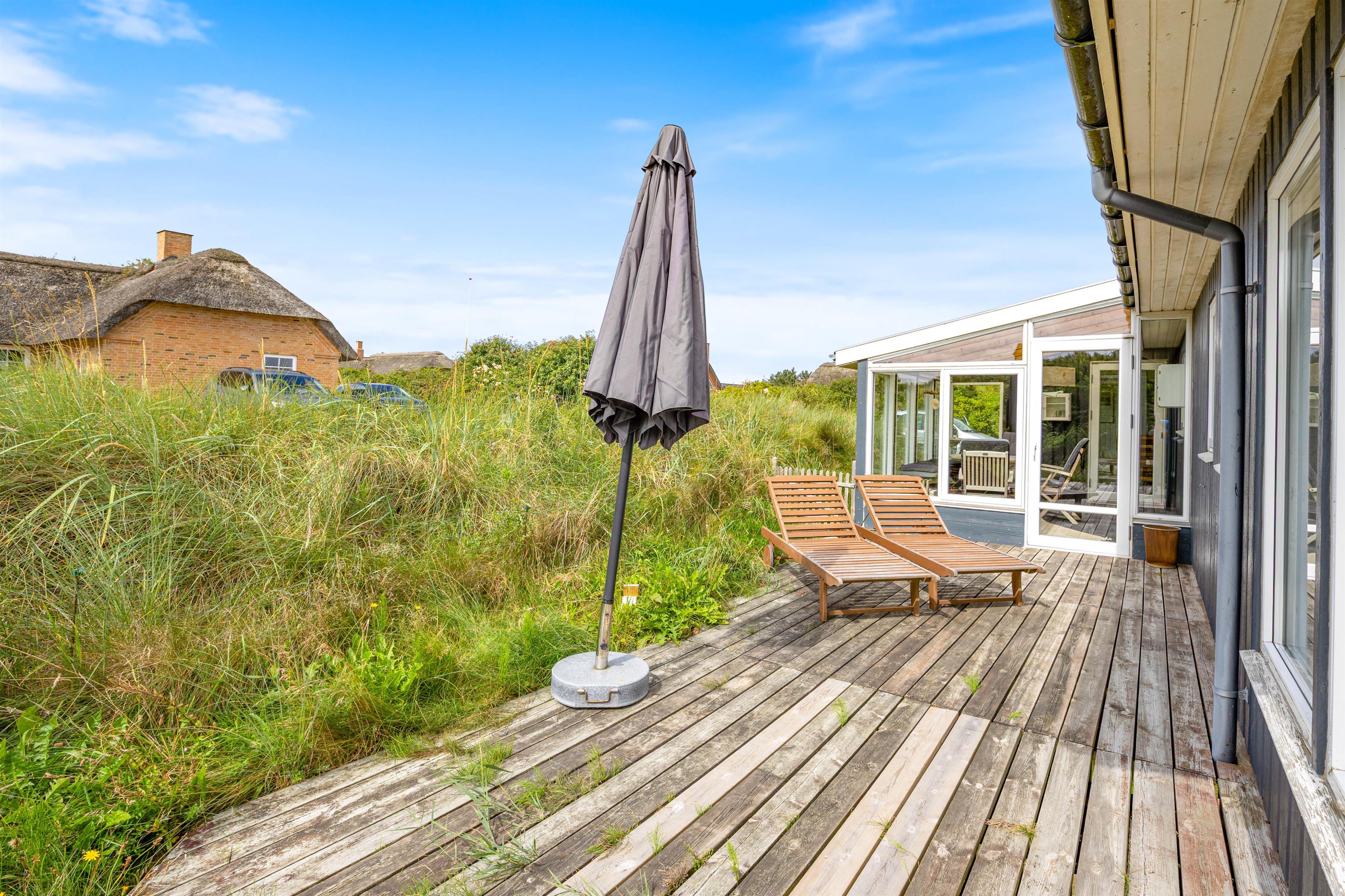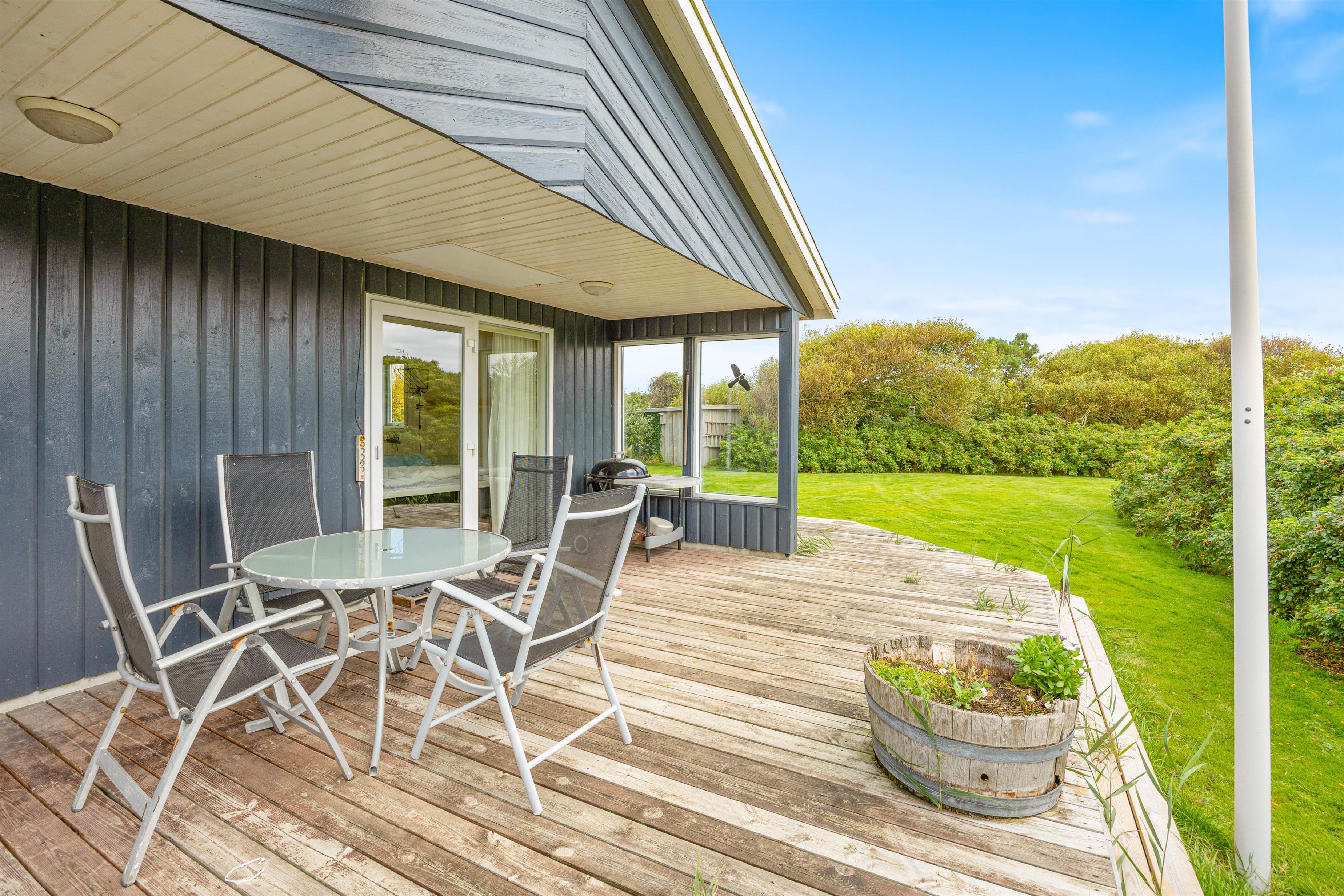 Feriehuset på Nordsøvej 113 ligger på en græsplæne. Denne er helt perfekt til børnefamilier da hele grunden også er indhegnet. På en varm sommerdag kan I derfor sætte jer godt til rette i havemøblerne, mens børnene leger. Når der tilberedes lækre måltider på grillen, kan I også nyde lyden af Vesterhavet, hvilket giver jer den helt rigtige feriefølelse.