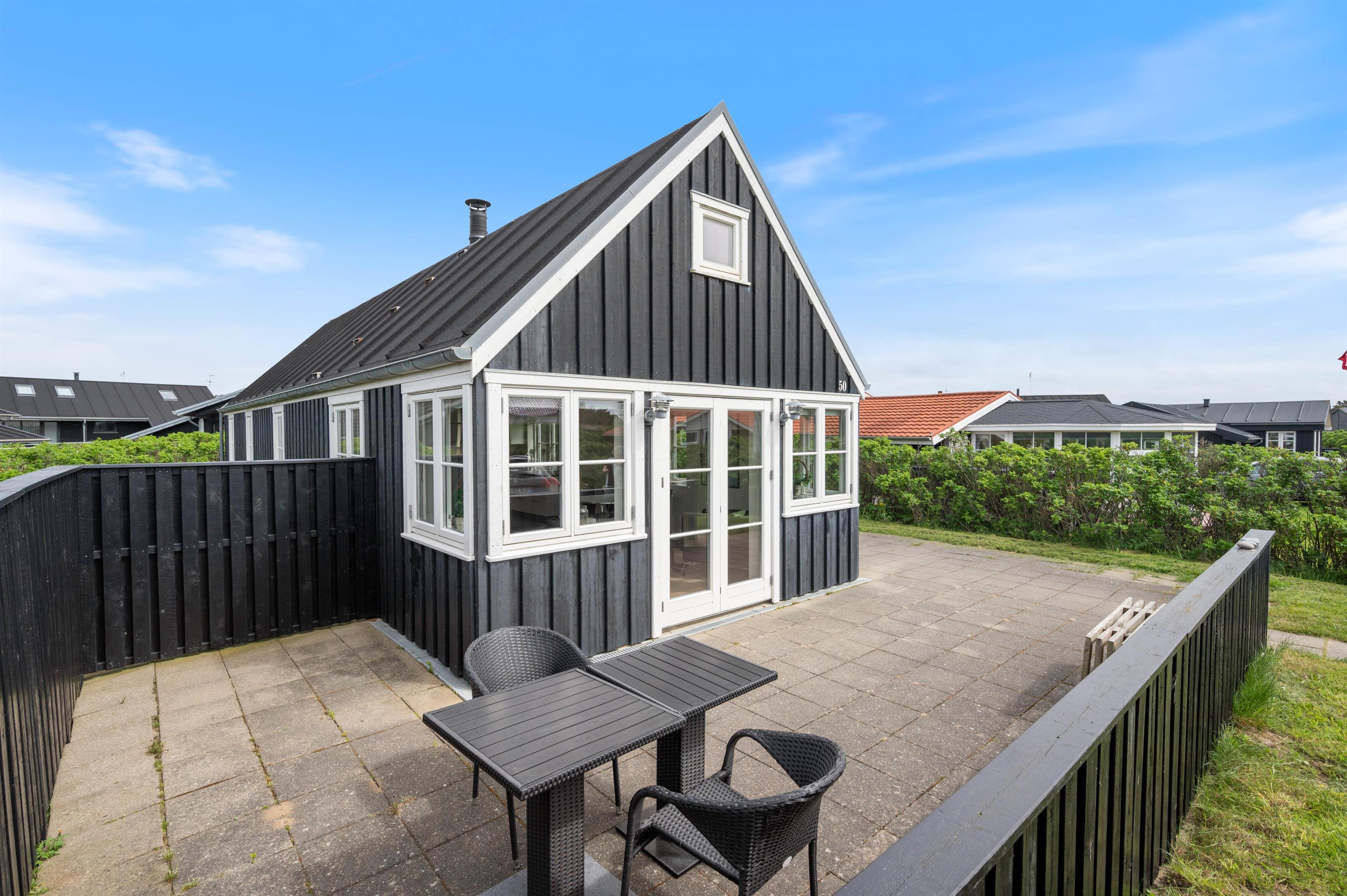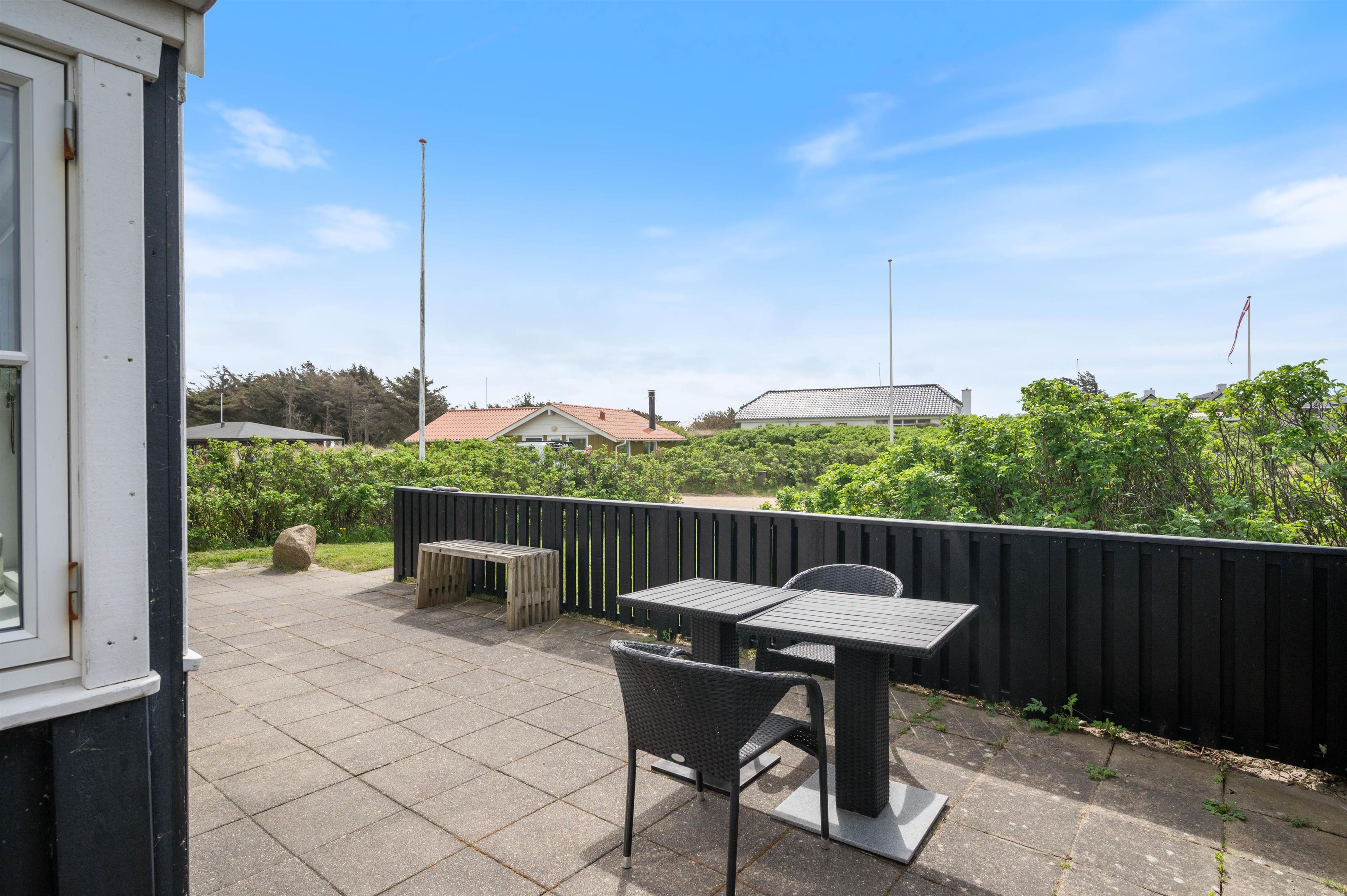 For de fleste er ferie lig med god mad og hygge. Den forventning kan I uden problemer indfri med et godt aftensmåltid tilberedt på sommerhusets grill. Desuden kan I nyde den vestjyske natur, selvom det er lidt blæsende, da terrassen er delvist afskærmet.