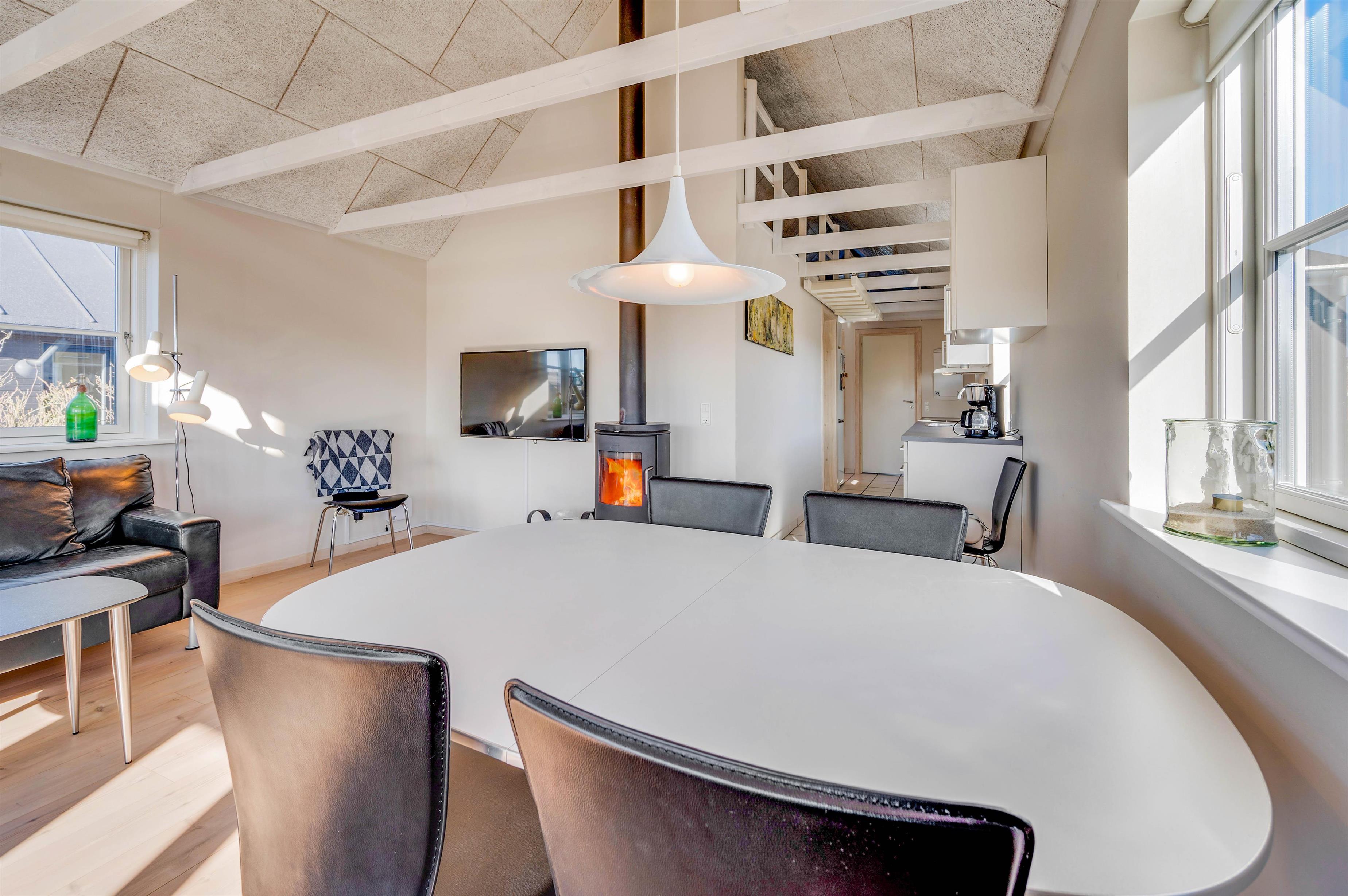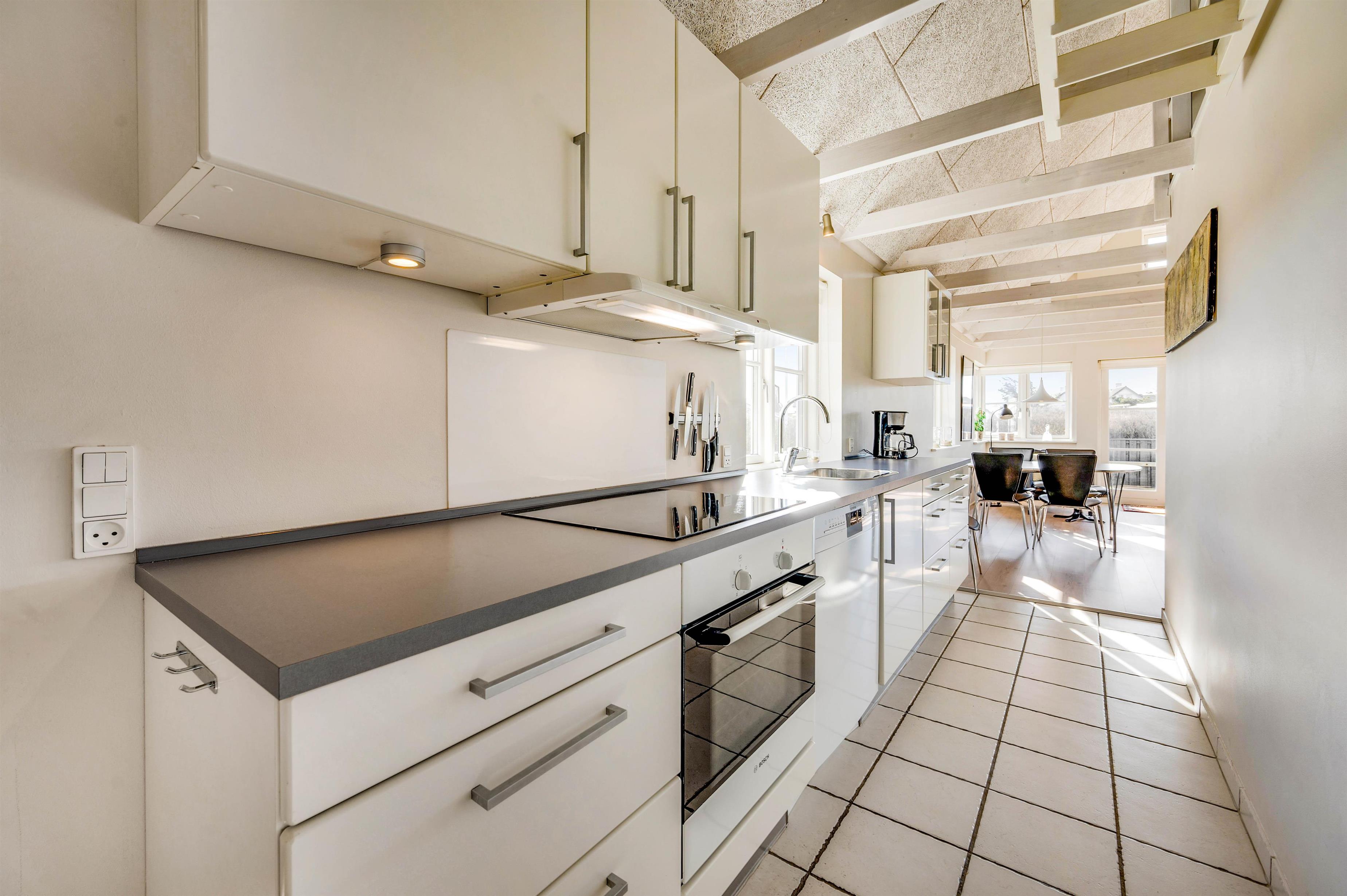 De fleste timer af jeres ferie kommer I utvivlsomt til at bruge i det store køkken-alrum, som er i forbindelse med stuen. Her vil I kunne slappe af til varmen fra brændeovnens flammer og blot læne jer tilbage og nyde det flotte rum med loft til kip og fritlagte bjælker.