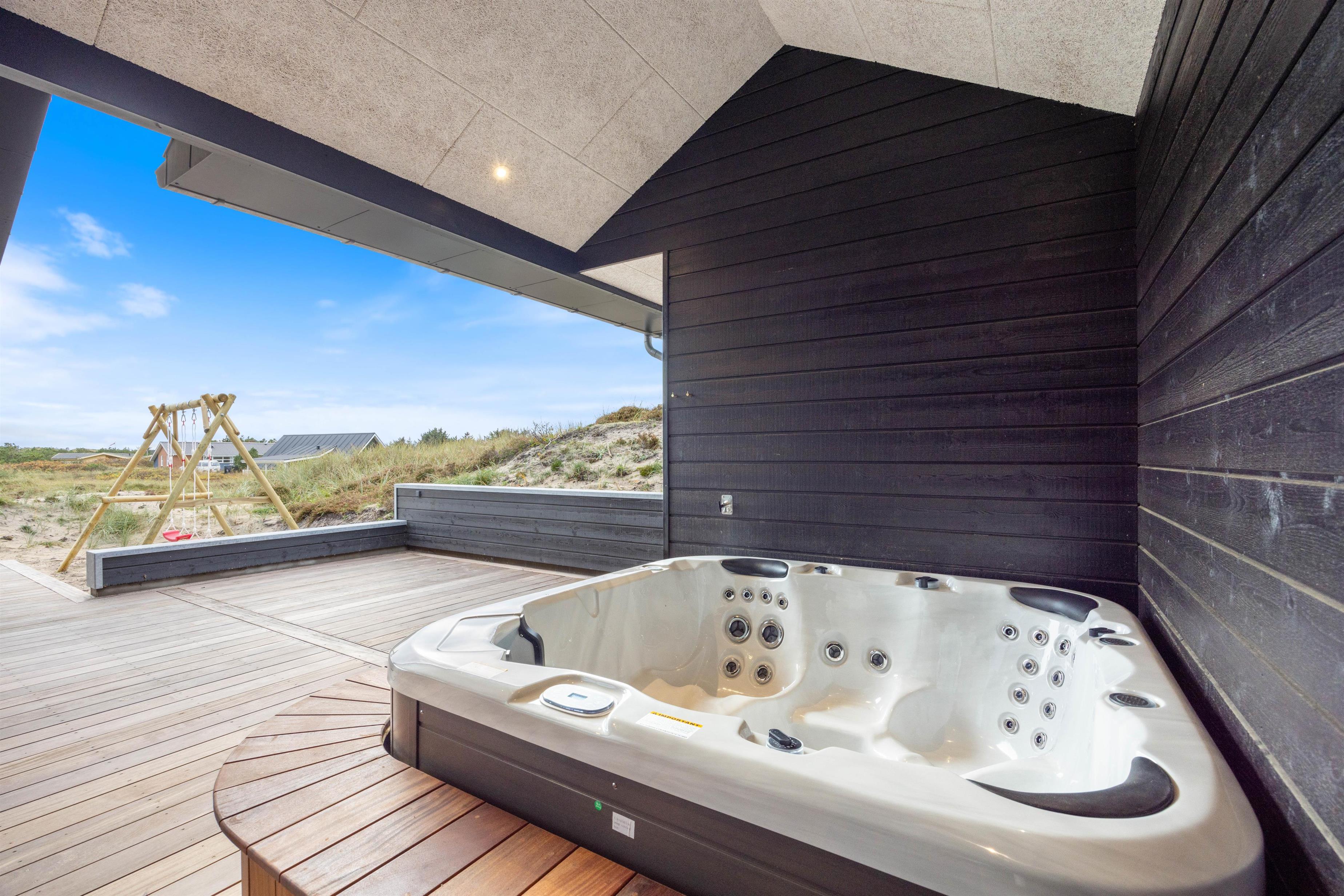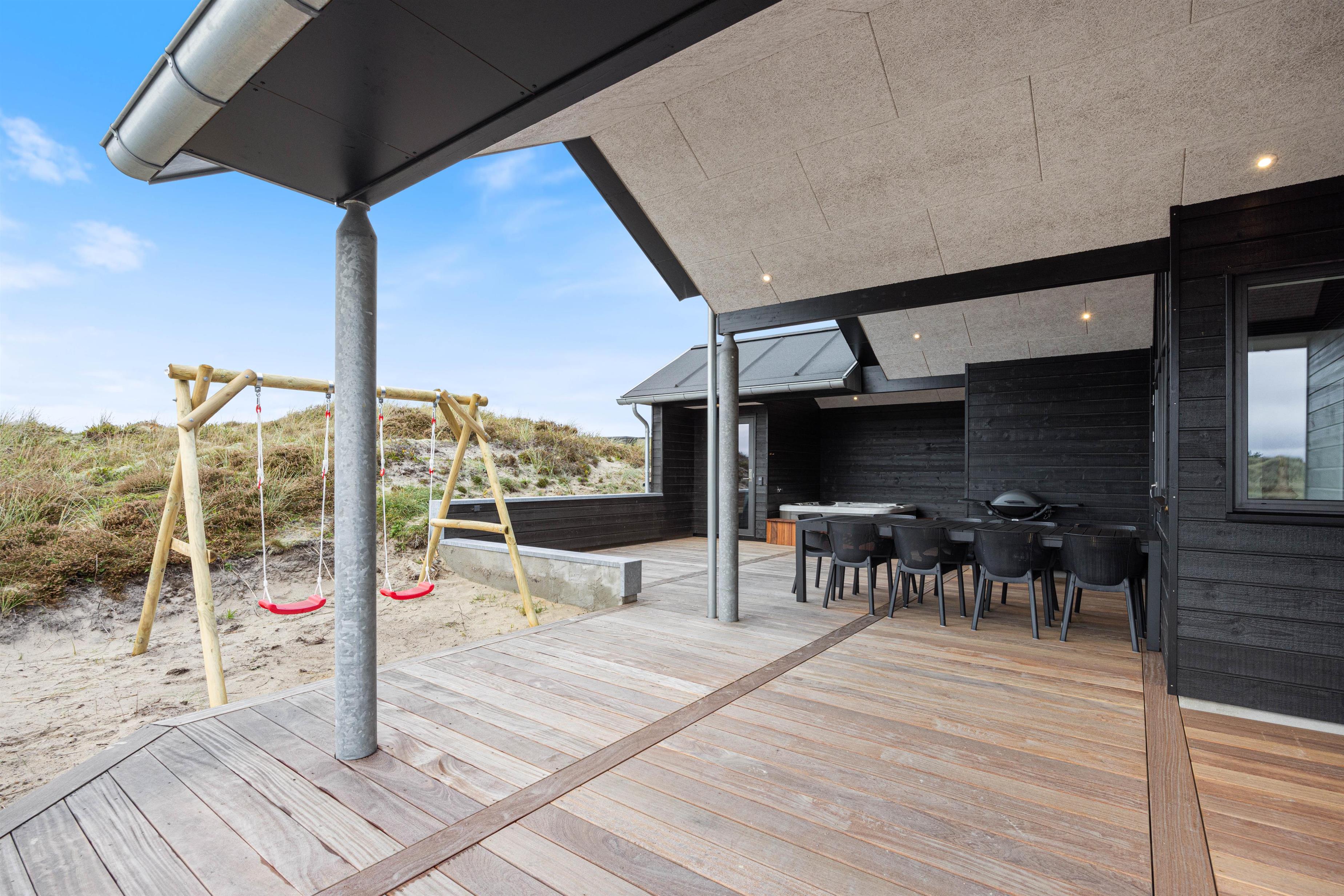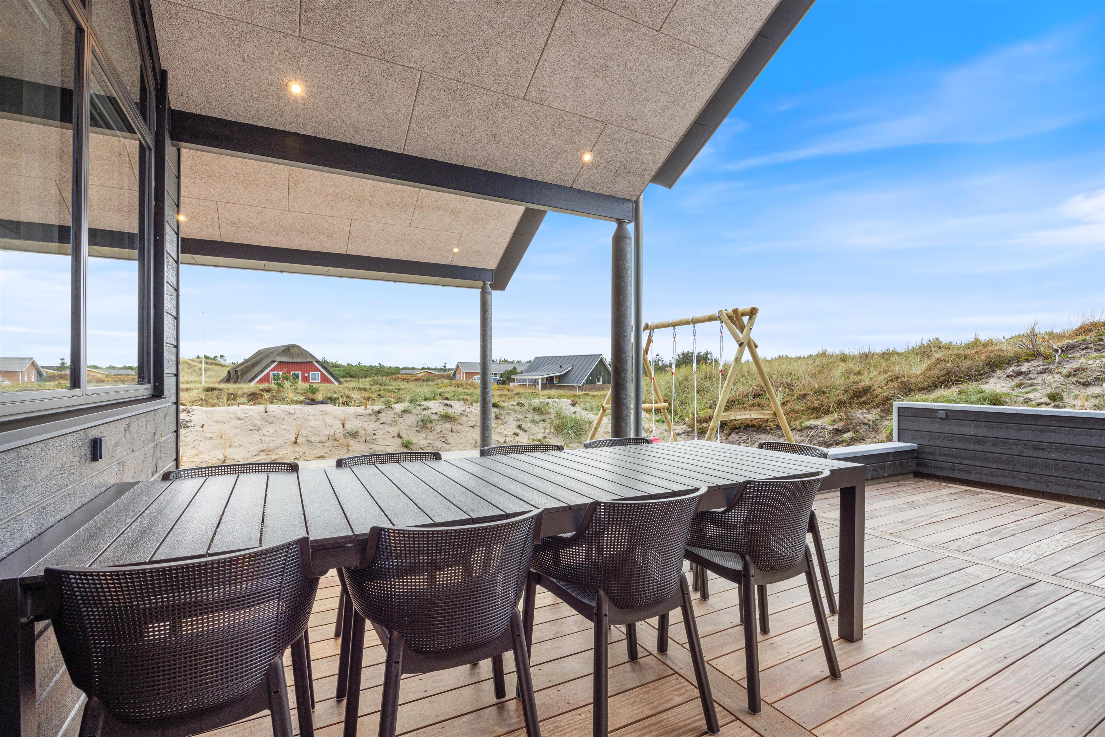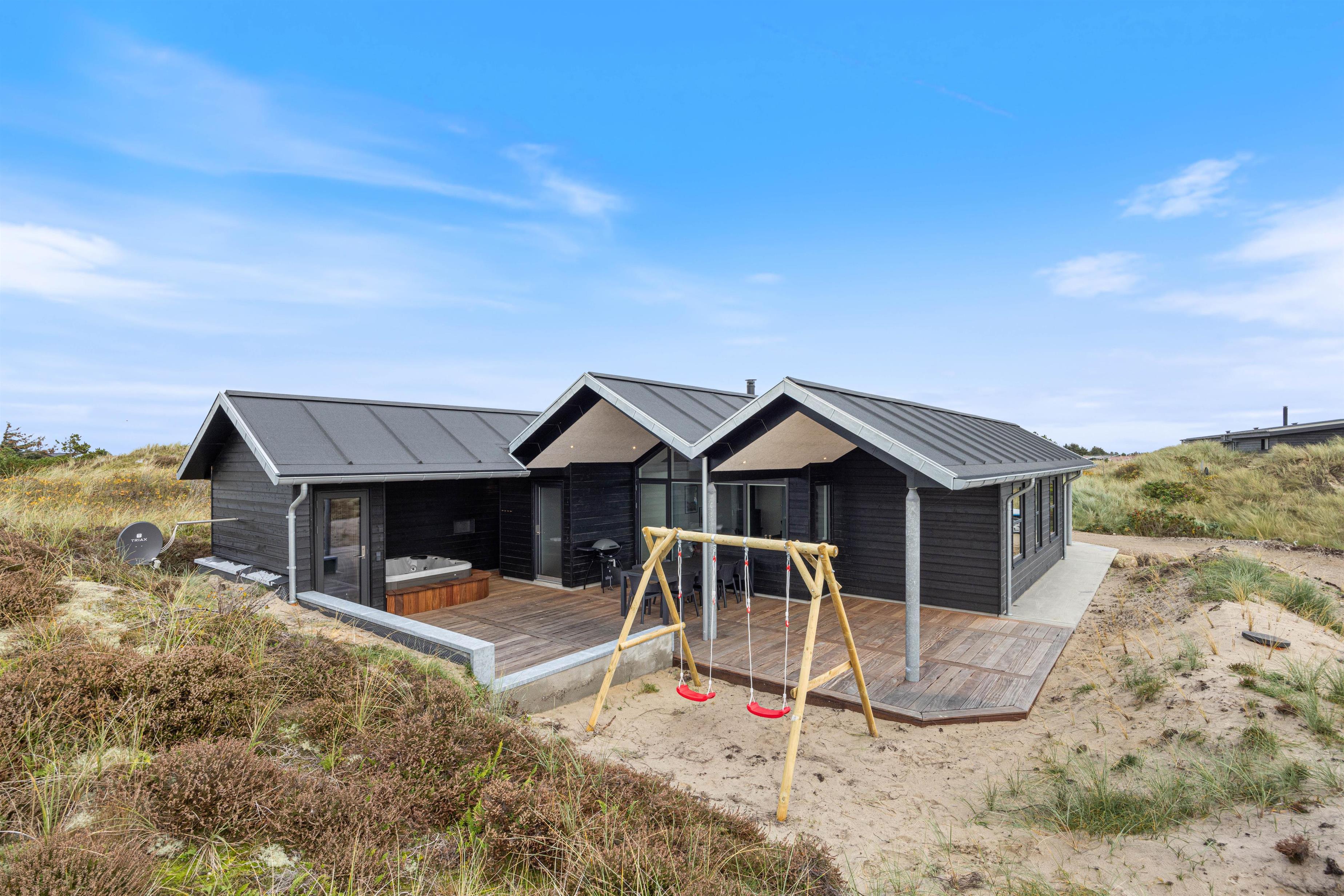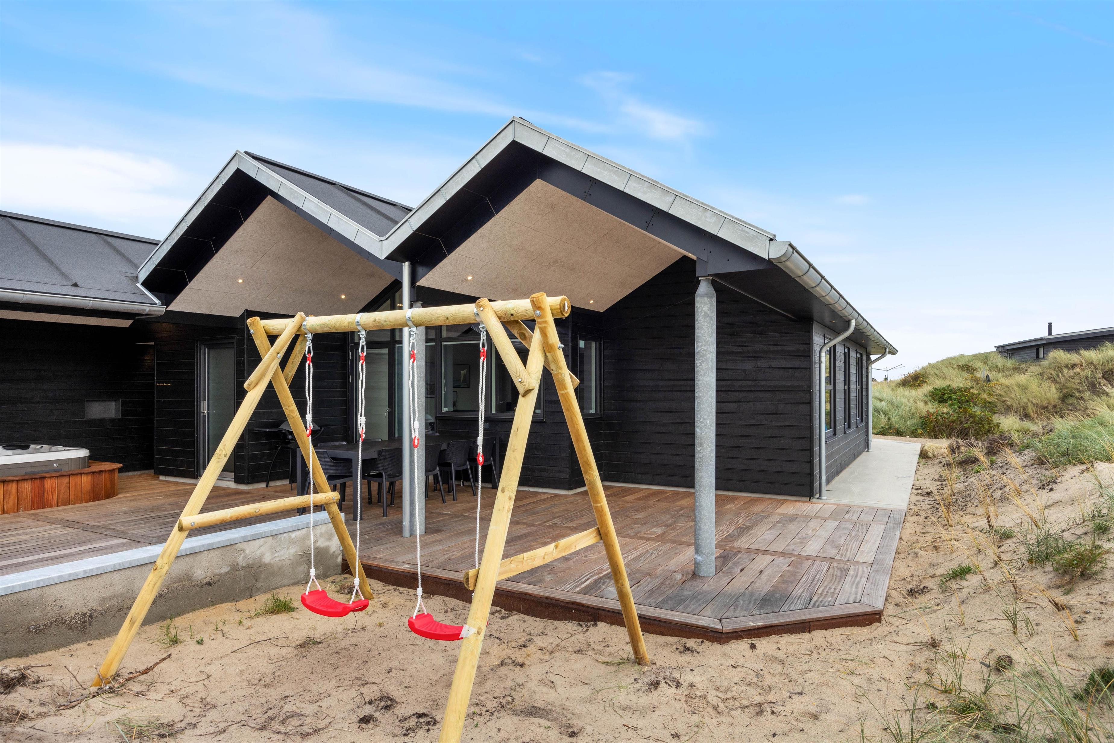 Feriehuset på Nordsøvej 279 i Søndervig ligger på en ca. 1500 m2 stor natur- og klitgrund. Feriehusets terrasseområde er delvist åbent, afskærmet og overdækket, så alle kan finde deres yndlingsplads i al slags vejr. Mens I hygger jer på terrassen, kan børnene gå på opdagelse på grunden eller boltre sig på gyngen. Der er også en sandkasse til rådighed for dine børn. Udendørssaunaen og det udendørs boblebad på terrassen giver også anledning til en ekstra dosis afslapning.