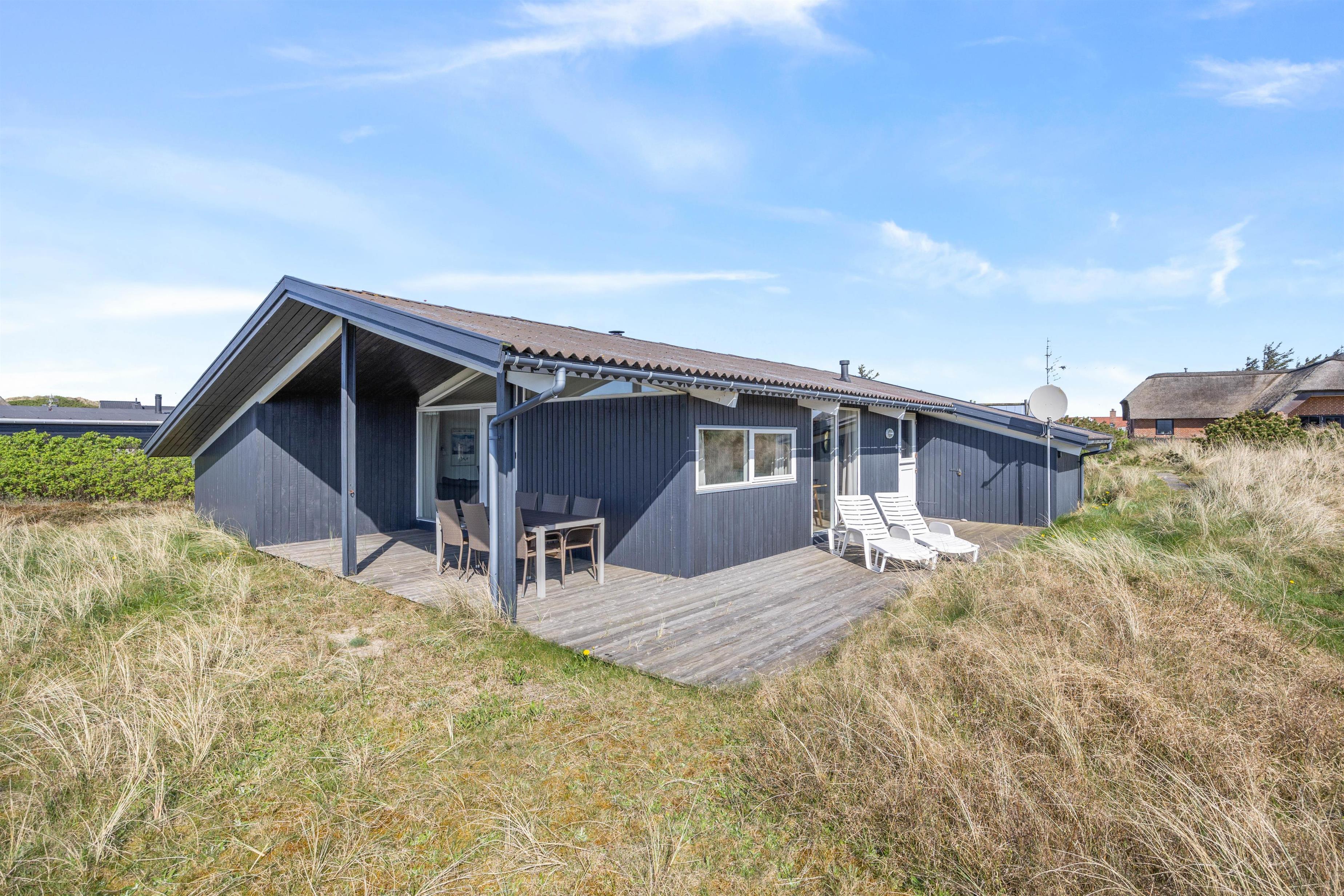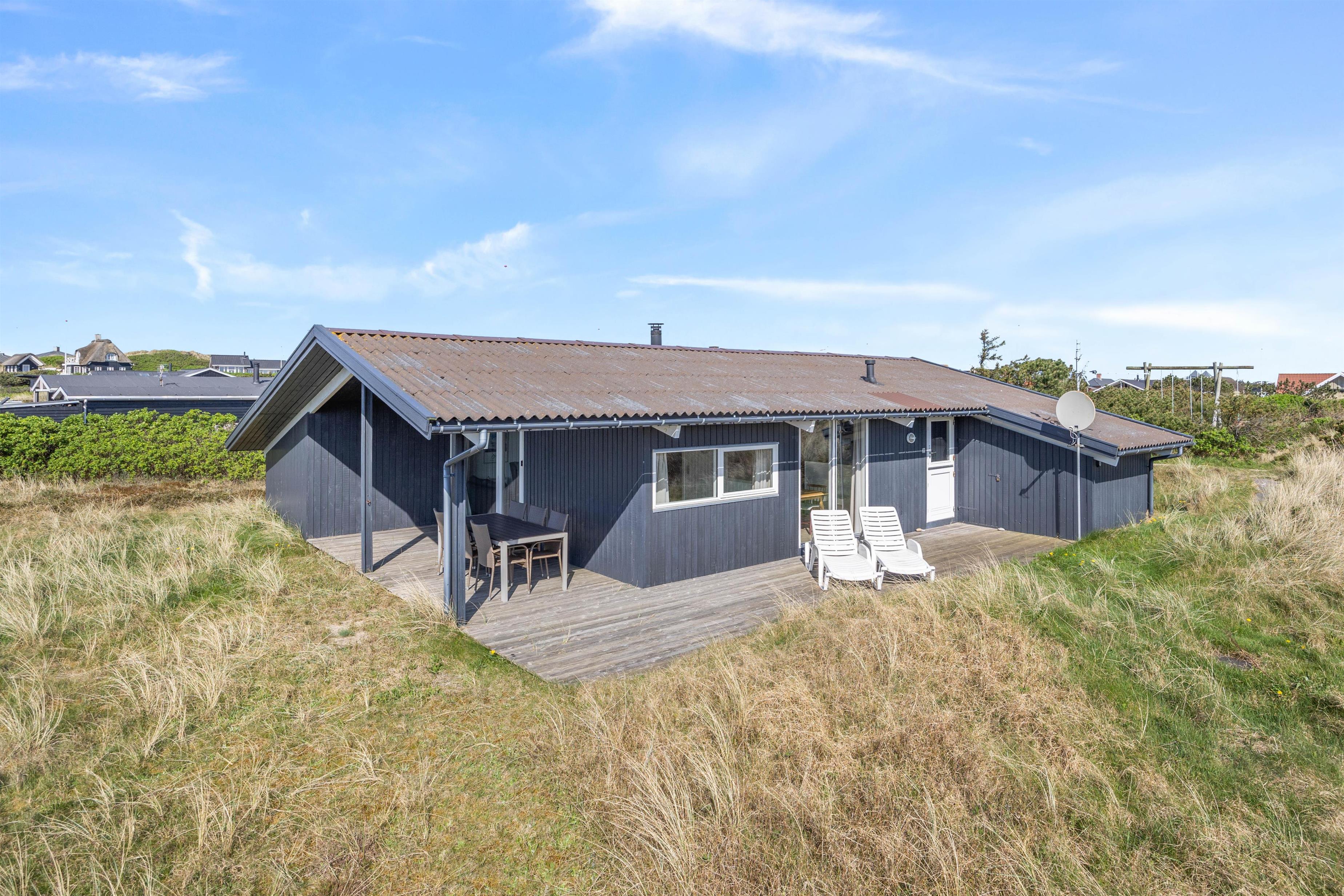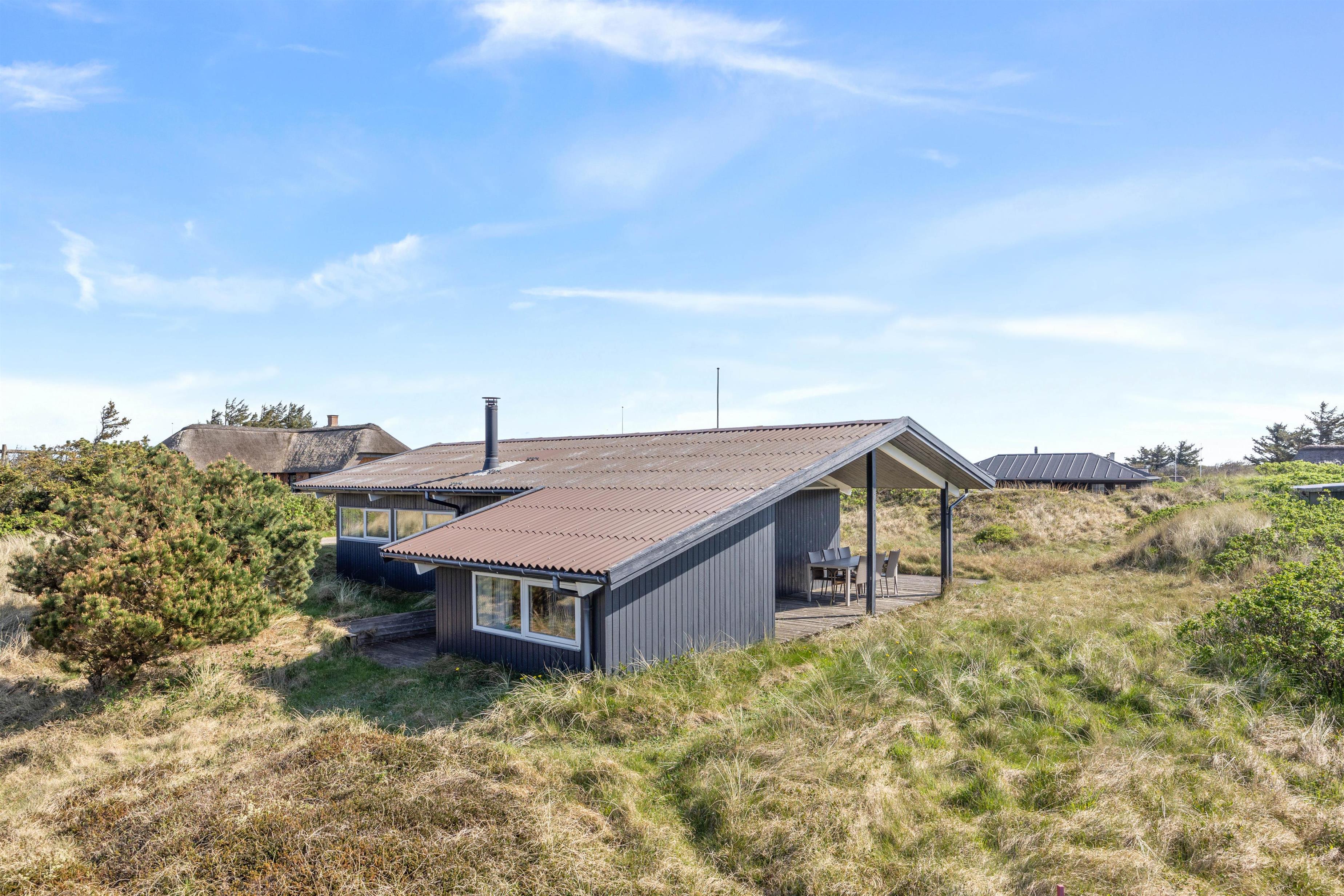 Sommerhuset ligger på en skøn naturgrund bare 300 meter fra det brusende og kraftfulde Vesterhav. En sti fra sommerhuset fører jer direkte ned til klitterne og den brede sandstrand med Vesterhavet i baggrunden. Den brede sandstrand inviterer til mange timers leg, hygge, lange gåture og samvær uanset vejret. I kan desuden nyde de smukke og betagende solnedgange over vandet.