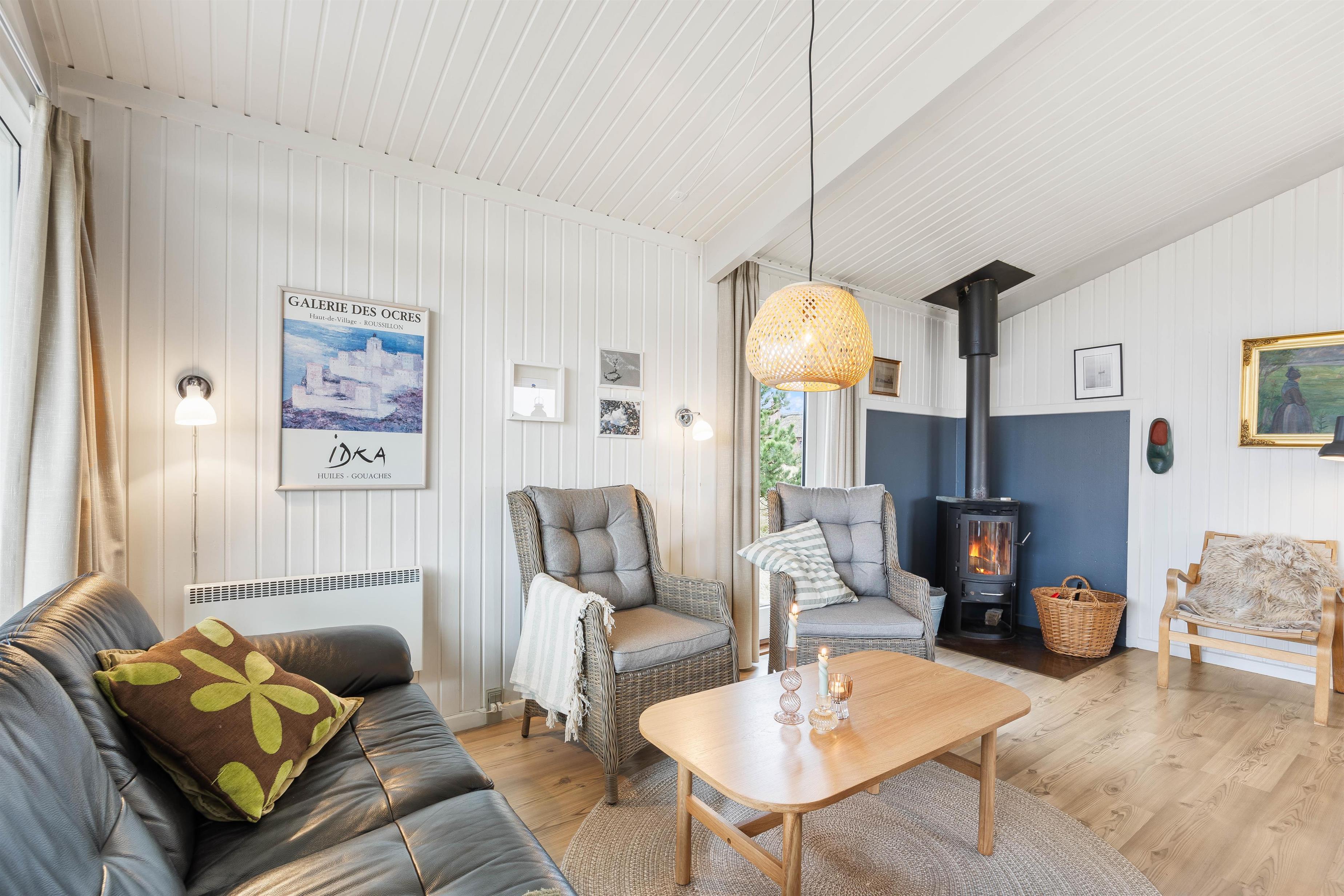 Når du træder ind af døren til dette autentiske feriehus, vil du blive mødt af den ægte sommerhusstemning, der er i feriehuset. Sommerhuset i Søndervig på Nordsøvej 98 er indrettet i en personlig og hjemlig stil, hvor der er plads til afslapning. Imens nogen står for tilberedning af aftensmåltidet, kan andre samles omkring planlægning af resten af ugens aktiviteter eller tage et spil sammen. Derudover har I også mulighed for at slænge jer på sofaen med varmen og de knitrende lyde fra brændeovnen i baggrunden.