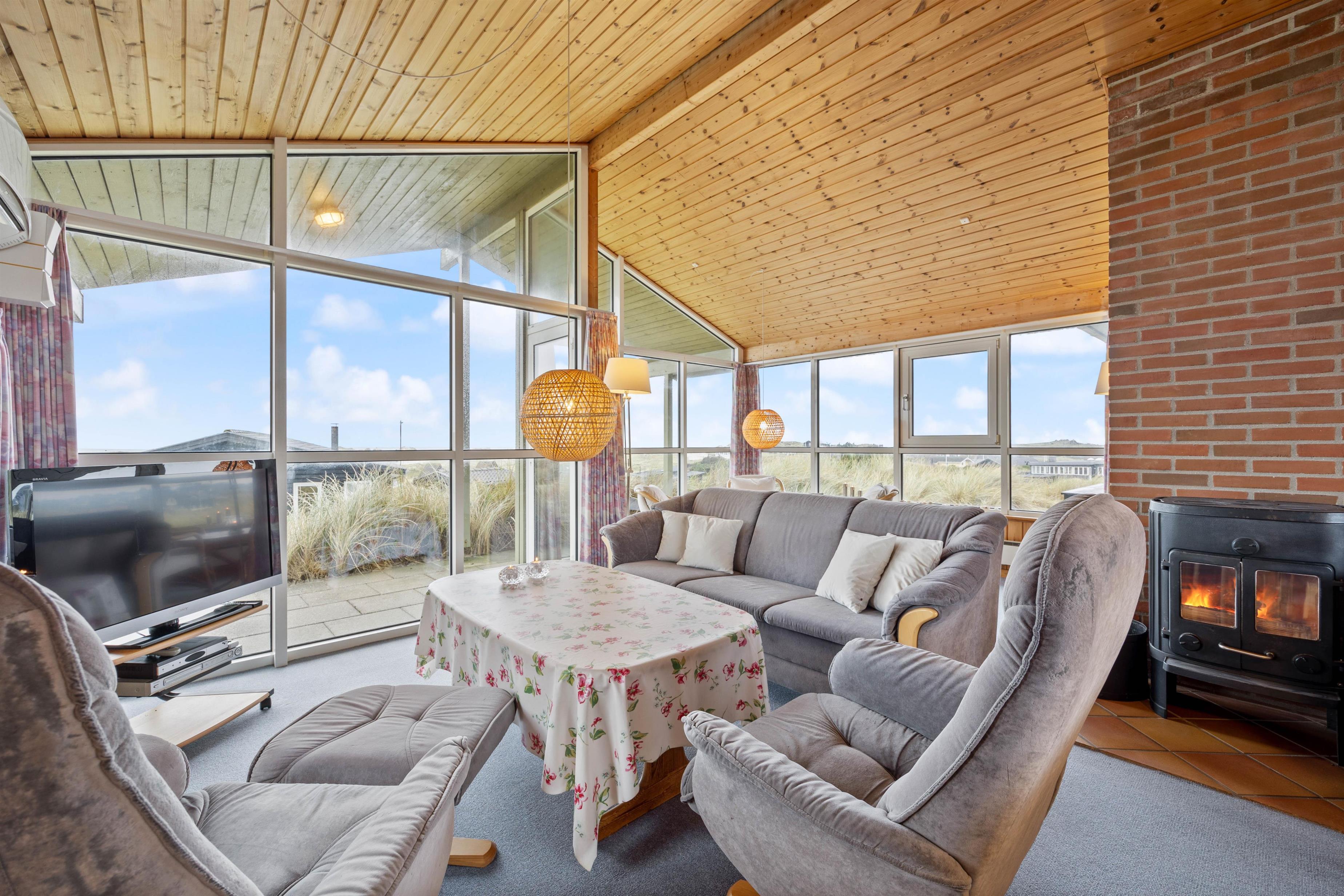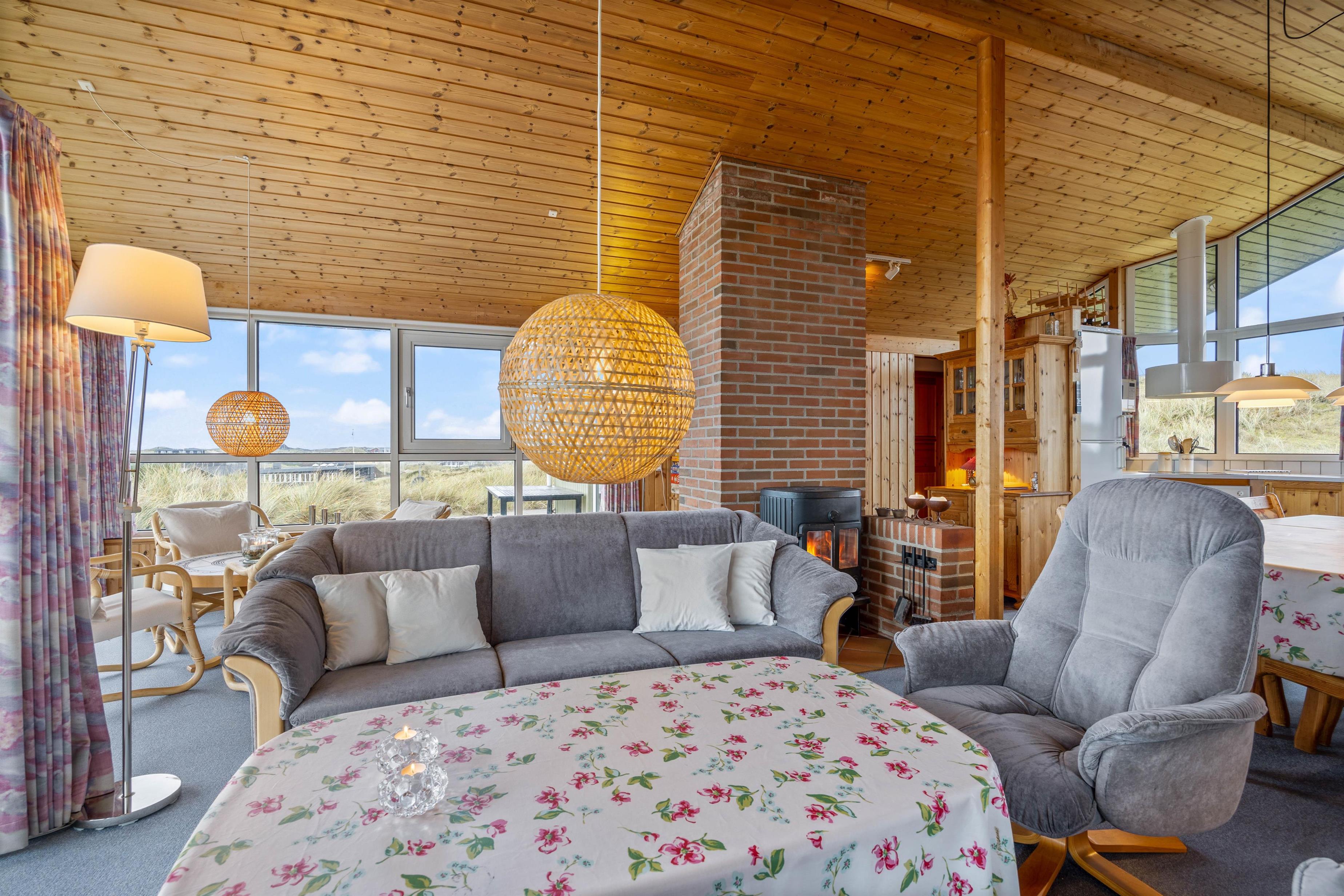 Efter en god, lang gåtur på den brede sandstrand, kan I slænge jer i de bløde møbler og nyde de knitrende lyde fra brændeovnen. Som supplement til brændeovnen, er feriehuset også udstyret med en varmepumpe, der sørger for både et behageligt indeklima og temperatur. I sommerhuset har I desuden mulighed for at se DR og TV2 på sommerhusets fladskærms-tv.