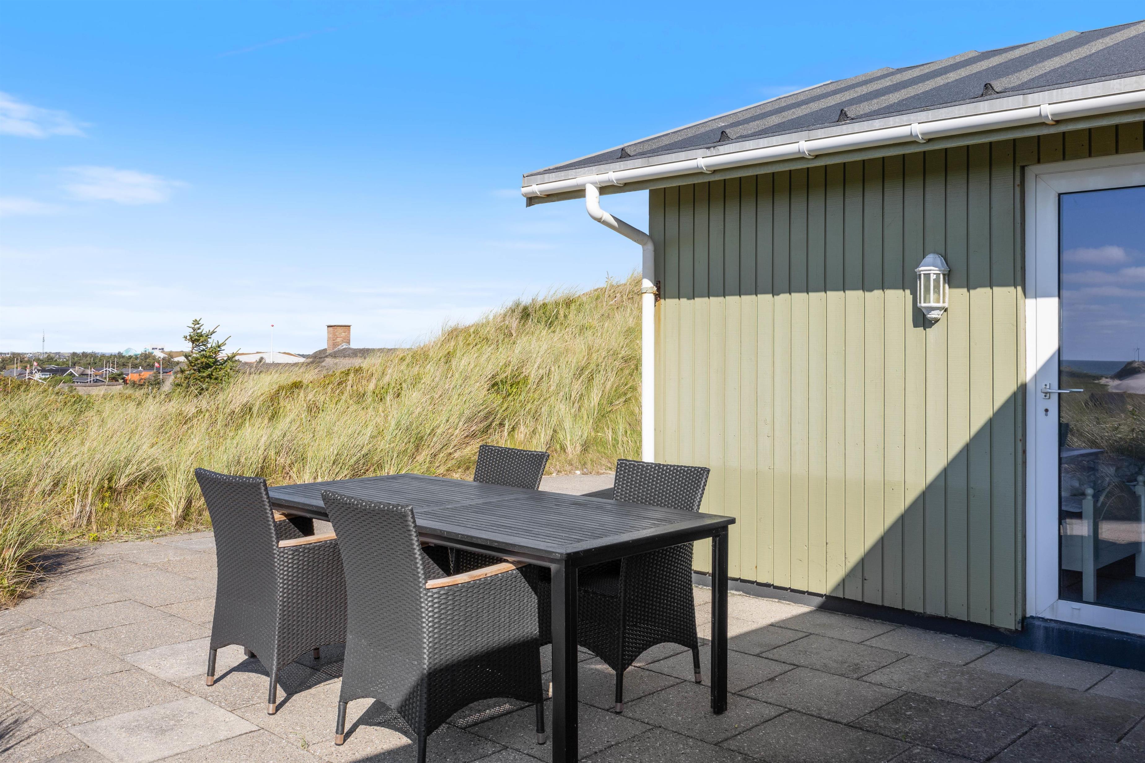 Rundt om feriehuset på Nordsøvej 208 finder I flere hyggekroge. Blandt andet finder I ved hjælp af en lille sti frem til en bænk, der er placeret lidt højere end sommerhuset, hvorfra I virkelig får en fantastisk udsigt for alle pengene. Her kan I sammen på de lune sommeraftener sidde og nyde et koldt glas at drikke, imens I oplever de betagende solnedgange over Vesterhavet.