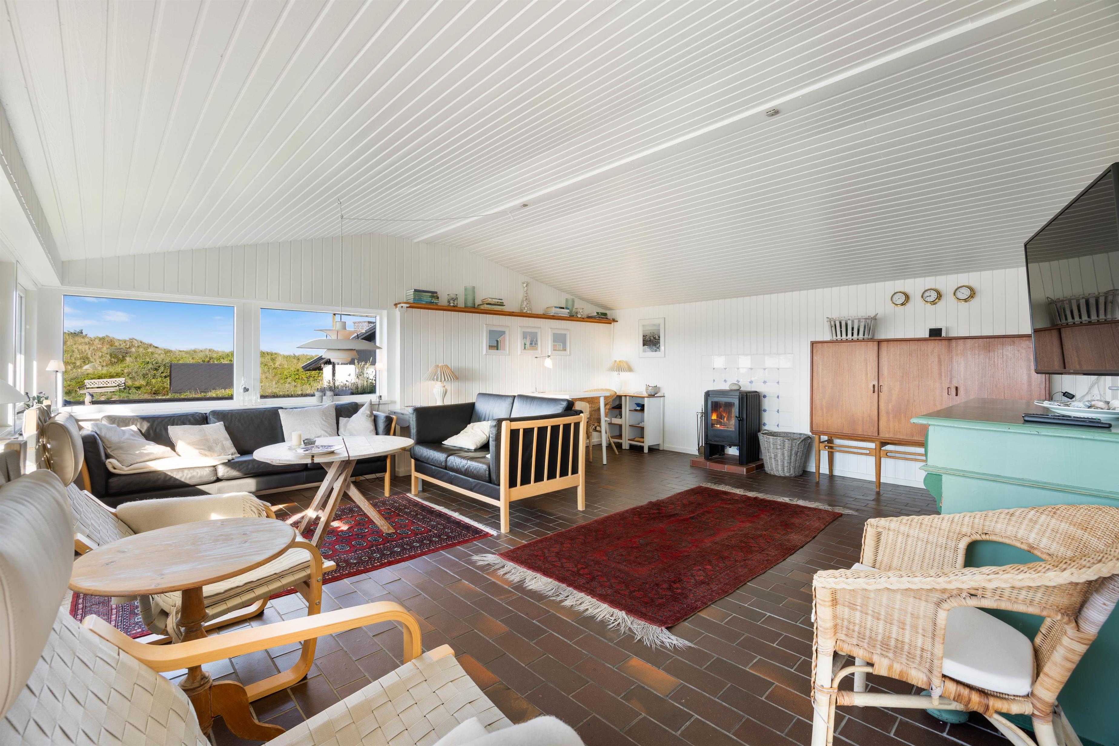 Efter en dejlig feriedag kan I sætte jer godt til rette i stuen, hvor I kan nyde varmen og den knitrende lyd fra brændeovnen. I kan med fordel nyde aftenen med en god film, som I kan streame direkte fra jeres telefon til chromecasten i fjernsynet.