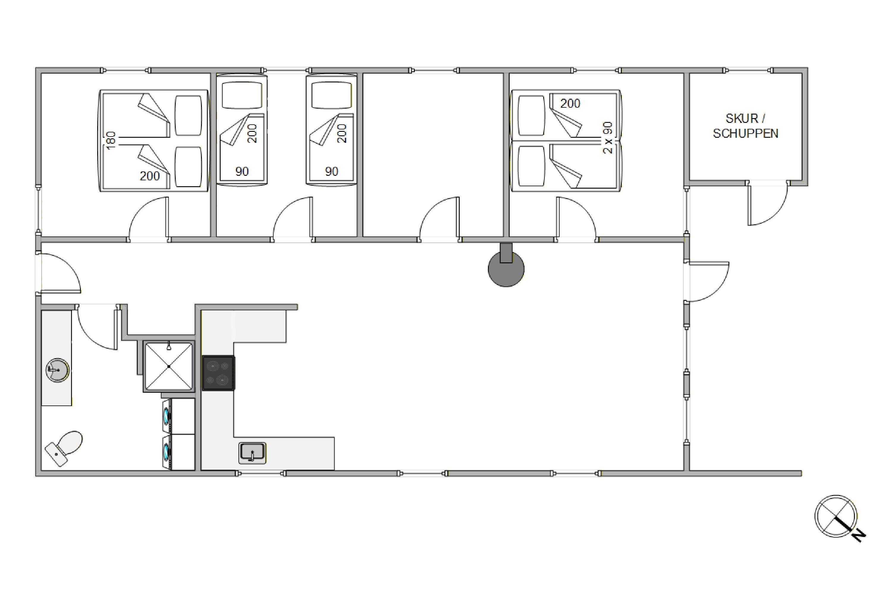 Takket være den integrerede og energivenlige luft-til-luft varmepumpe i køkkenalrummet, kan I nyde en behagelig stuetemperatur året rundt, mens I slapper af efter dagens aktiviteter. I sommerhuset kan I nemt slappe af og tanke ny energi i en af de 3 soveværelser. En af værelserne er et rigtig hygge-værelse, hvor I finder sovesofa, fjernsyn og en Playstation 4, som I frit kan benytte.