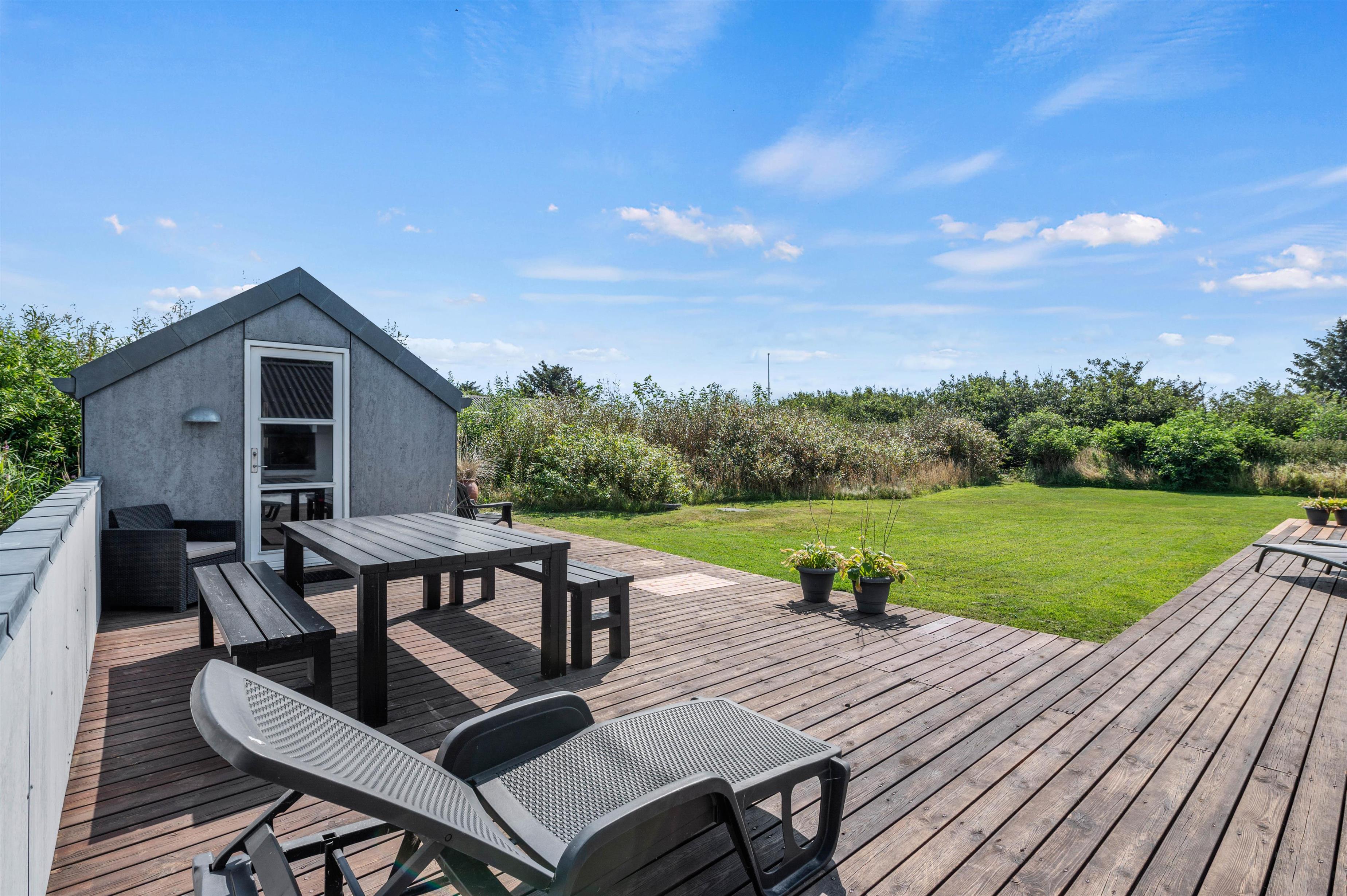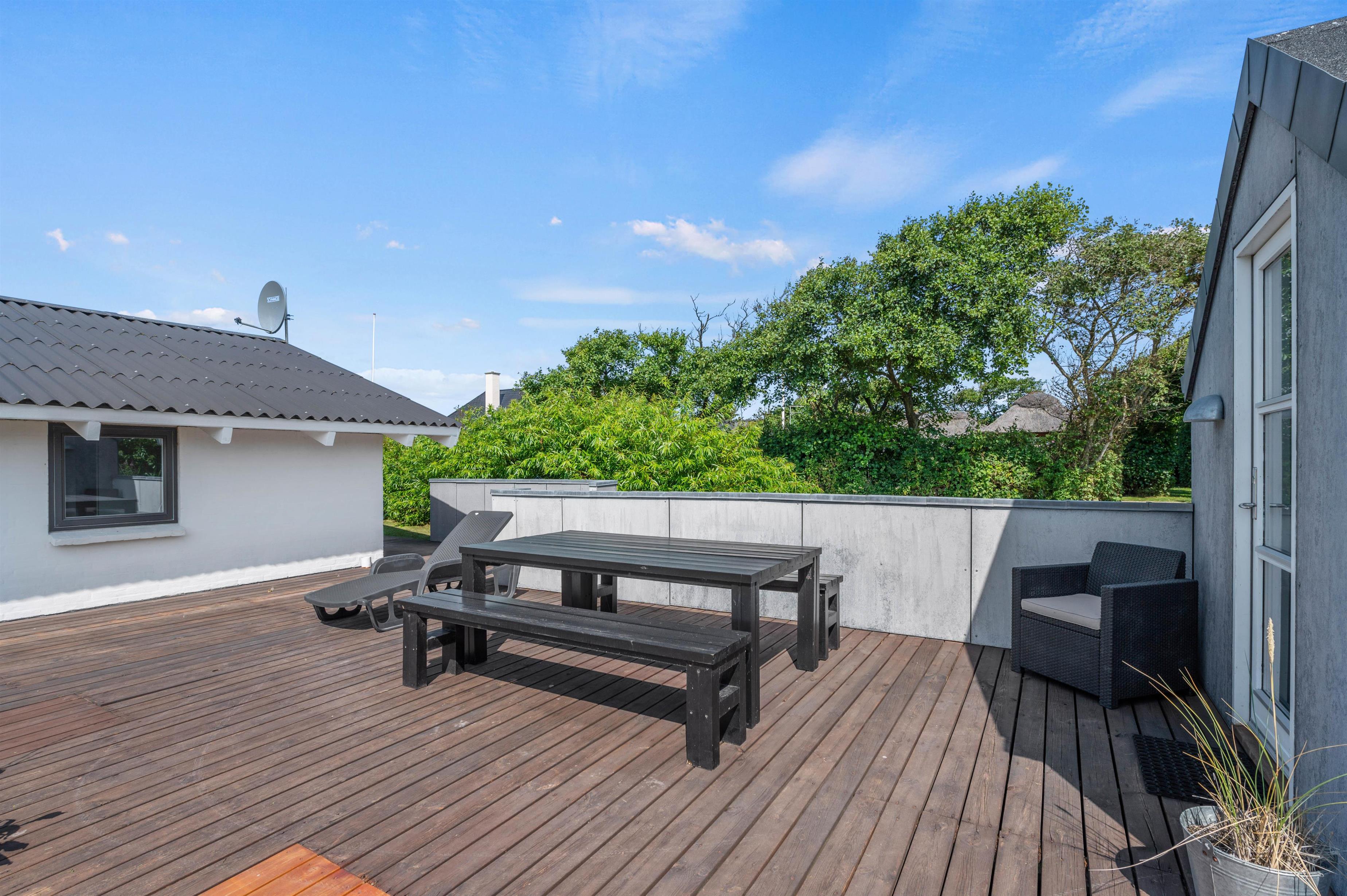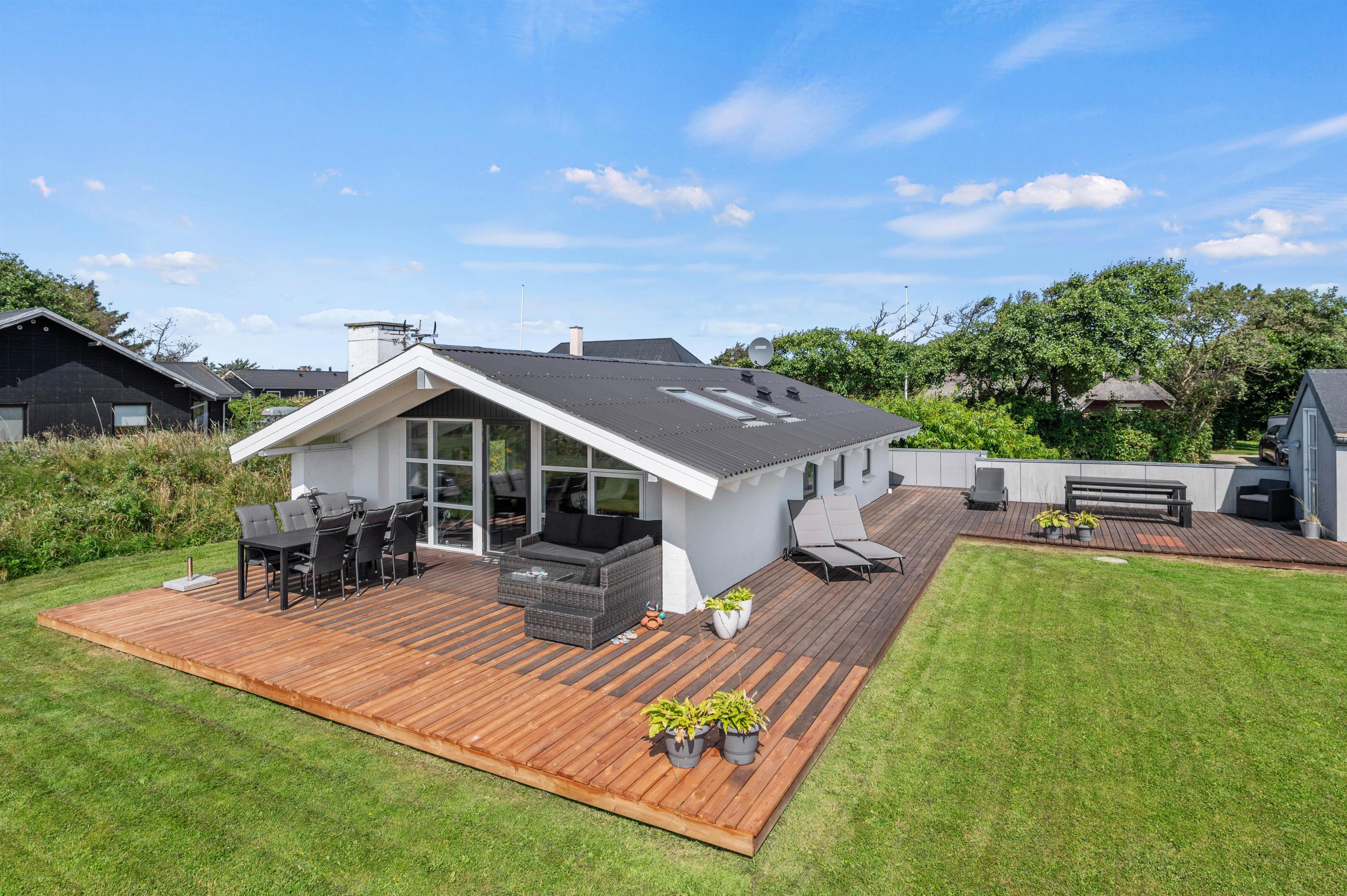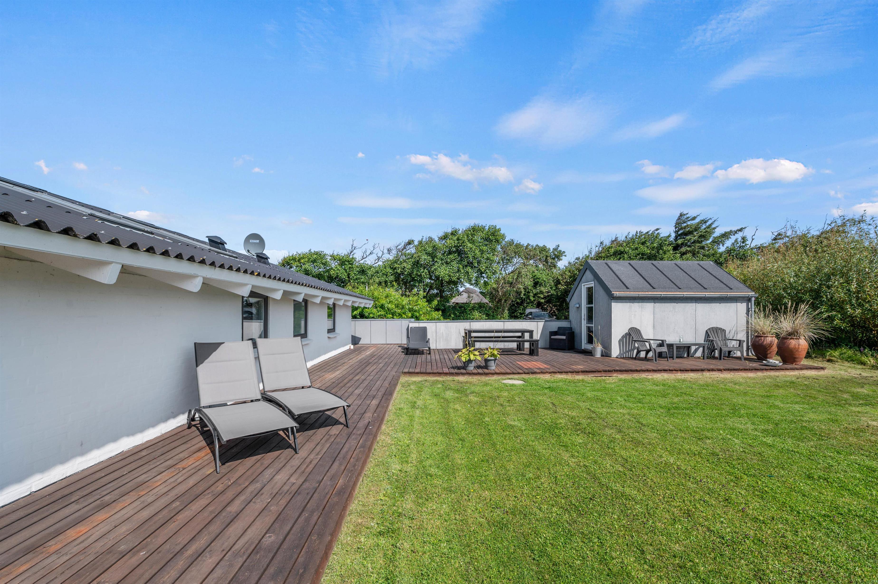 Den flotte træterrasse, som løber omkring hele feriehuset lokker med skønne hyggekroge og dejlige oaser, skabt til afslapning og lækre frokoster i det fri. Her kan børnene boltre sig i den store have, som er flot omkranset af høje træer til alle sider, og alt imens børnene slår sig løs, kan I voksne sætte jer til rette i de behagelige havemøbler. Selvom sommerhuset ligger i et dejligt, ugeneret område, så har I ikke langt ind til Søndervig. Byen byder på mange aktiviteter for både børn og voksne. I kan også bruge områdets natur aktivt. Tag en dukkert i Vesterhavets brusende bølger, eller kast fiskestangen ved slusen i Hvide Sande. Mulighederne er mange, uanset hvornår på sæsonen, du besøger området.