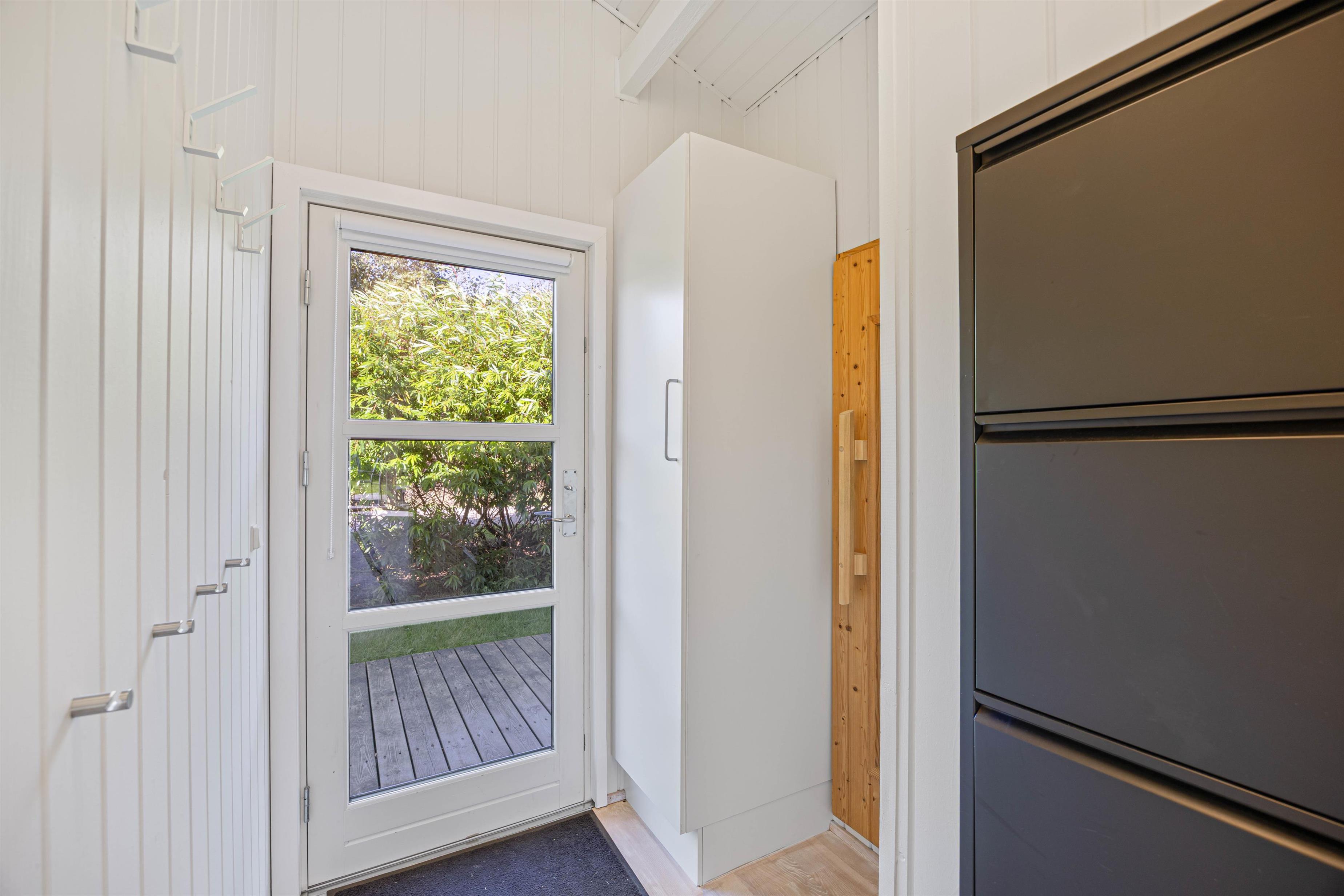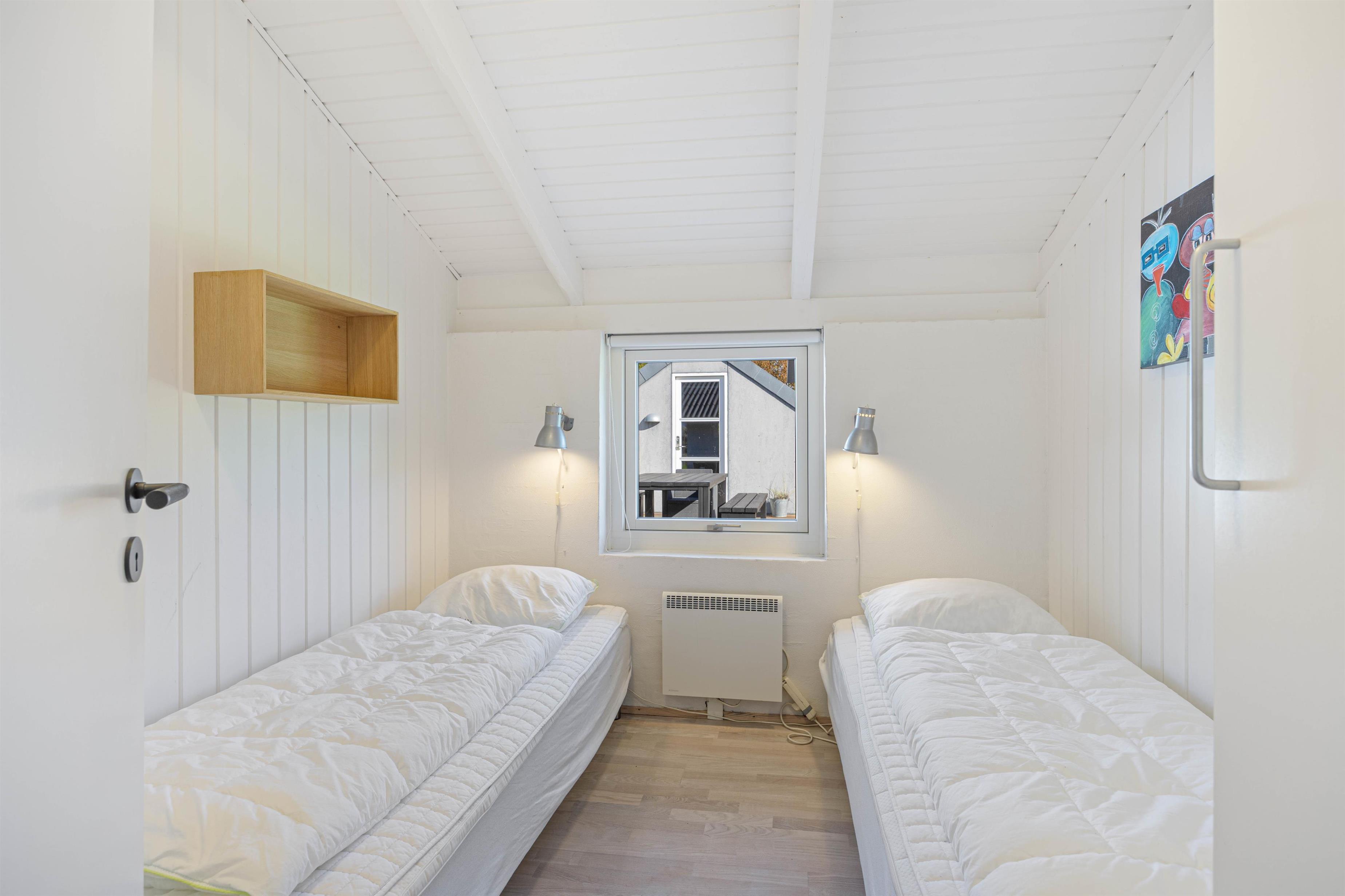 Det 72 m2 store sommerhus er lyst og dejligt indrettet med fokus på de små detaljer. De skønne vinduespartier giver et godt lysindfald i feriehuset og er med til at skabe en hyggelig atmosfære og feriestemning. Sommerhuset råder over 3 dejlige soverum og plads til 6 personer, hvoraf 2 af soveværelserne er indrettet med hver 2 enkeltsenge og det sidste med en dobbeltseng. Desuden råder feriehuset over både sauna, brændeovn, Smart-tv og gratis, trådløst internet i sommerhuset.