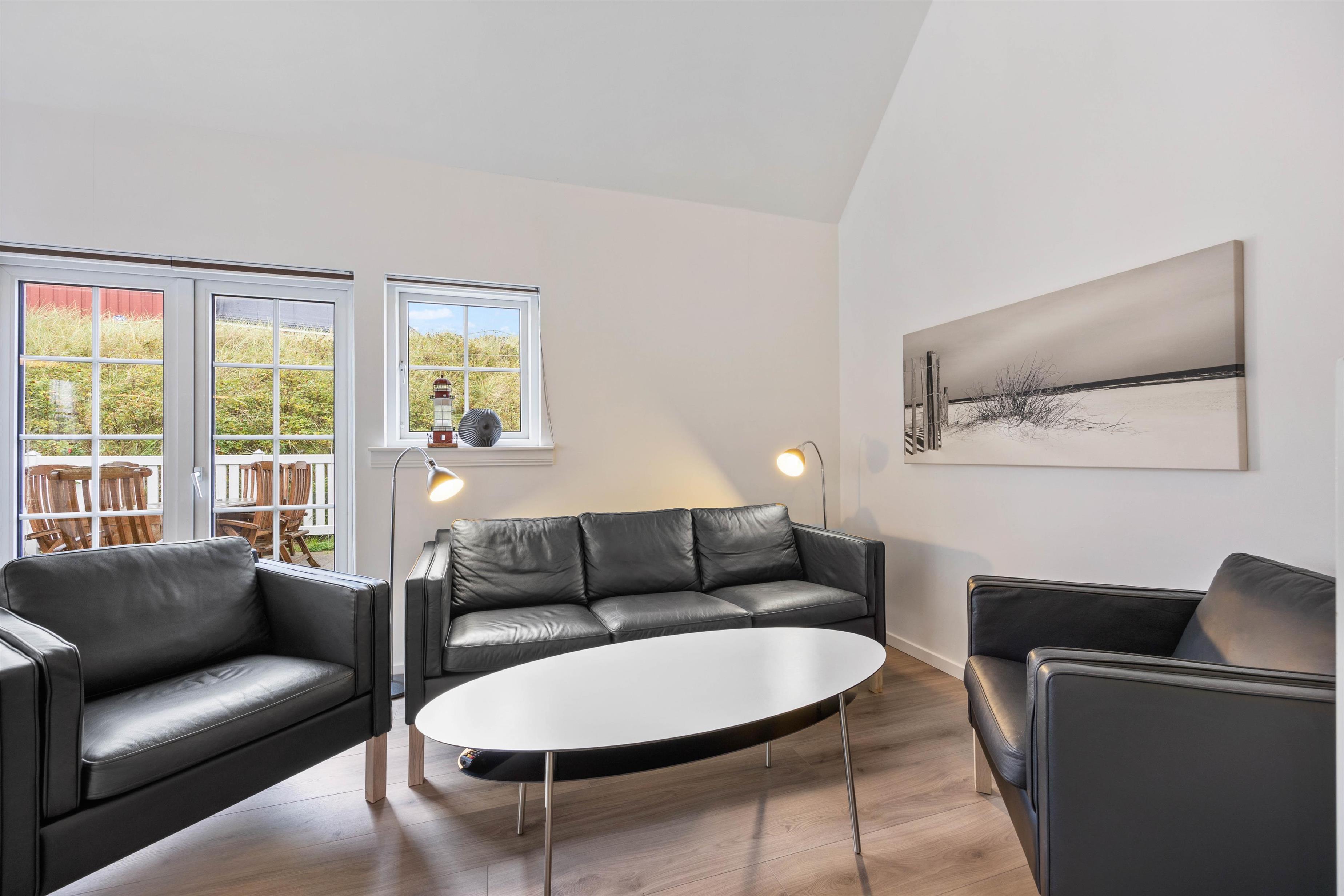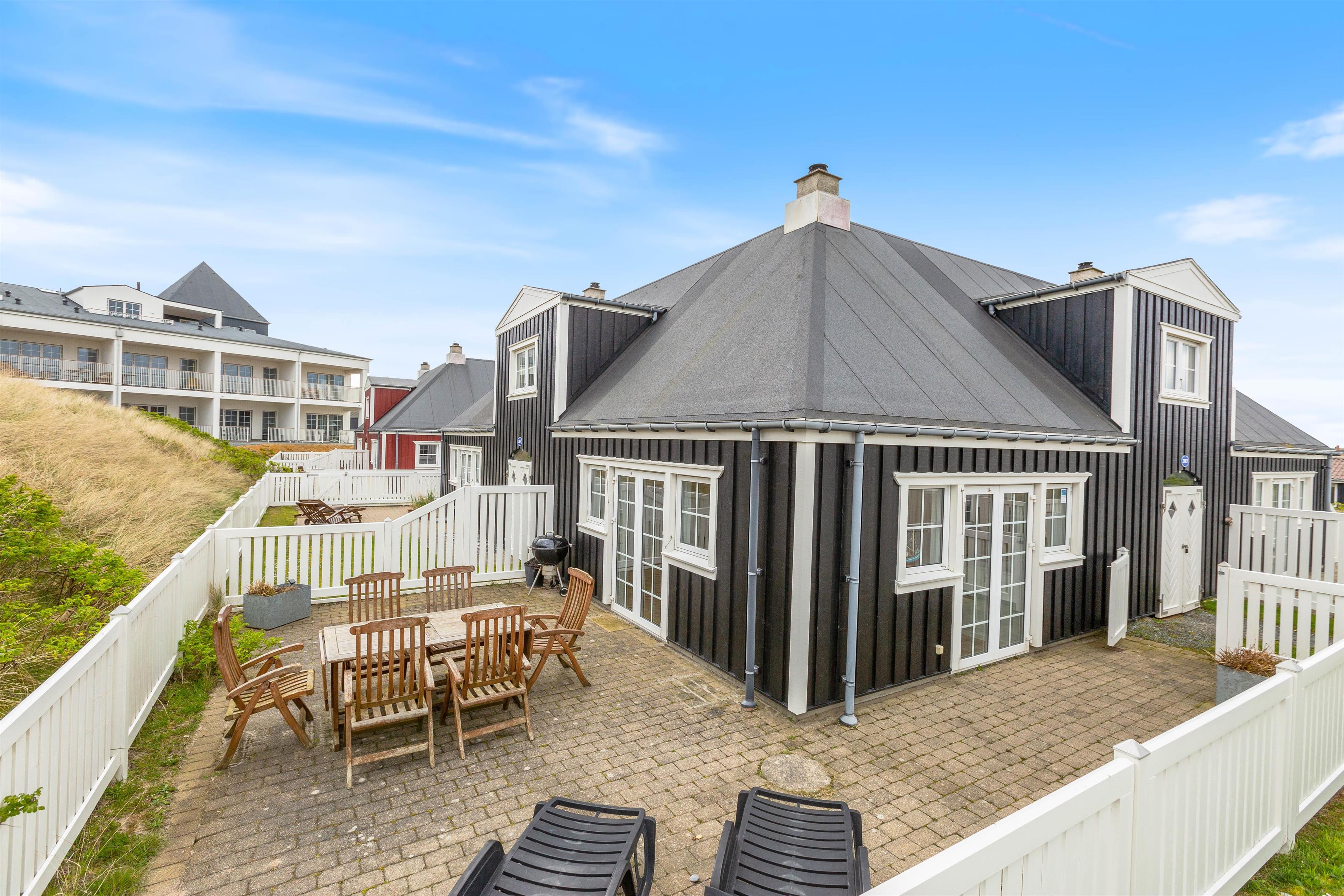 Når vejret er godt, kan I trække jer tilbage på den lukkede og afskærmede terrasse og nyde den friske nordsøluft. Terrassen er udstyret med havemøbler og grill. Her kan I afslutte en dejlig feriedag med en lækker middag på grillen, samt nyde et godt glas vin og hinandens selskab.