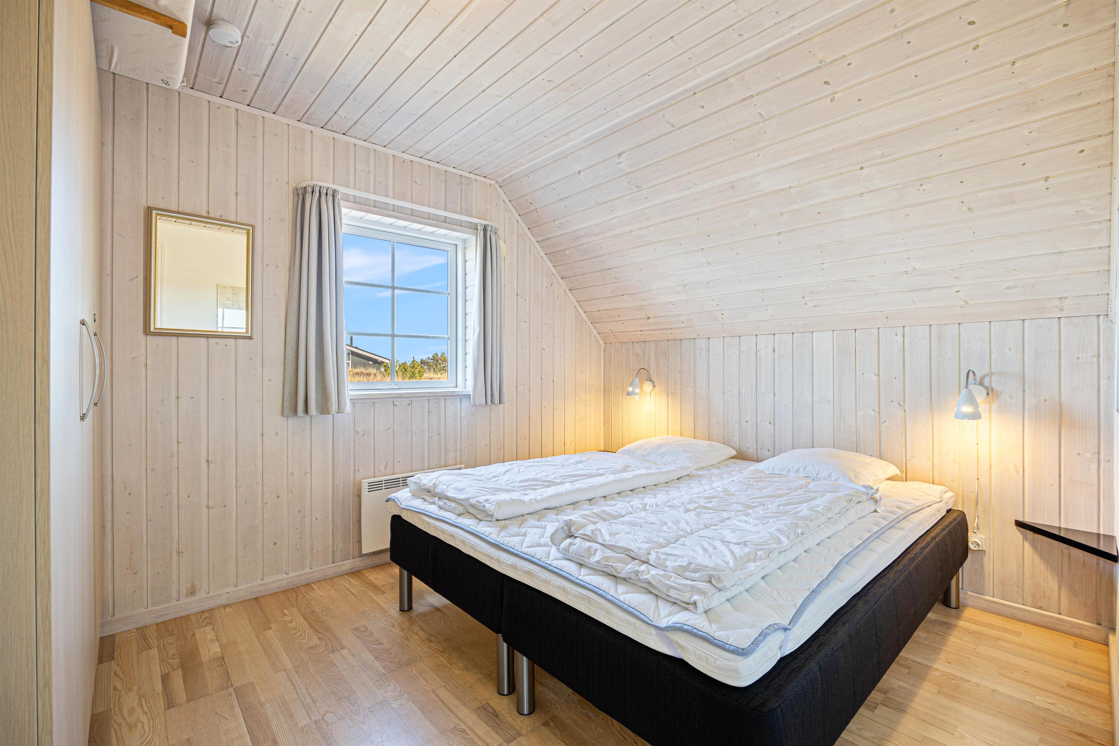 Feriehuset på Hjelmevej 153 er for jer, der ikke vil gå på kompromis med kvalitet og komfort, og som gerne vil bo tæt ved Vesterhavets brusende bølger. Feriehuset råder over både spa og sauna og indbyder til afslapning. På koldere dage kan I tænde op i brændeovnen og nyde en god bog eller et glas vin foran de knitrende flammer. Sommerhuset i Søndervig ligger bare 500 meter fra vandet, og inviterer således til mange oplevelser i naturen. Tag på en gåtur i det storslåede område eller nyd udsigten fra den afskærmede terrasse med gode havemøbler, liggestole og grill.