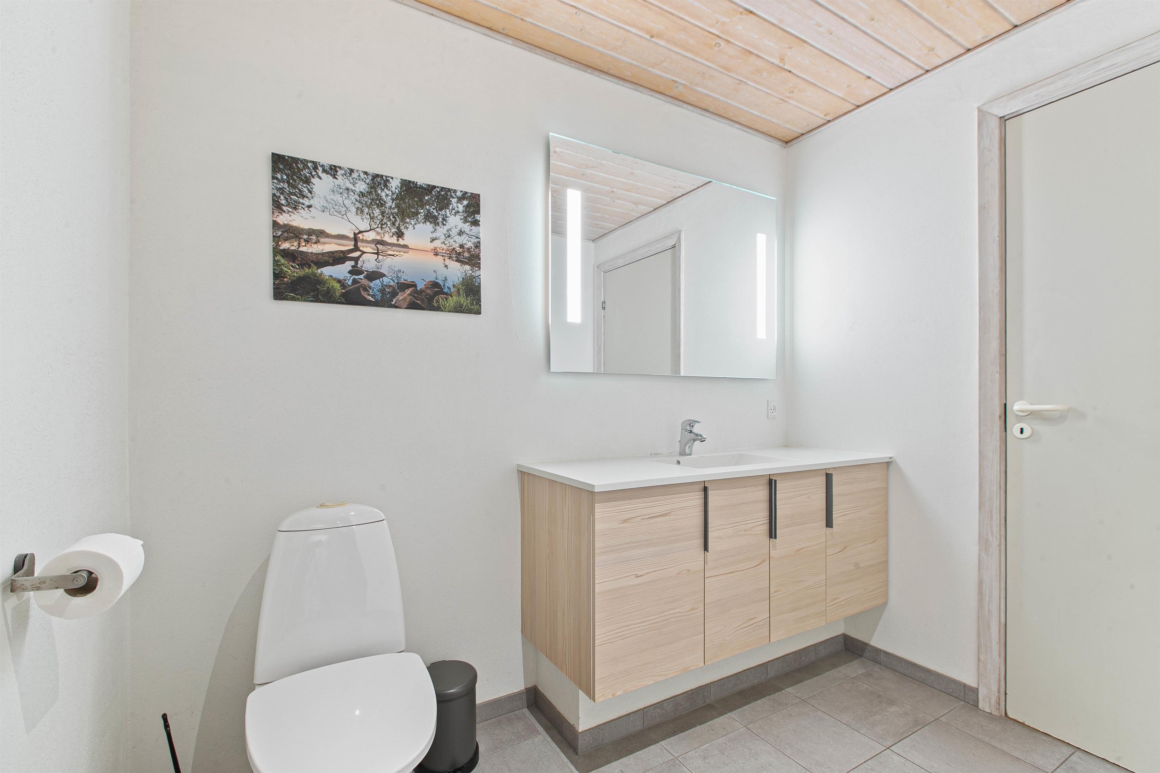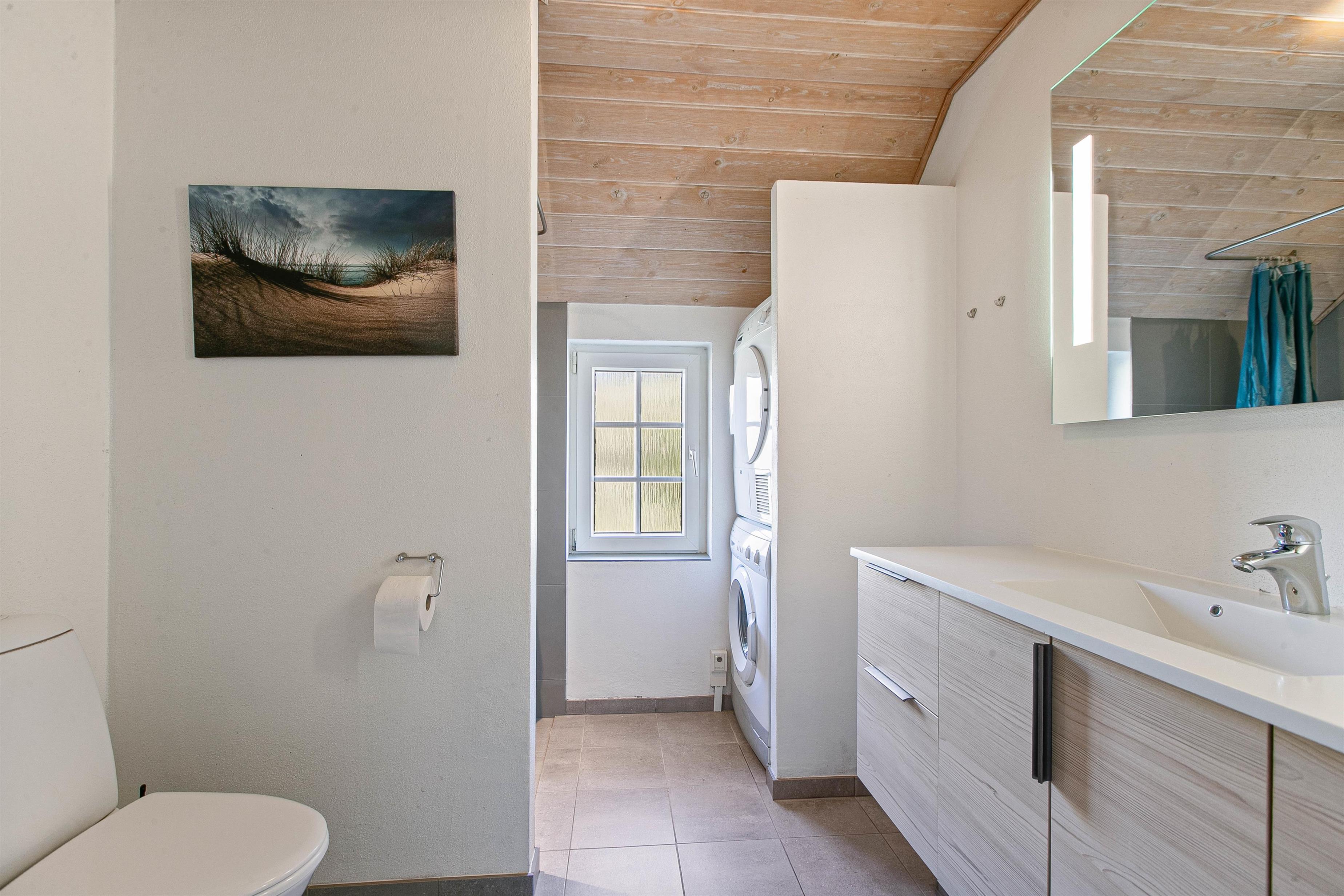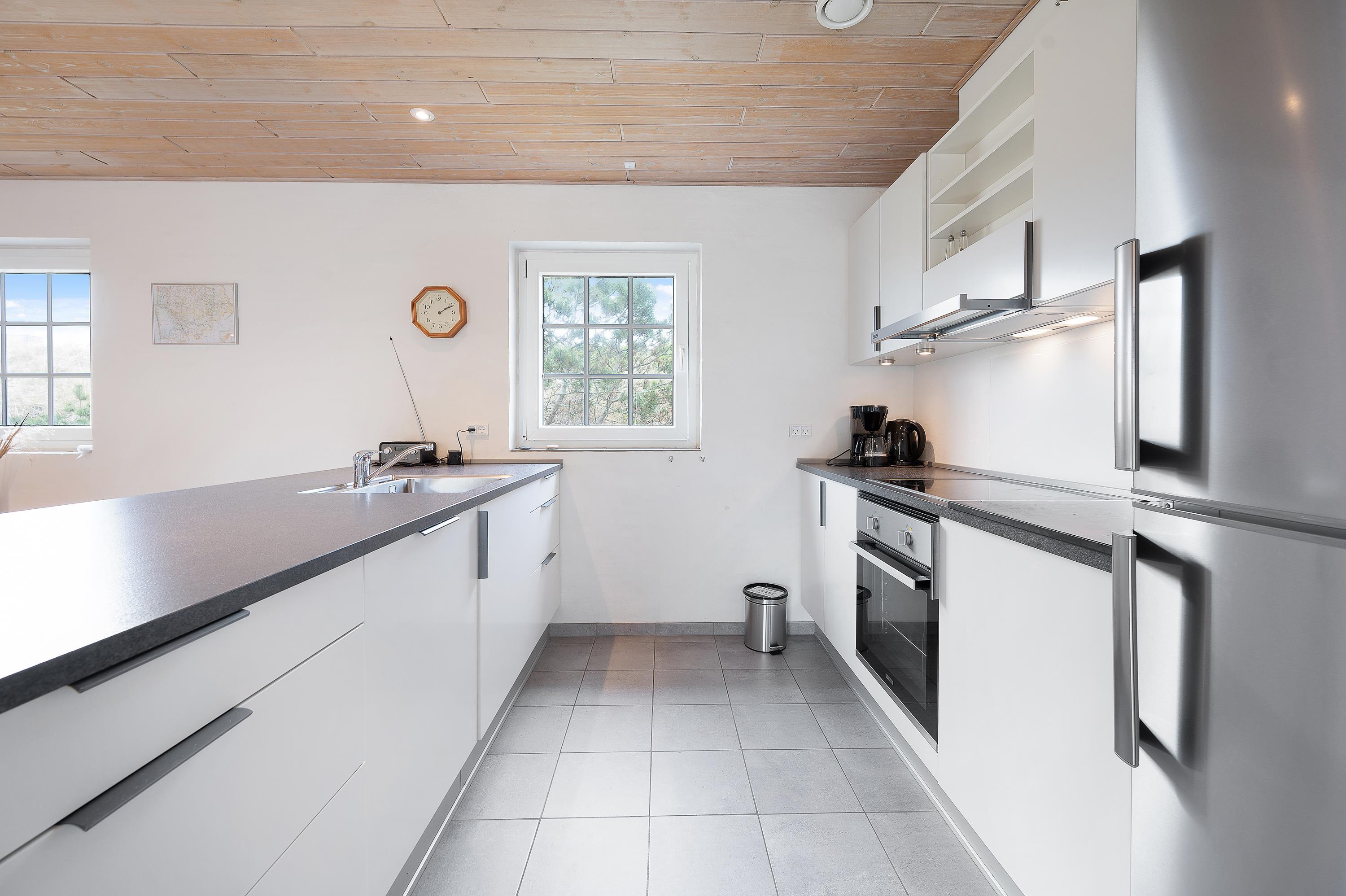 Det store, enkle og veludstyrede køkken byder på alt, hvad I behøver for at nyde madlavningen, herunder en opvaskemaskine, der gør oprydningen nem og bekvem. Vaskemaskine og tørretumbler sikrer, at I altid har frisk tøj under opholdet, mens sommerhusets gratis internet holder jer forbundet med omverdenen. Med en luft-til-luft varmepumpe er der sørget for en energieffektiv og behagelig opvarmning hele året rundt. Ventilationsanlægget i hele huset sikrer desuden et konstant behageligt indeklima uanset årstid.