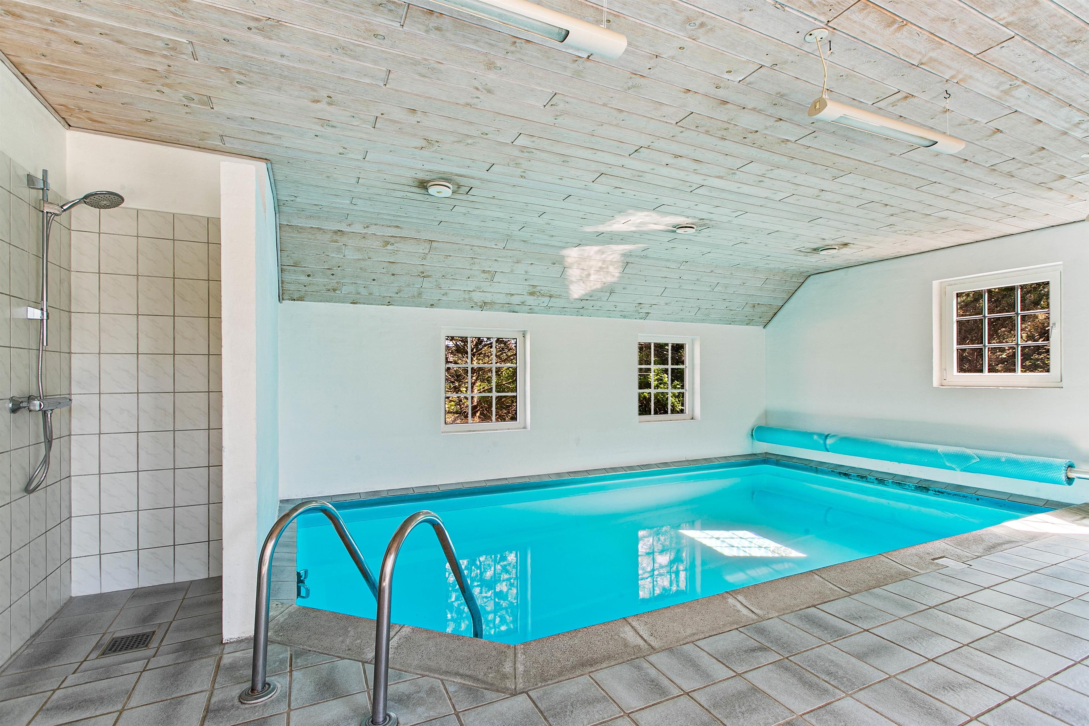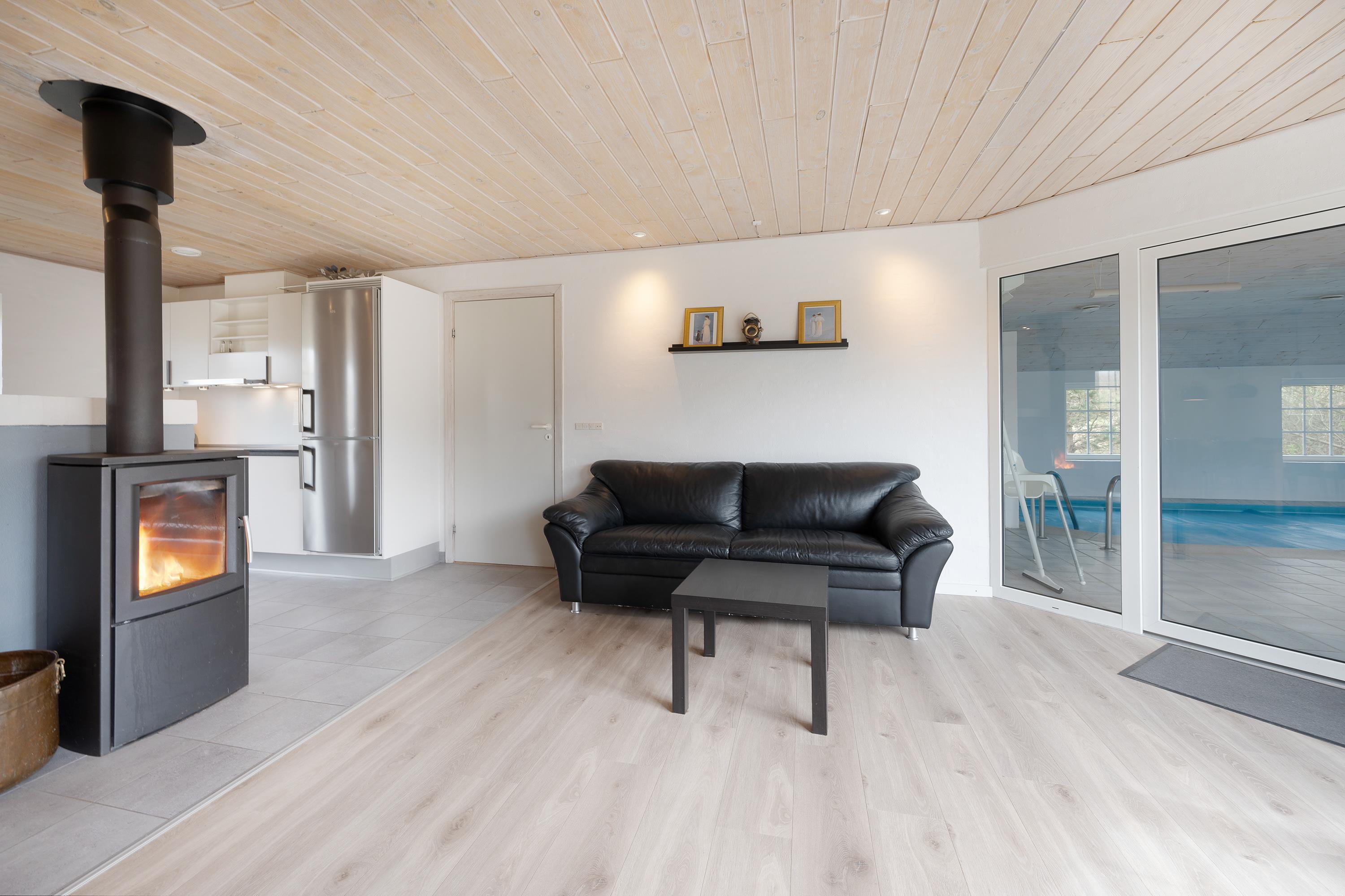 Et absolut højdepunkt i sommerhuset er selvfølgelig poolrummet, hvor I finder både indendørs swimmingpool og sauna, som er jeres helt eget private wellnessområde. Her er der rig mulighed for både aktivitet og afslapning, og mens børn og barnlige sjæle plasker i poolen, kan resten nyde roen i den varme sauna. I poolområdet sørger et effektivt affugtningssystem for, at luften altid er behagelig og indbydende. Samtidig kan I benytte det dæmpede lys til at skabe den helt rette stemning. Poolen giver en behagelig og naturlig fornemmelse, da saltvandet bidrager til en ekstra blød og indbydende oplevelse.